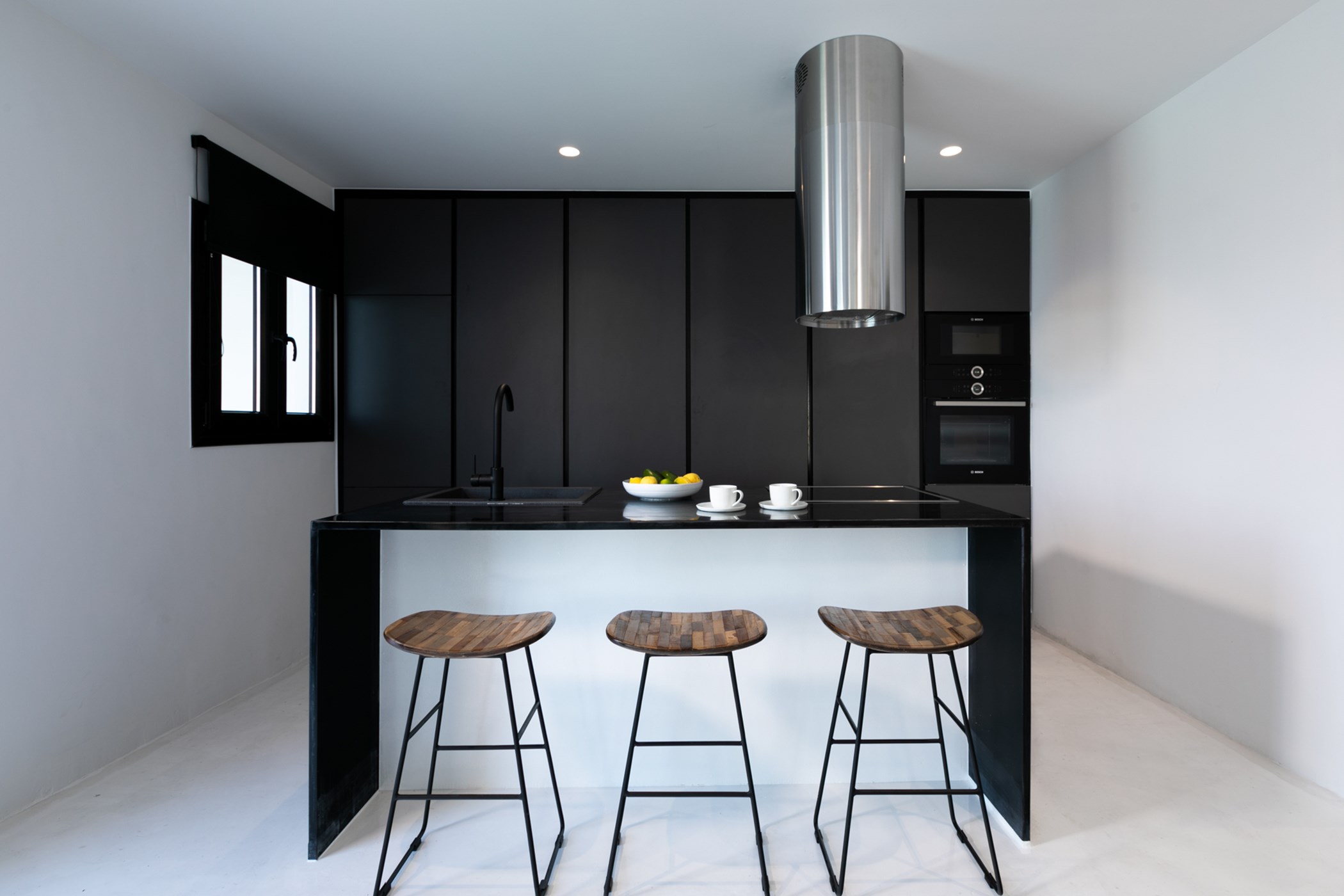 Villa Black Diamond 1 is comfortably furnished with a minimal and contemporary approach. The villa itself is designed to blur the lines between indoor and outdoor living spaces, with enormous windows overlooking Psarou Beach and French doors opening to the pool terrace. The interiors dressed in black and white feature large minimal living and dining areas. An expertly equipped kitchen leads to the living room and the dining area, that enjoys the same mesmerizing views of the blue Aegean Sea. The luxury Greek holiday rental comfortably accommodates up to 10 guests in its 5 beautiful dreamy ensuite bedrooms, all featuring king size beds, while 4 of them have access to private balconies for your just-the-two-of-us moments in the sun or under the starry sky.