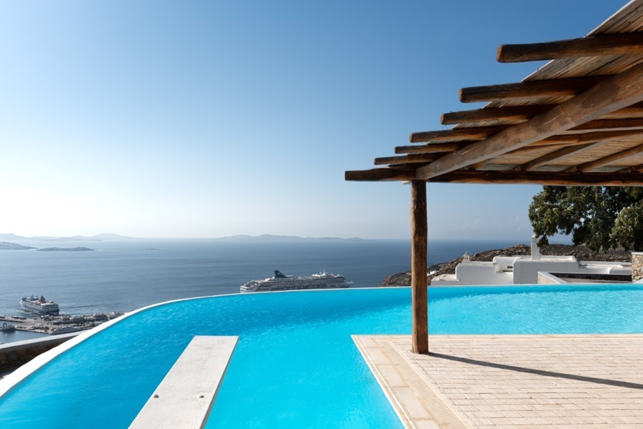Superbly positioned in a privileged location, Villa Bryanna is a superb home with exquisite architecture that combines the privacy and natural beauty, with elegance and relaxation. Located at the beautiful area of Tourlos, very close to vibrant Mykonos town, this luxury villa rental boasts matchless panoramic sea views within a secluded natural landscape.