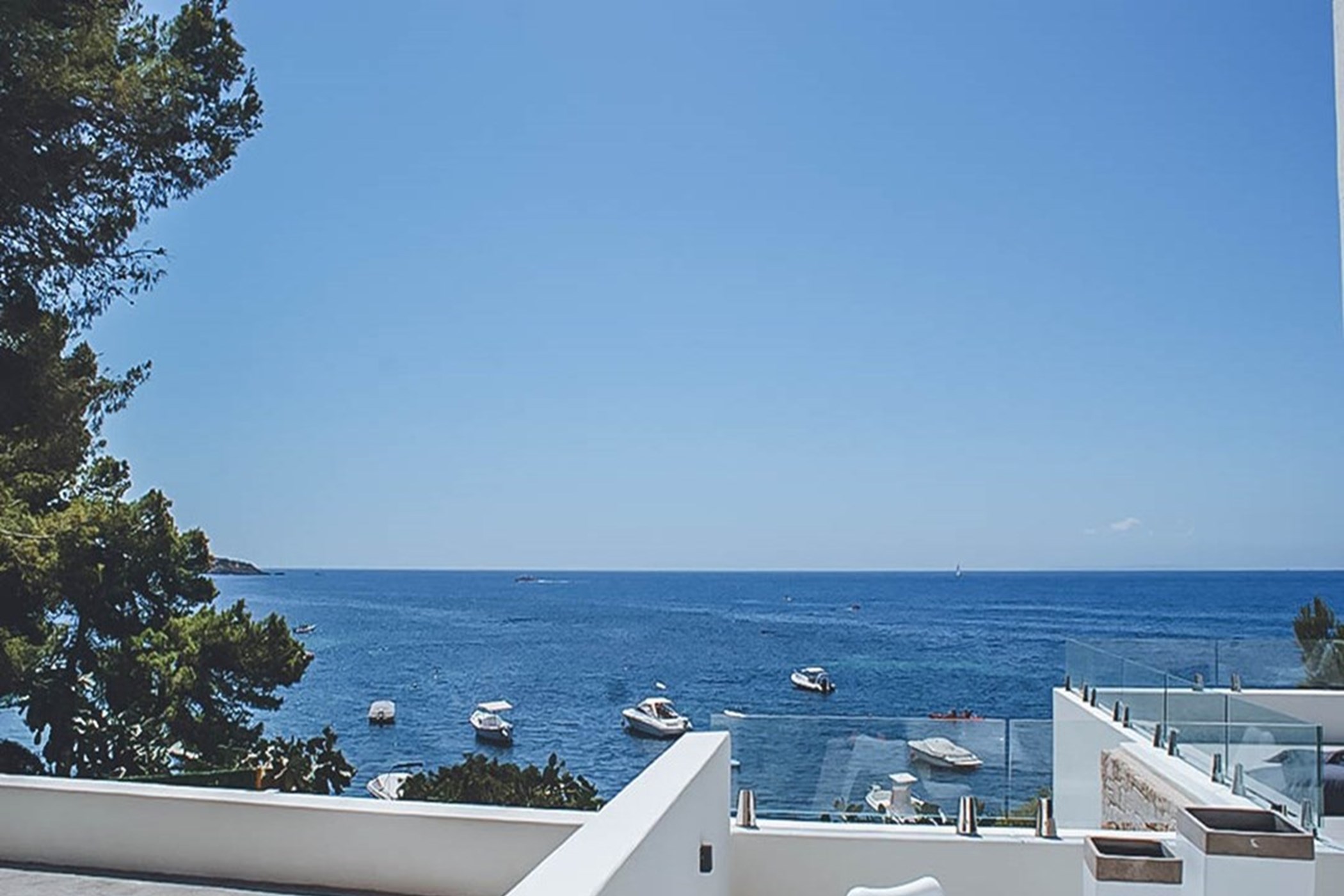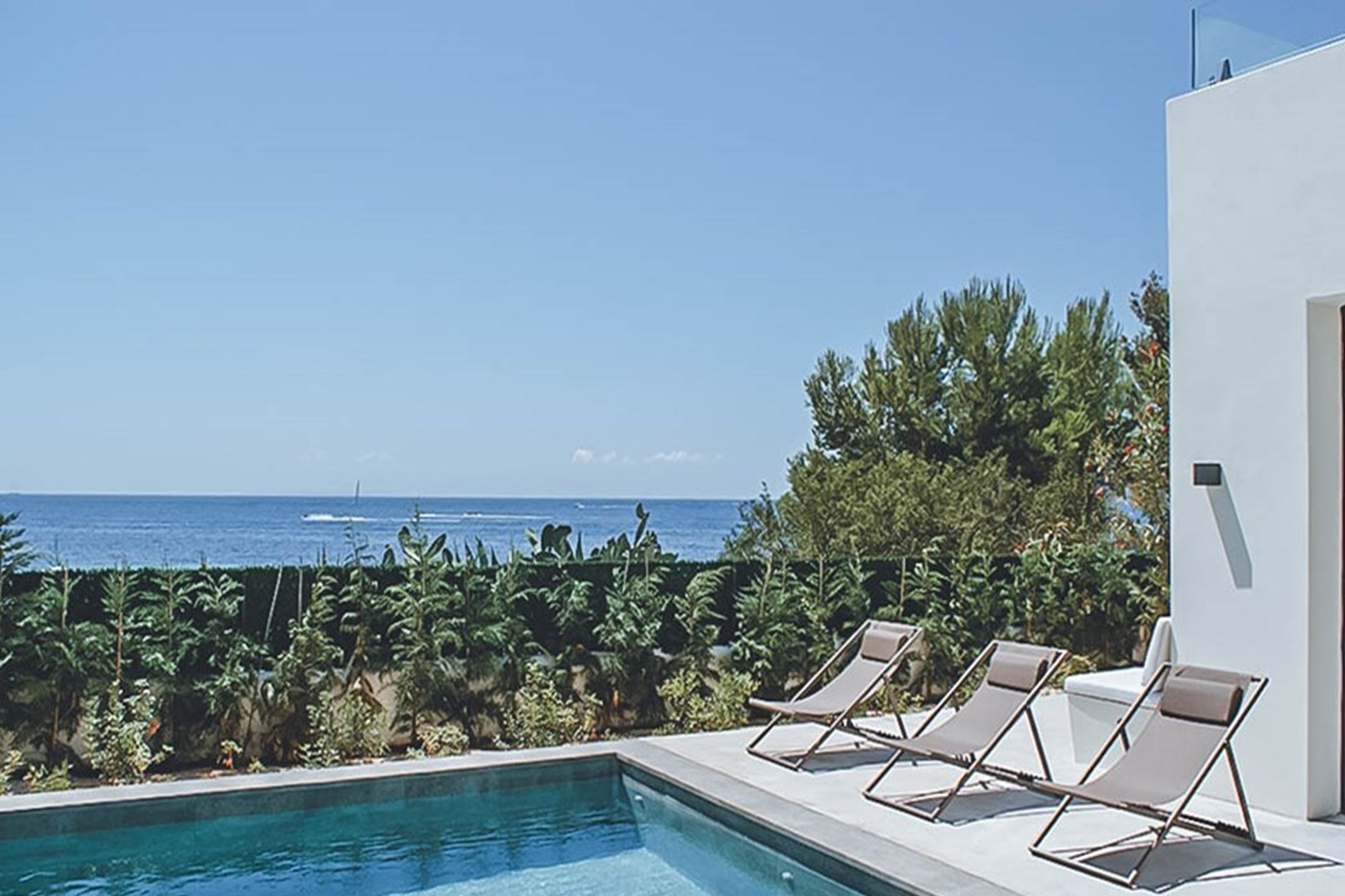 An inviting swimming pool is surrounded by ample sun loungers, several terraces and an outdoor dining area with a BBQ, which overlooks the sweeping sea views of the Mediterranean, and the spectacular sight of the Ibizan sunrise for the early birds amongst you. The property is fully alarmed and securely fenced off with a private gate. With its central, frontline location, and close proximity to the beach Can Aria is an ideal holiday home for families and groups.