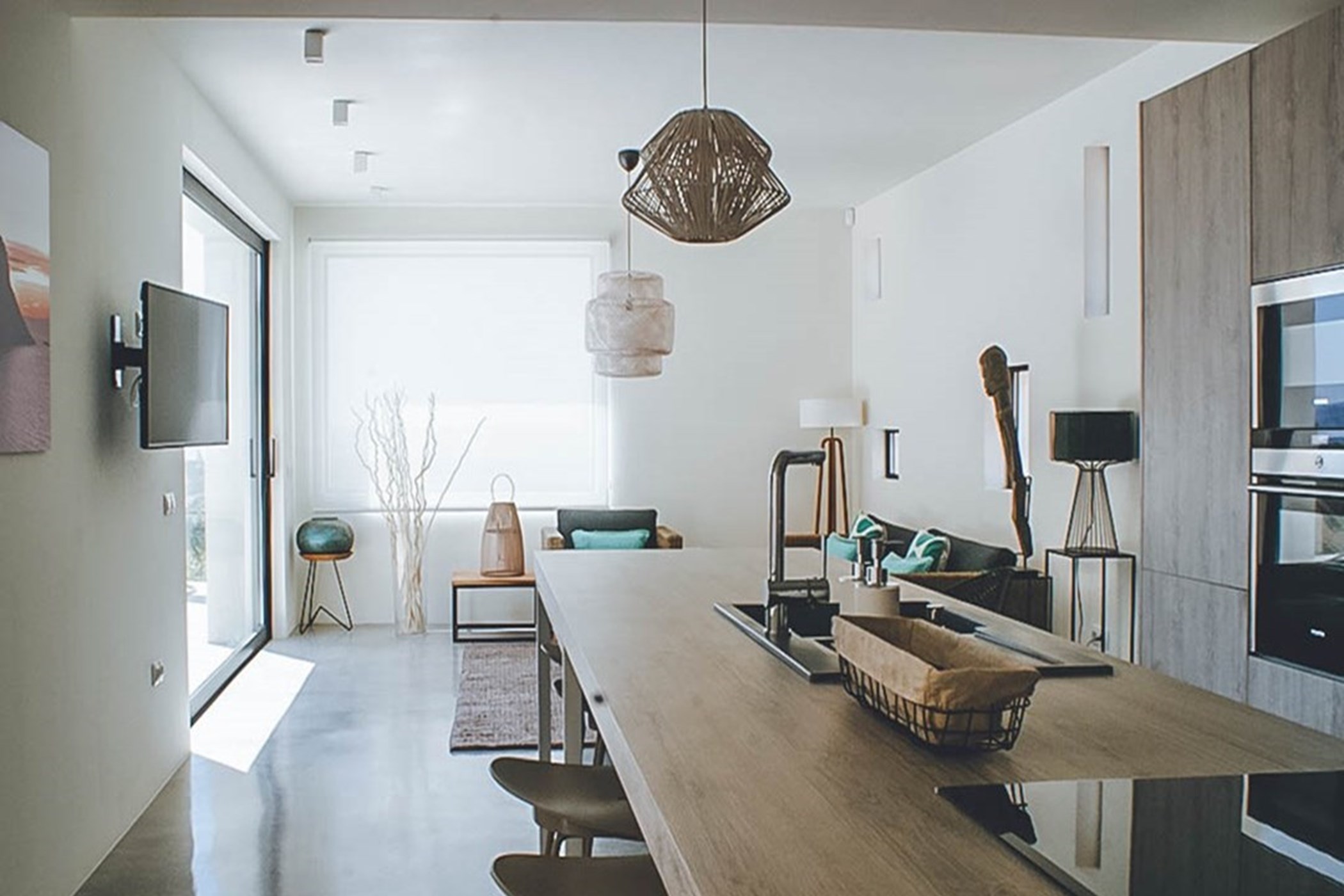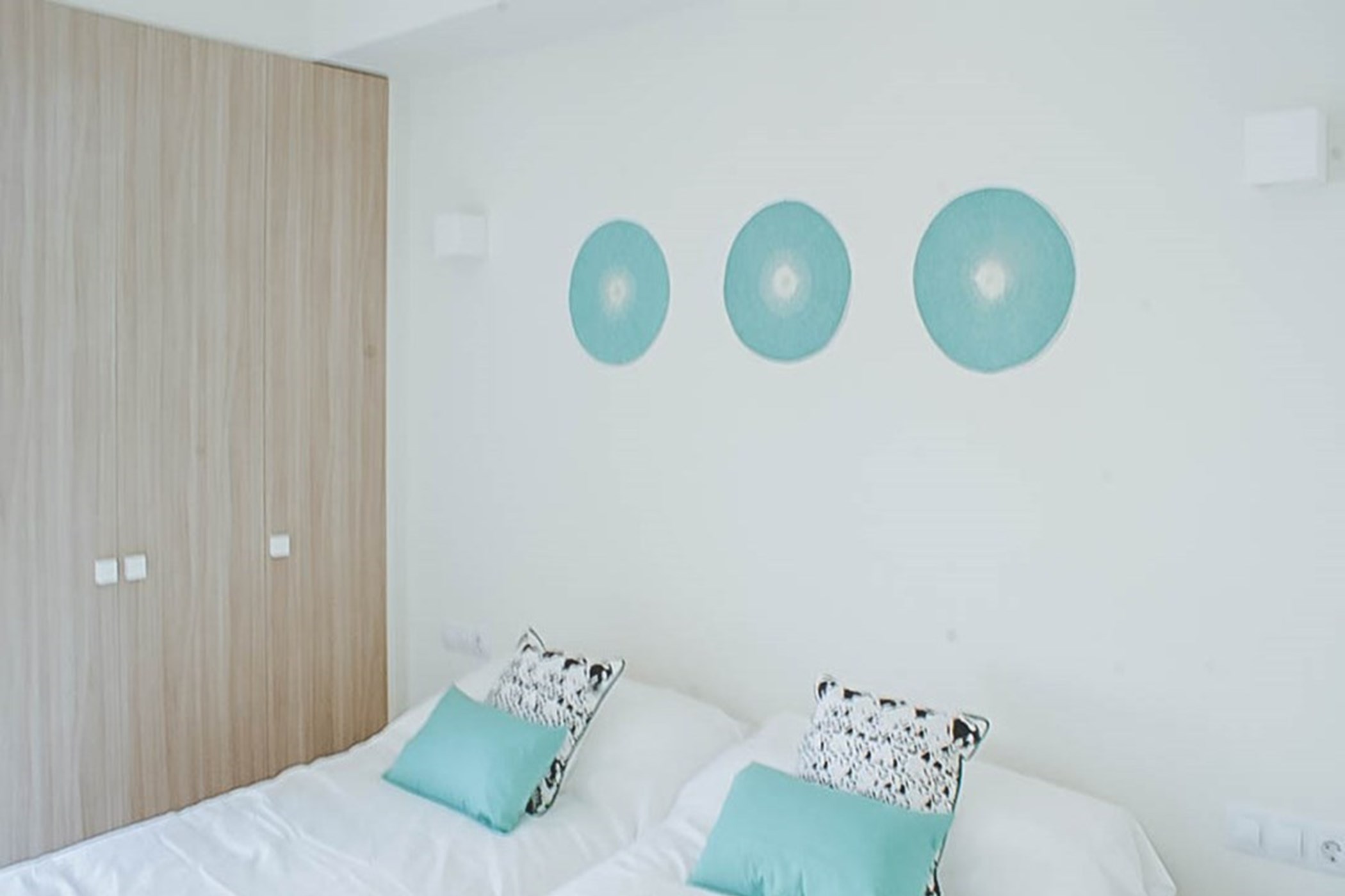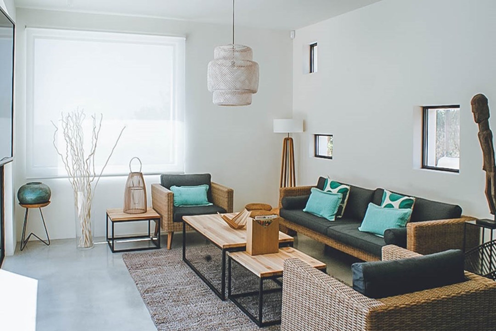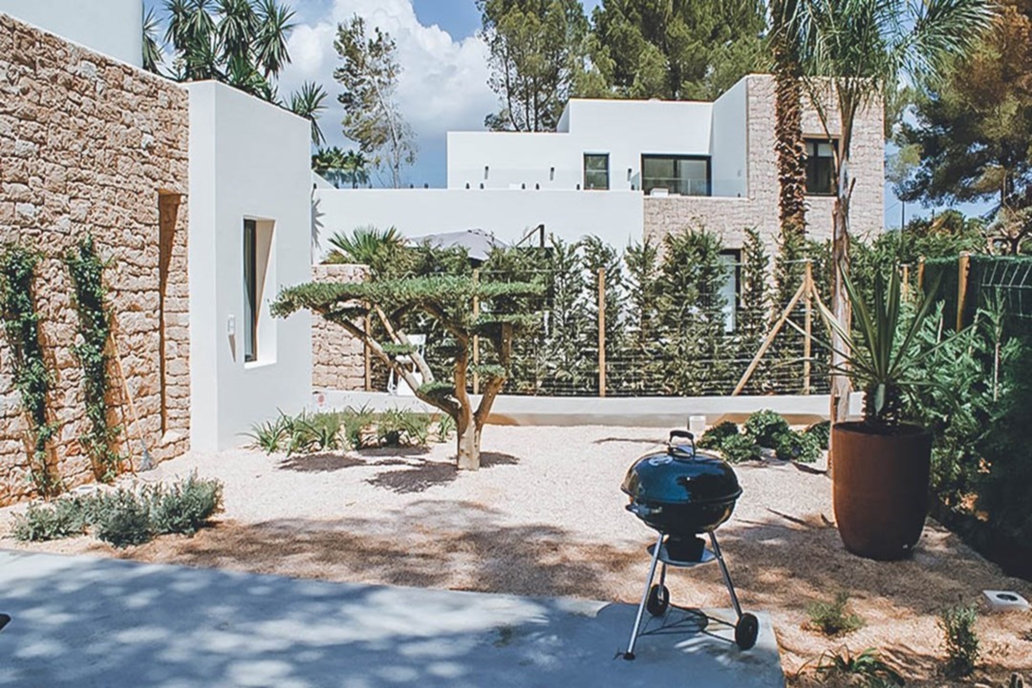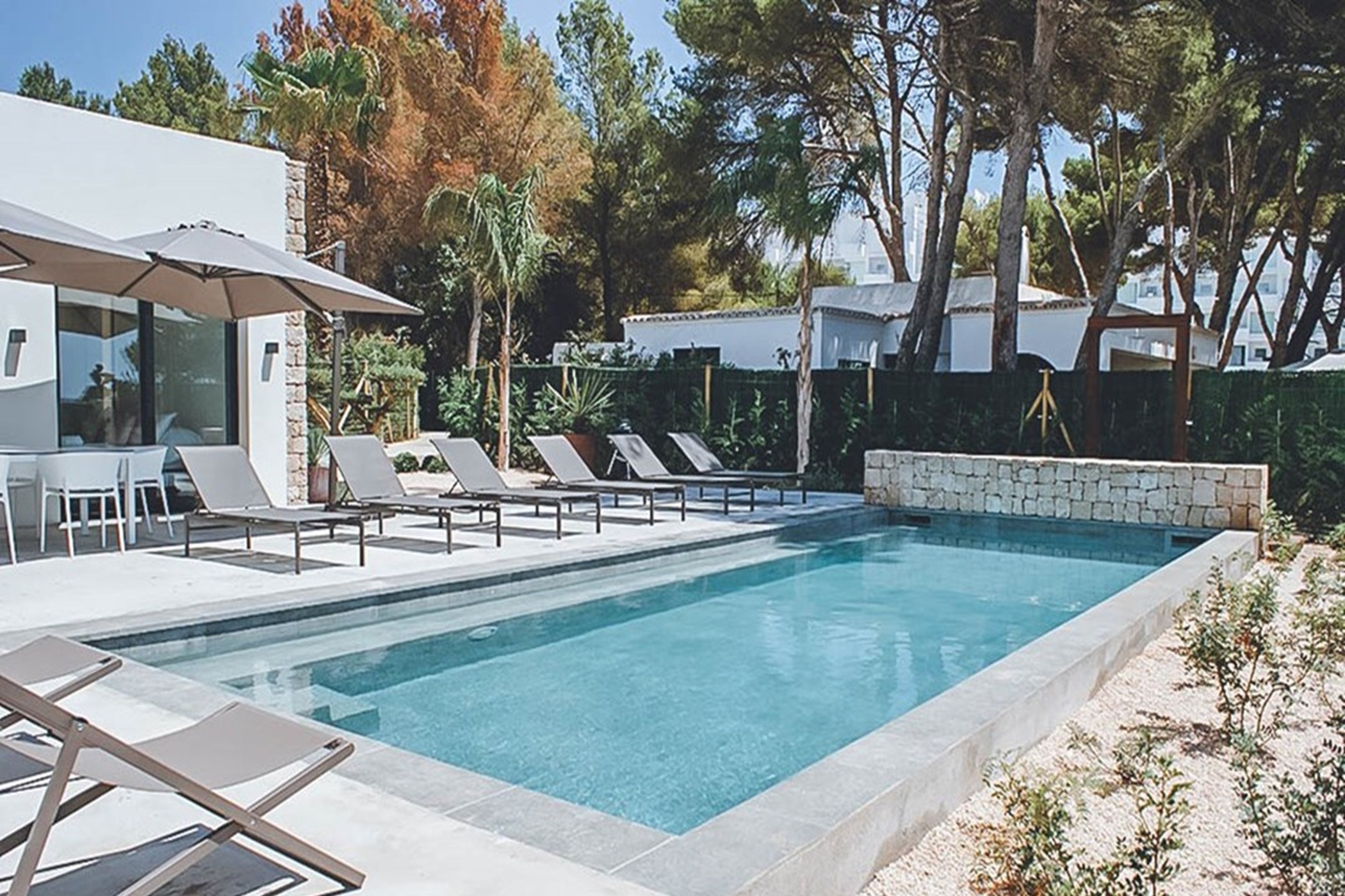 This stunning home comprises of white and contrasting typical Ibicencan stone plane walls on the outside, and throughout perfectly blends a winning combination of traditional touches with minimalistic style. Inside this modern, contemporary abode you can relax in the open-plan lounge area with comfortable seating, a fully equipped beach styled kitchen with all the modern appliances you would expect . There are four beautifully furnished double bedrooms all with en-suite bathrooms and ample wardrobe space, sleeping 8 guests in comfort and privacy.
