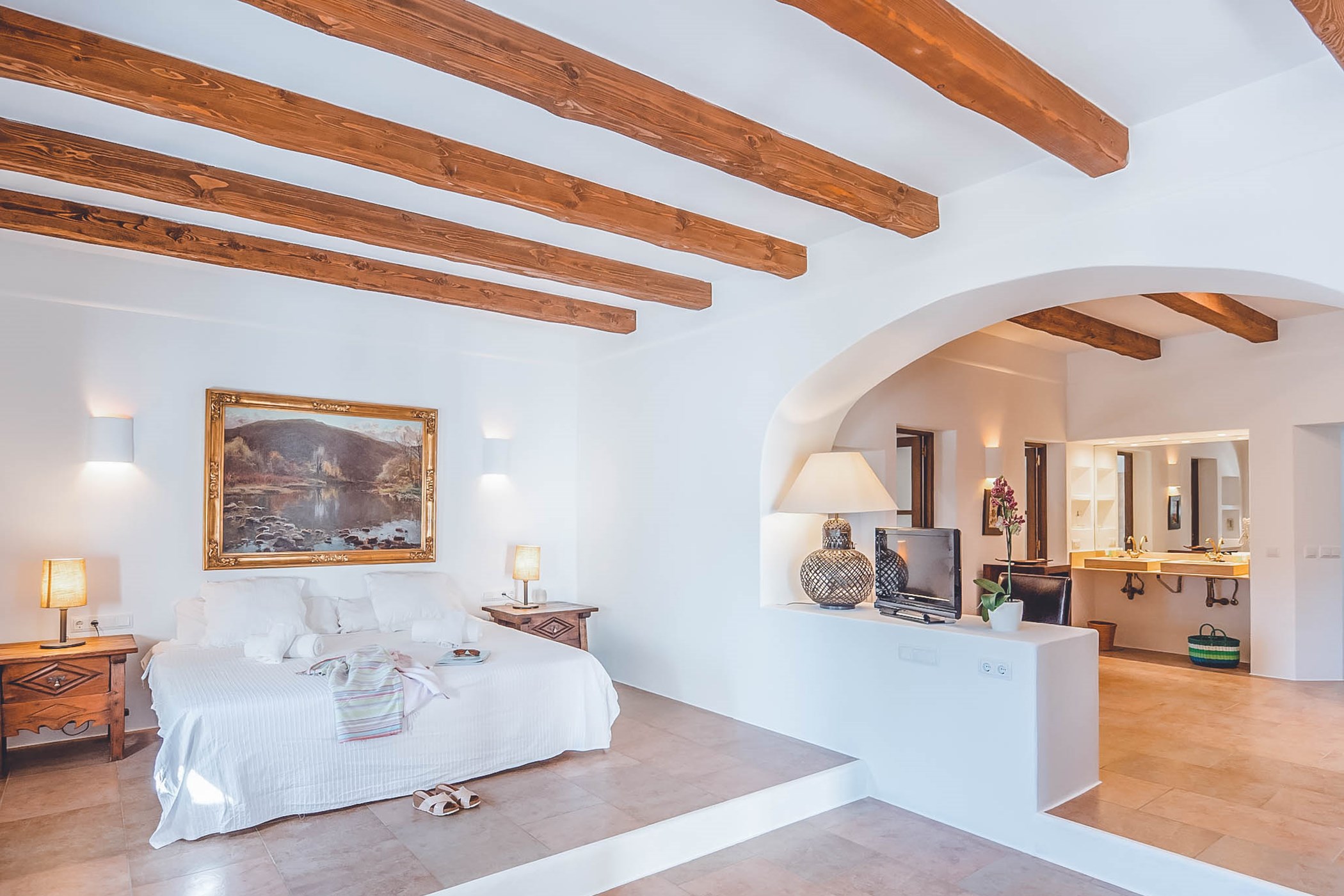 Inside, Can Cecilia offers a seamless blend of large interior spaces all with outstanding fixtures and fittings throughout. These expansive living areas offer exceptional comfort for all the family or groups of friends to enjoy. The lounge area is luxuriously furnished and leads onto an elegant library gallery, a separate dining room, a cellar and a fully equipped Siemens kitchen. The style of the house combines beautiful wooden beams adding a truly authentic touch with modern touches to create a feeling of luxury and tradition at once. The 6 beautifully styled double bedroom suites, are all complete with en-suite bathrooms.