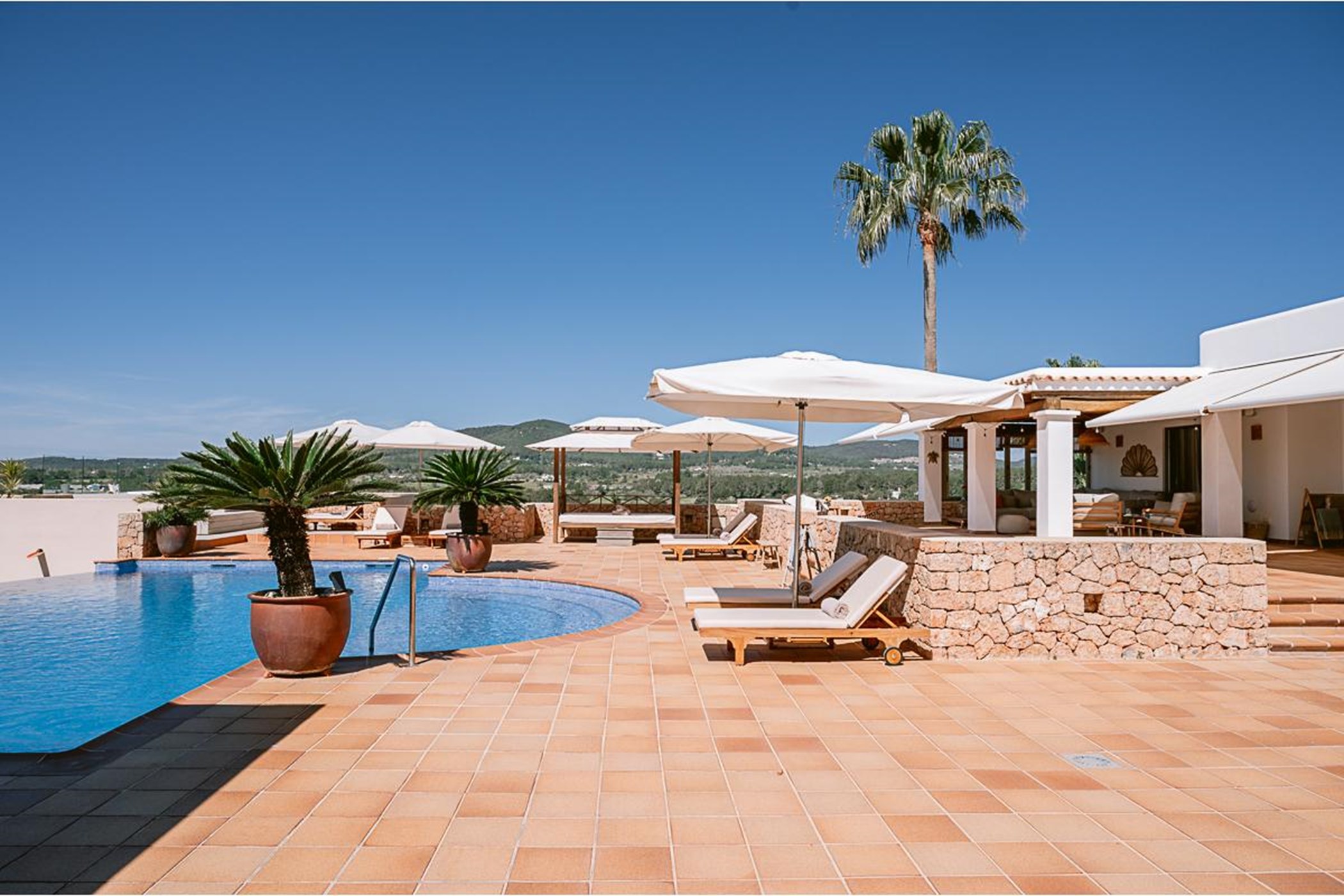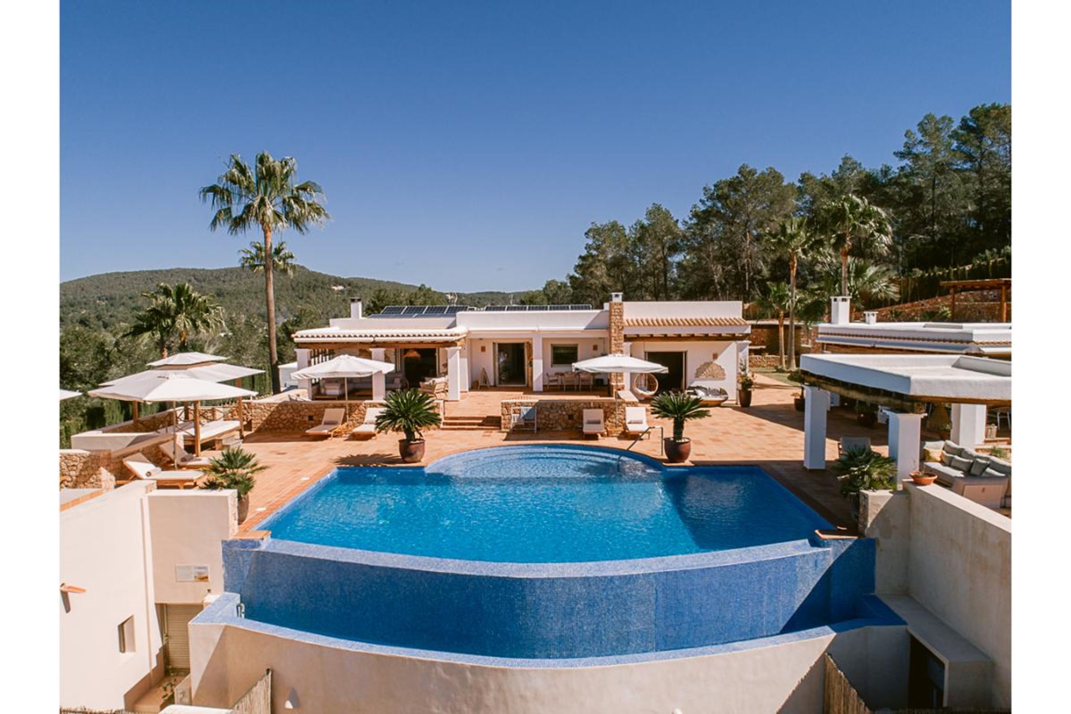 Can Melody is an exceptional Ibicenco farmhouse located close to the bohemian village of Santa Gertrudis which celebrates a vibrant cafe culture, and just a short drive into the vibrant town of Santa Eulalia with its abundance of shops, bars and restaurants. This stunning 6 bedroom villa offers guests magnificent views of the surrounding valleys and countryside with glistening distant Mediterranean sea over to Formentera.