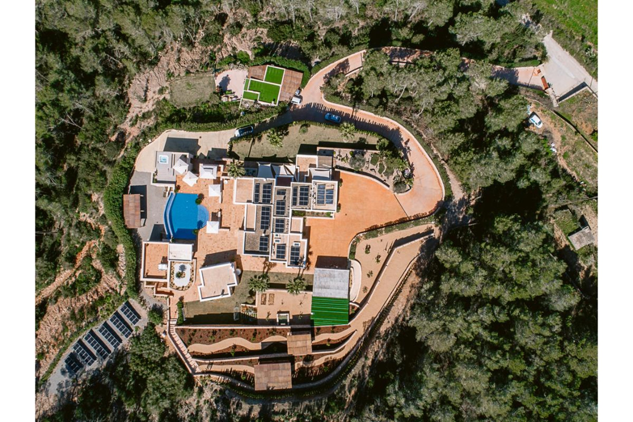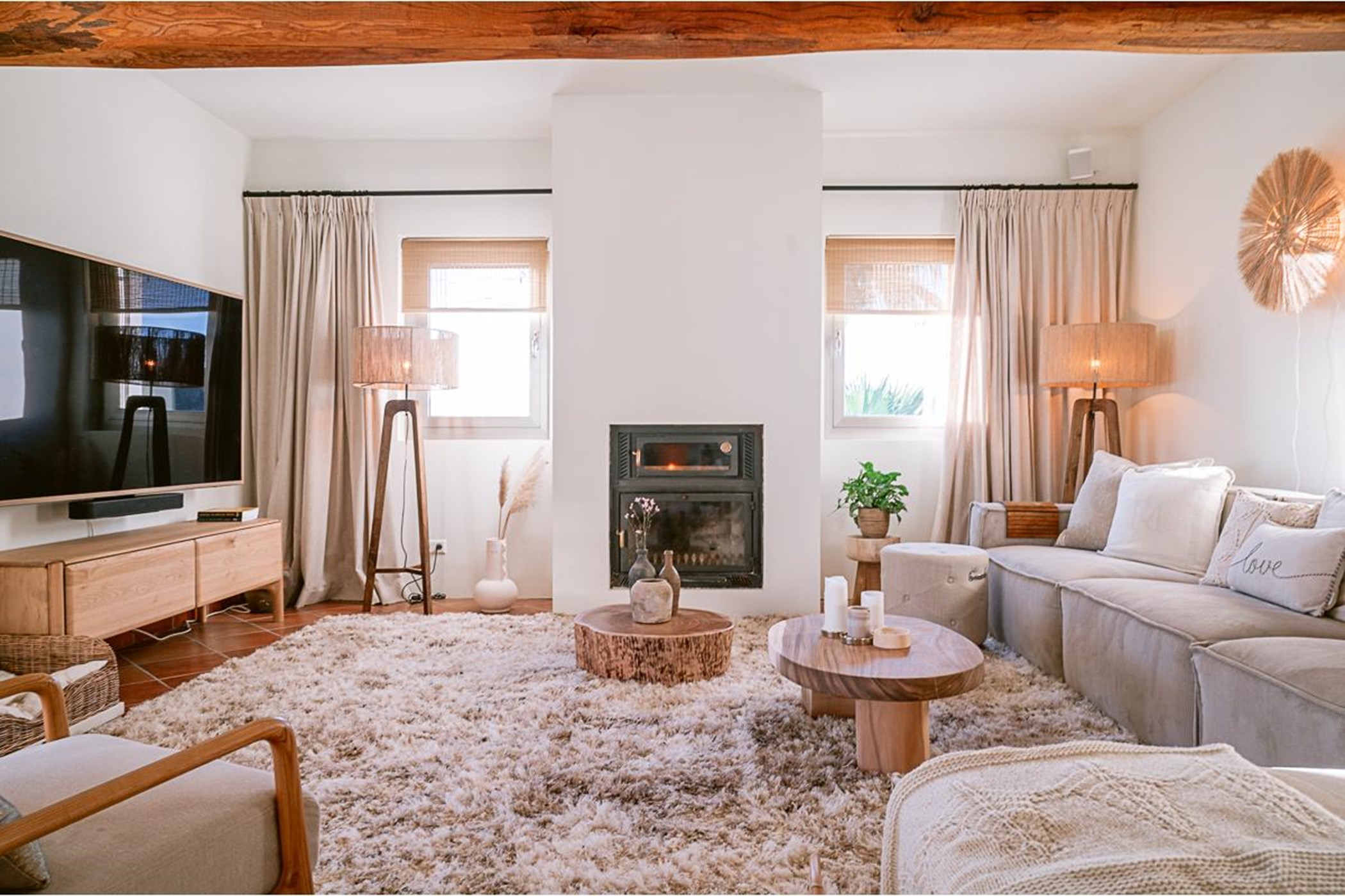 The outside features of Can Melody include an abundance of outdoor terraces where you will find a heated infinity swimming pool, a Jacuzzi, luxurious Balinese beds, ample luxury sun loungers and chill out areas. For entertaining, two dining areas with a BBQ, wood burning oven and an fully fitted outdoor kitchen provide alfresco dining in true style from morning to night. A bespoke bar is the ideal place for sunset cocktails.