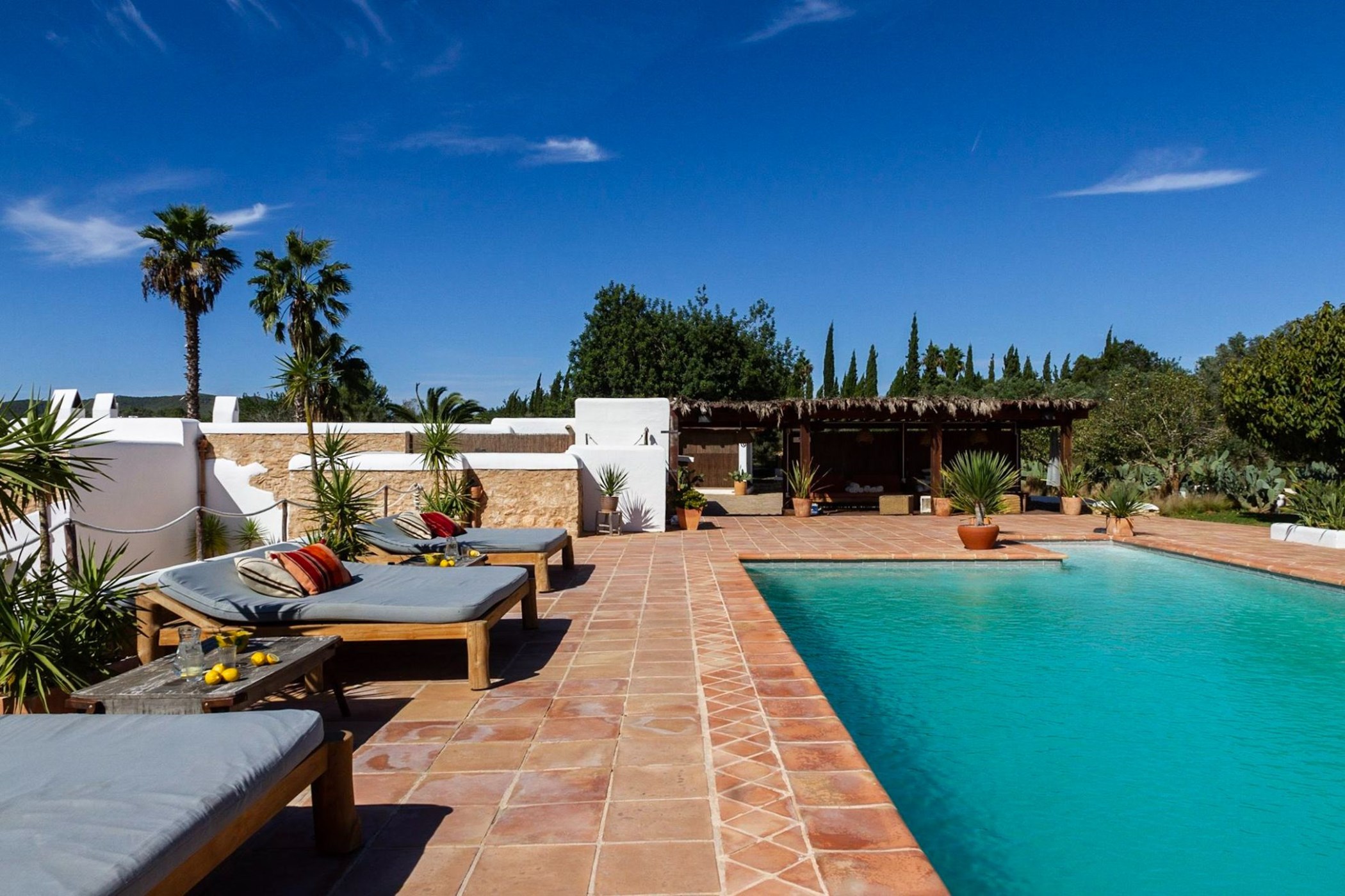 Step outside into the lavish grounds of Can Nora and enjoy the beautiful vista from the glorious pool or hide yourself away in one of the secluded outdoor chill out areas. The property has excellent facilities for hosting large events, including a spacious and beautifully designed patio with the adjoining barn, which has been converted as a space to host celebrations and events. Expansive, fragrant gardens are blooming with ancient trees, cactuses and flowers.