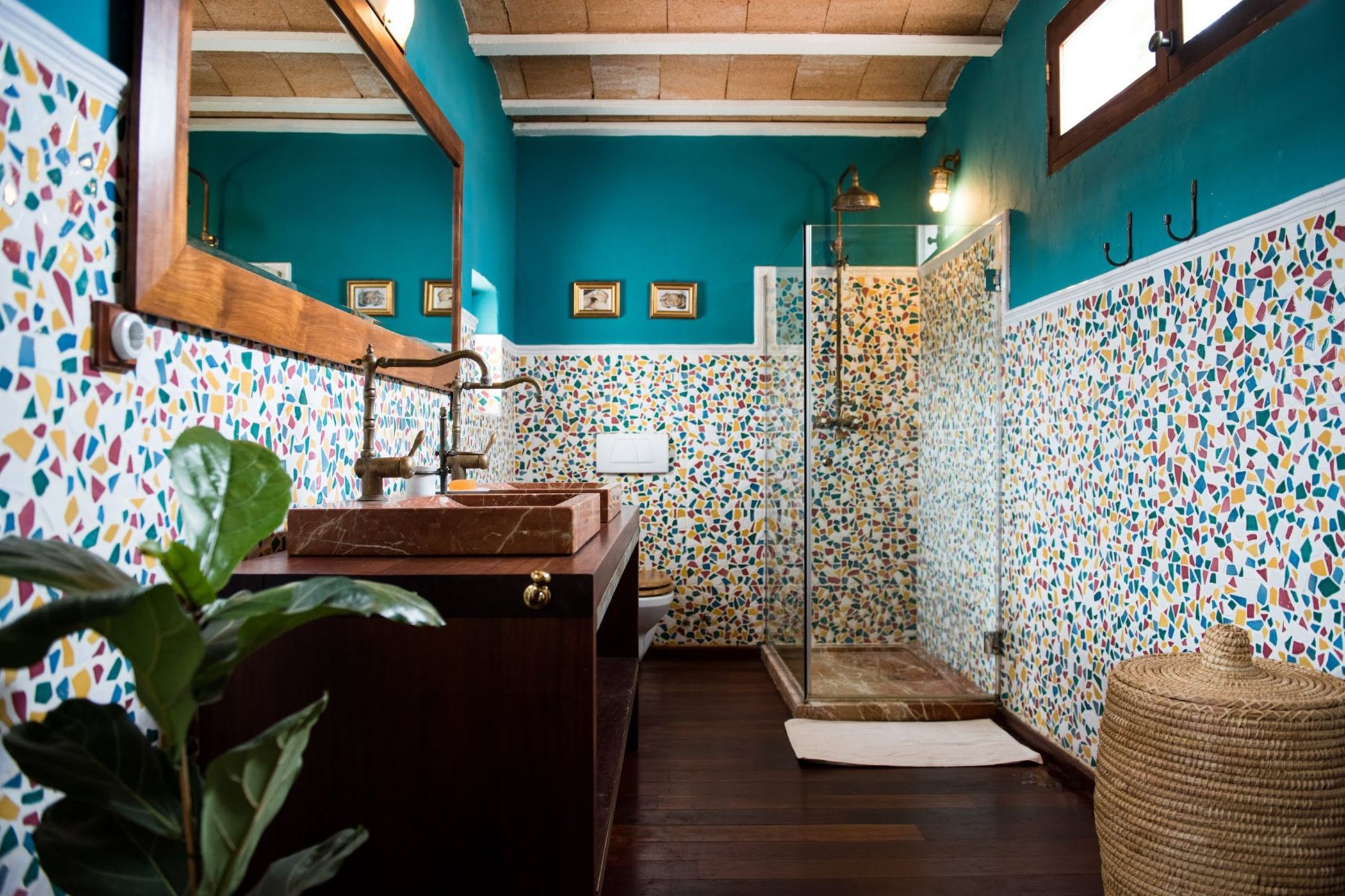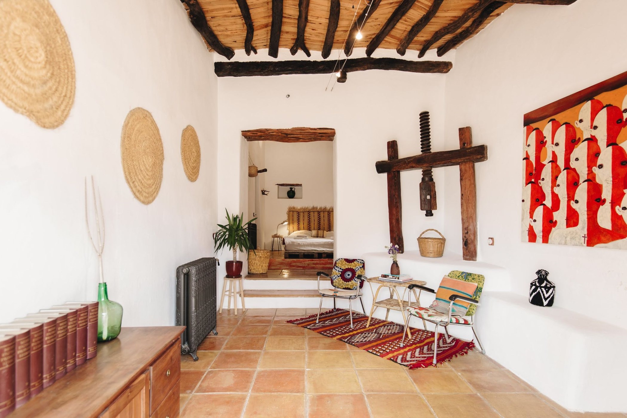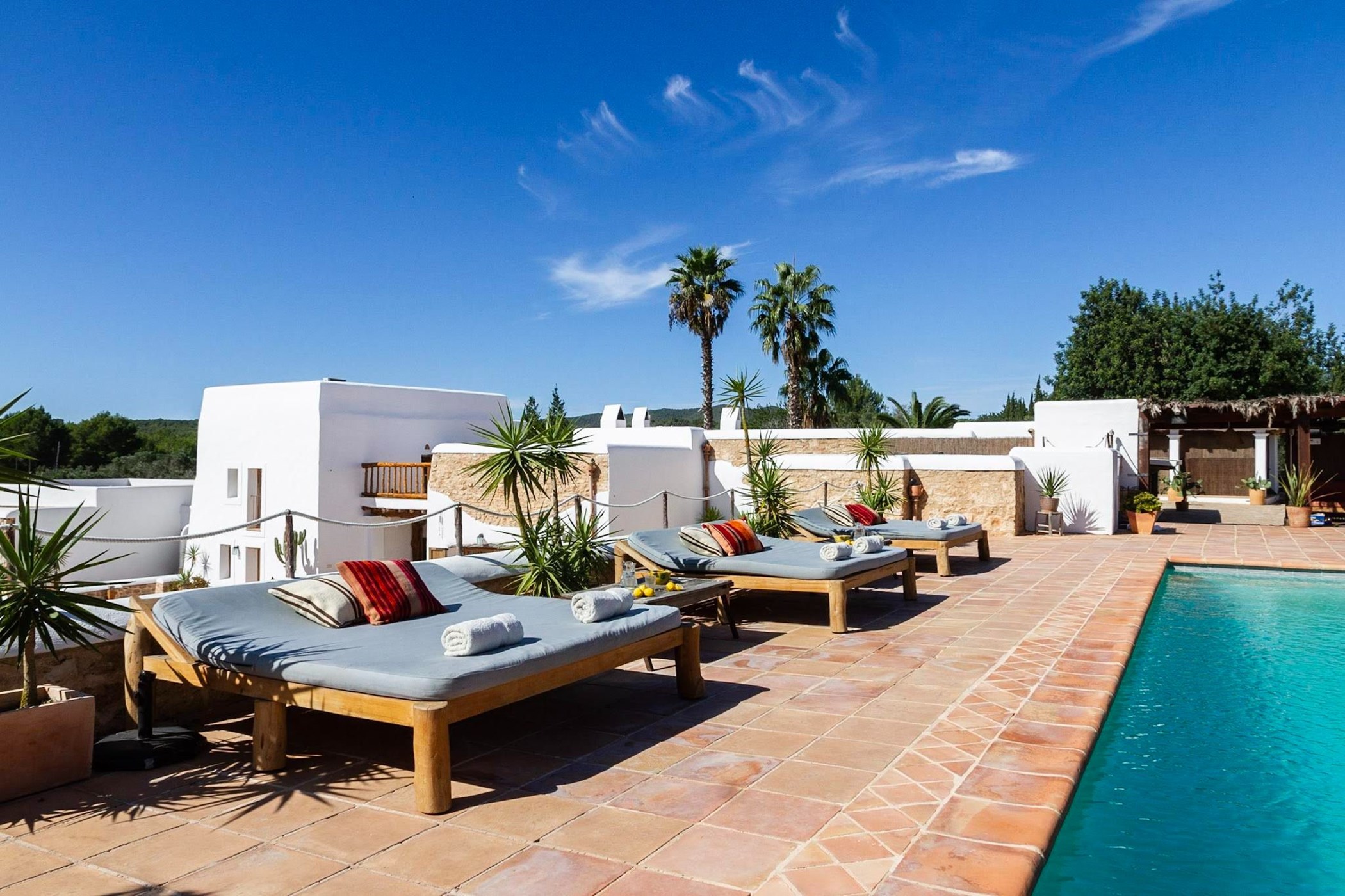 Built with traditional sabina wooden ceilings and cal-white stone walls, each of the 6 large bedrooms are decorated in its own definitive style. Four bedrooms are located in the main house, while the other two are external rooms with their own entrance. All rooms are fully equipped and have high-speed wifi.