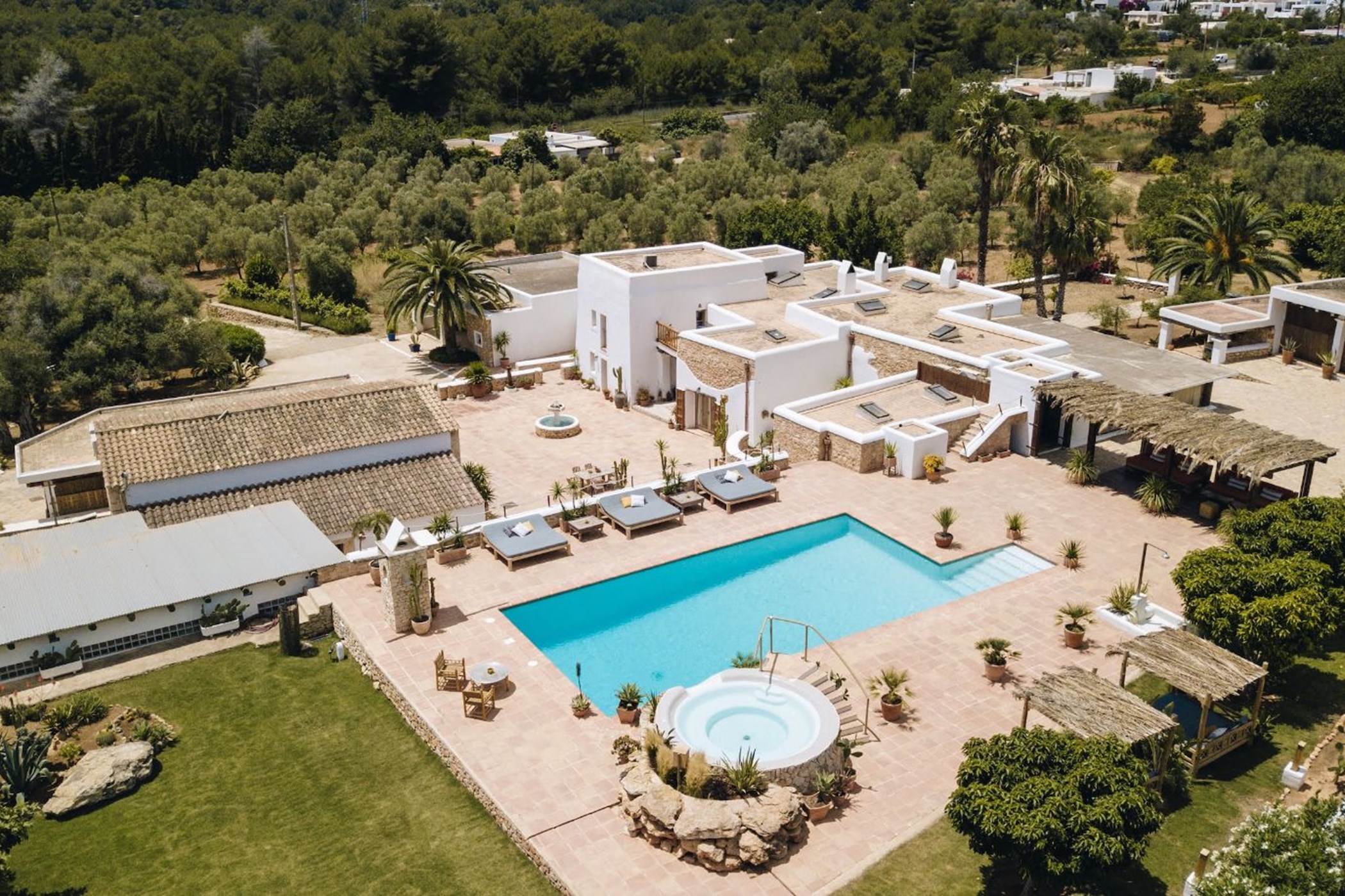Elegantly restored farmhouse conveniently located in the rural heart of the island, just a short walk to the village of Santa Gertrudis, a vibrant and popular place full of lively bars, cafes and excellent restaurants. The 600-year-old Hacienda offers a truly authentic Ibiza experience and is set in a large olive plantation and surrounded by green mountains.