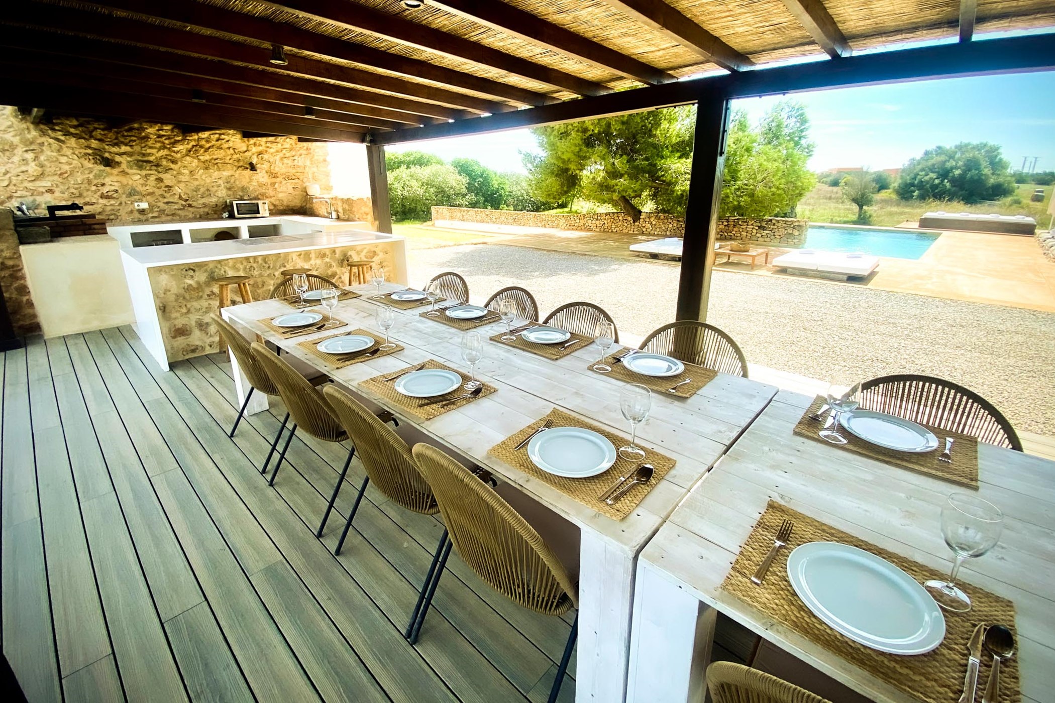 Can Sage offers huge amounts of outdoor entertaining space including a gazebo with barbeque, shaded pergolas, multiple dining zones and of course a superb swimming pool. Benefitting from a charming gazebo, barbeque area and outdoor dining zones, Can Sage is perfect for welcoming a large family or a group of friends. Surrounded by vast amounts of agricultural land, the villa provides uninterrupted views of the majestic medieval fortress Dalt Villa.
