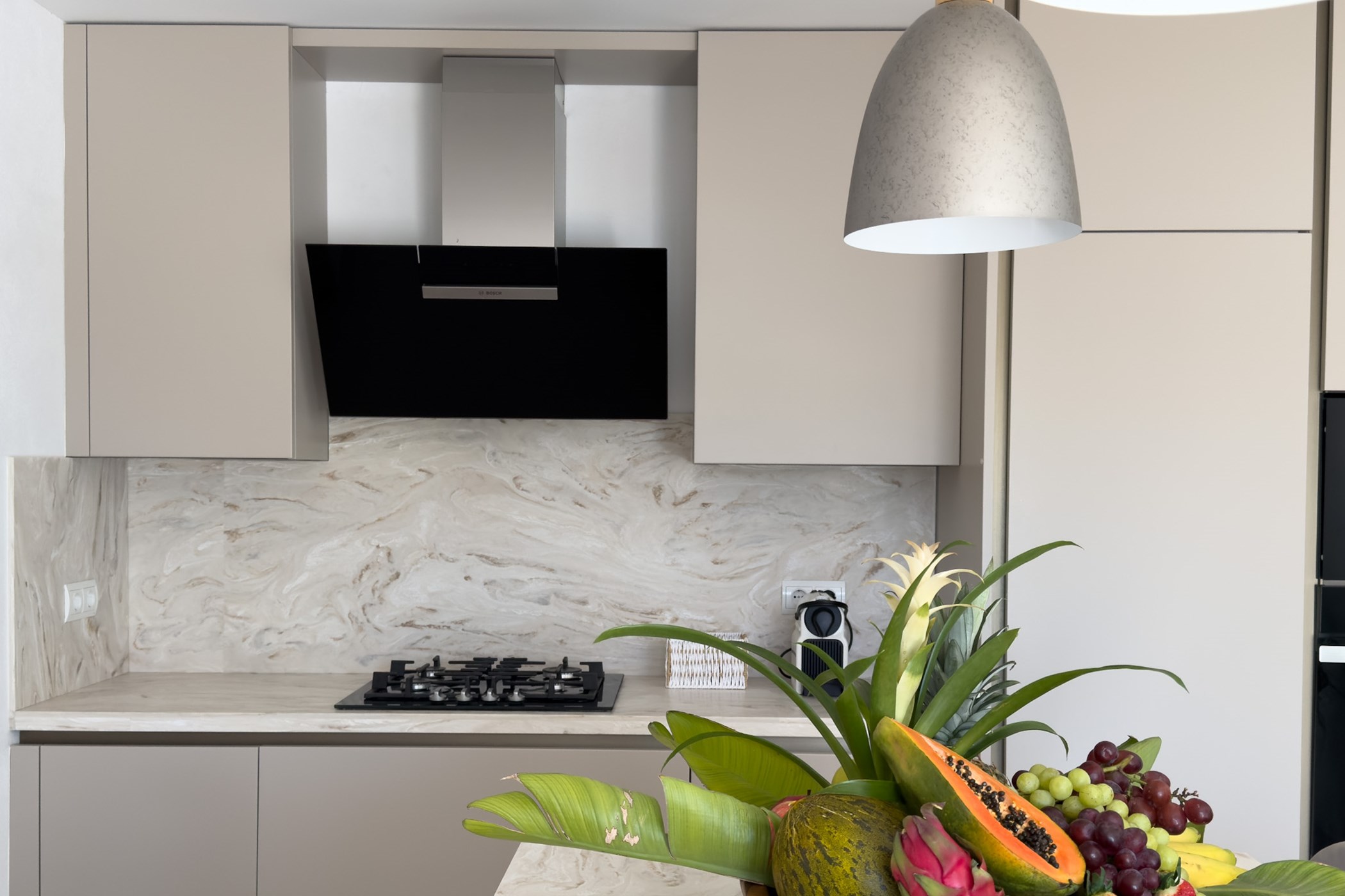 The villa offers 3 double bedrooms, all equipped with air conditioning and spacious wardrobes to ensure maximum comfort. There are 2 full bathrooms, one with a bathtub and another with a shower, providing convenience for all guests. The cozy dining area is designed for shared moments, featuring a dining table and a sofa next to a plasma TV. The entire house is fully air-conditioned with hot/cold air conditioning, ensuring a pleasant atmosphere year-round.