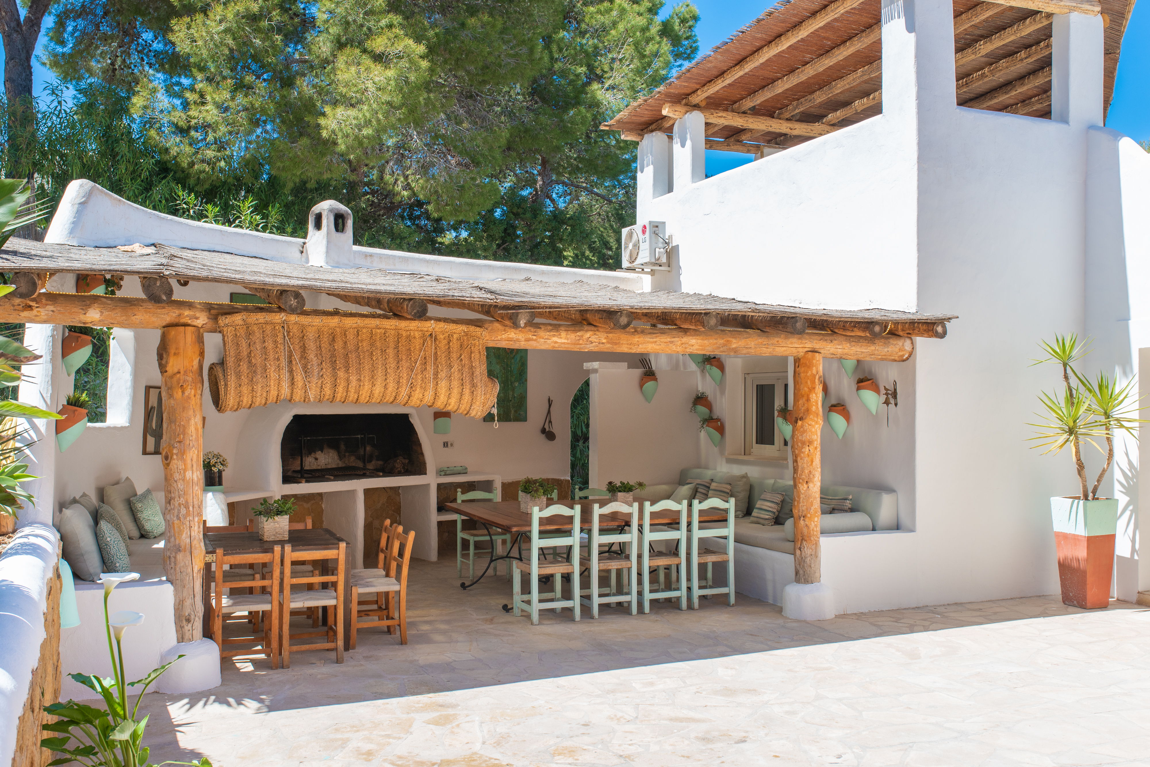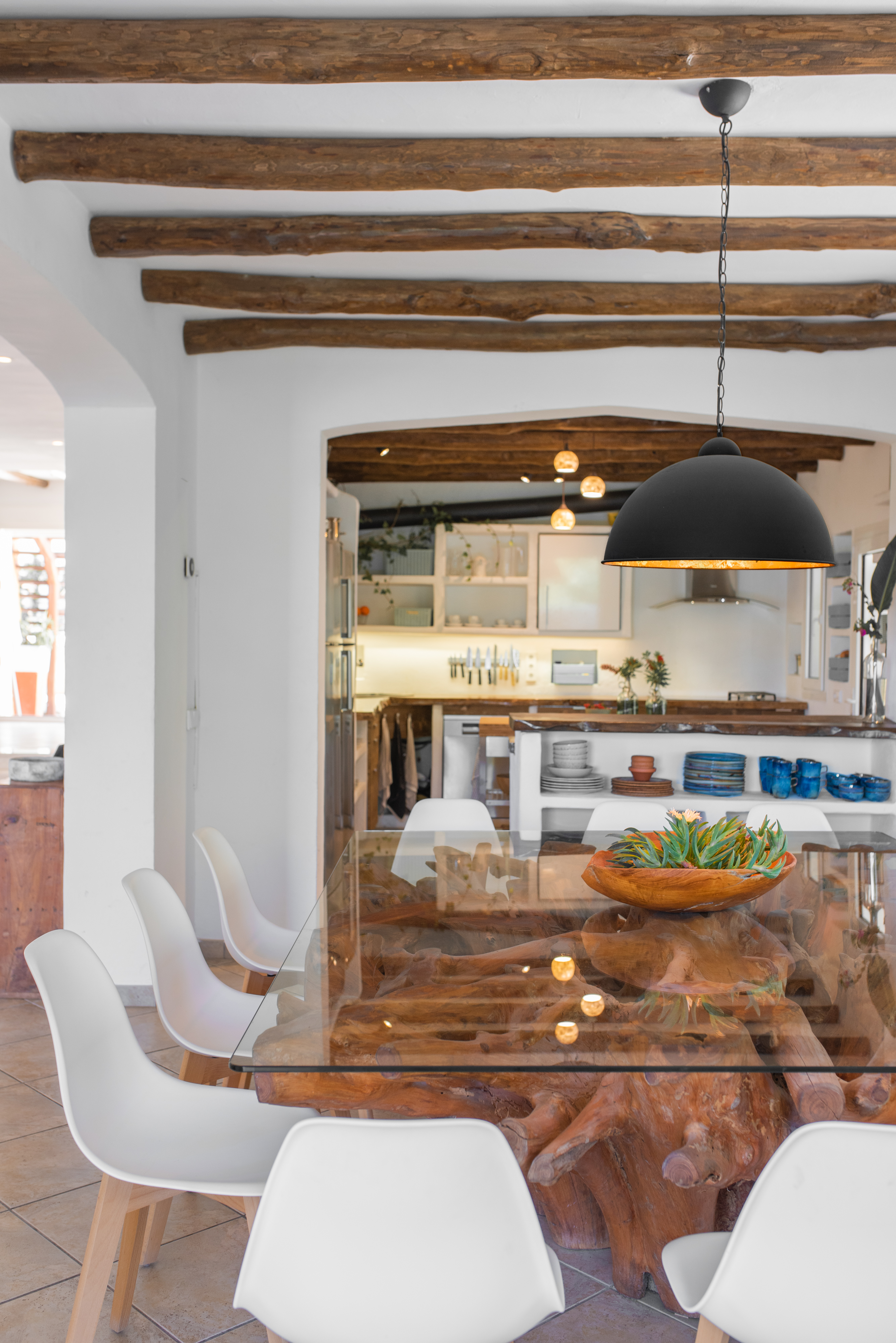 The villa has plentiful the living areas inside and interior designs of the highest quality throughout, with various spaces for you to kick back and enjoy your Ibizan experience and enjoy the spectacular seaviews over the bay from the comfort of your sofas. A bespoke dining area is perfect for indoor entertaining and of course the house is complete with a fully equipped kitchen which has all the state of the art appliance you would expect from a home of this quality.
