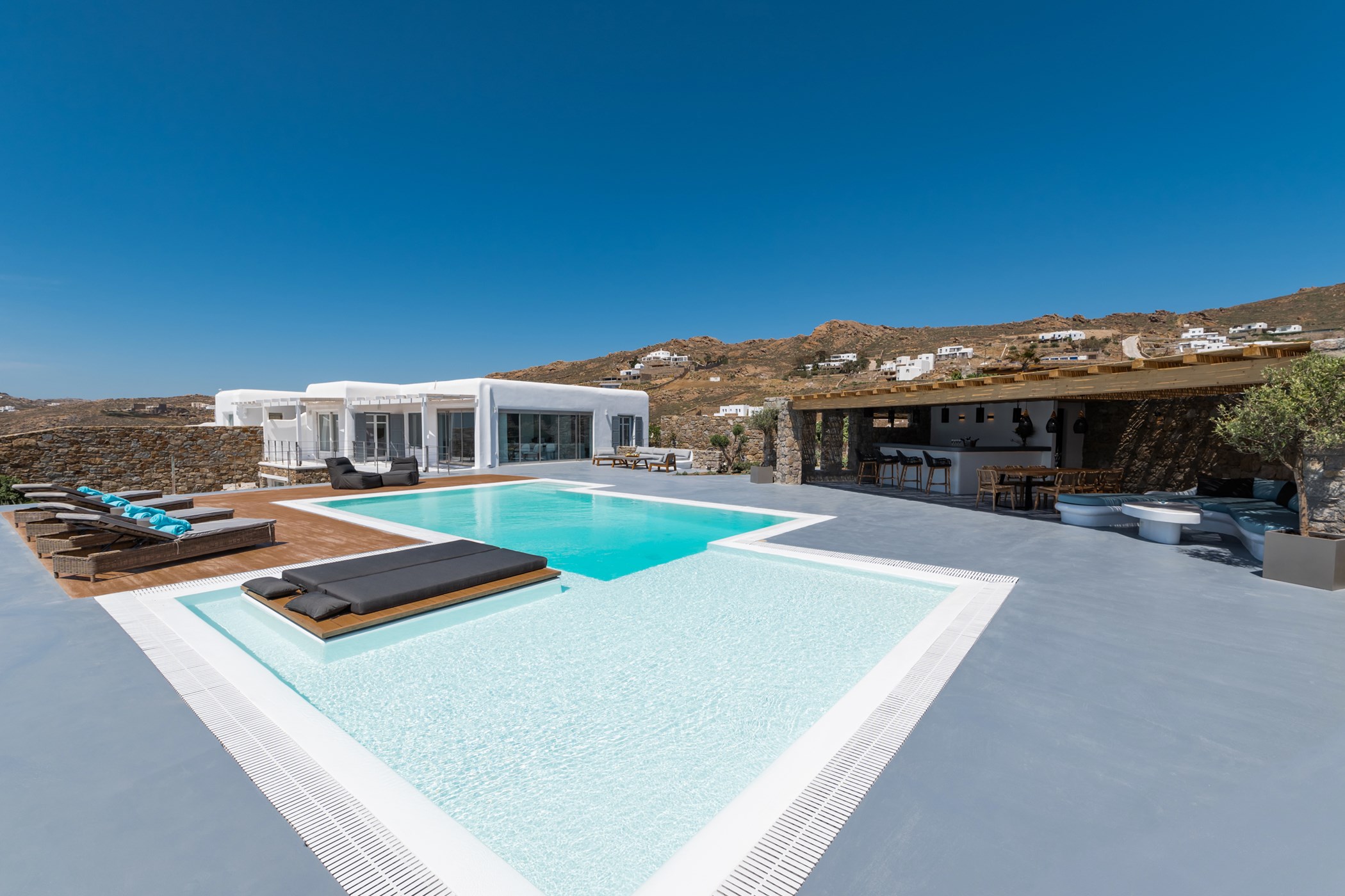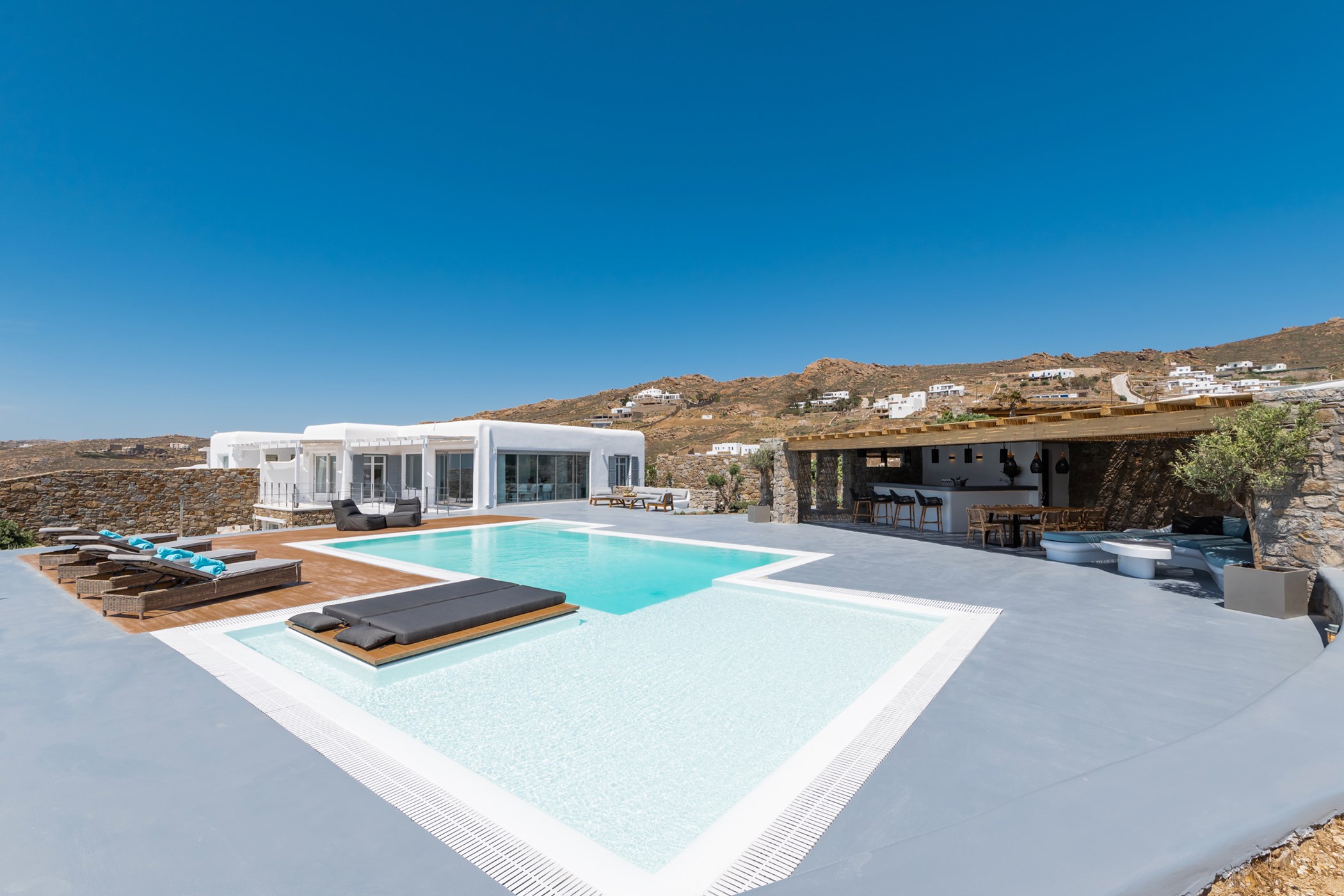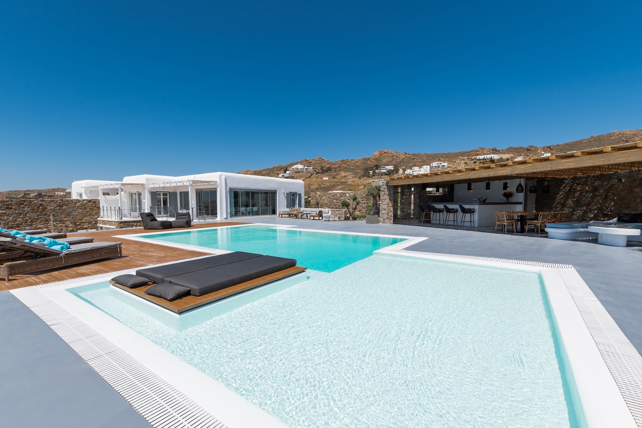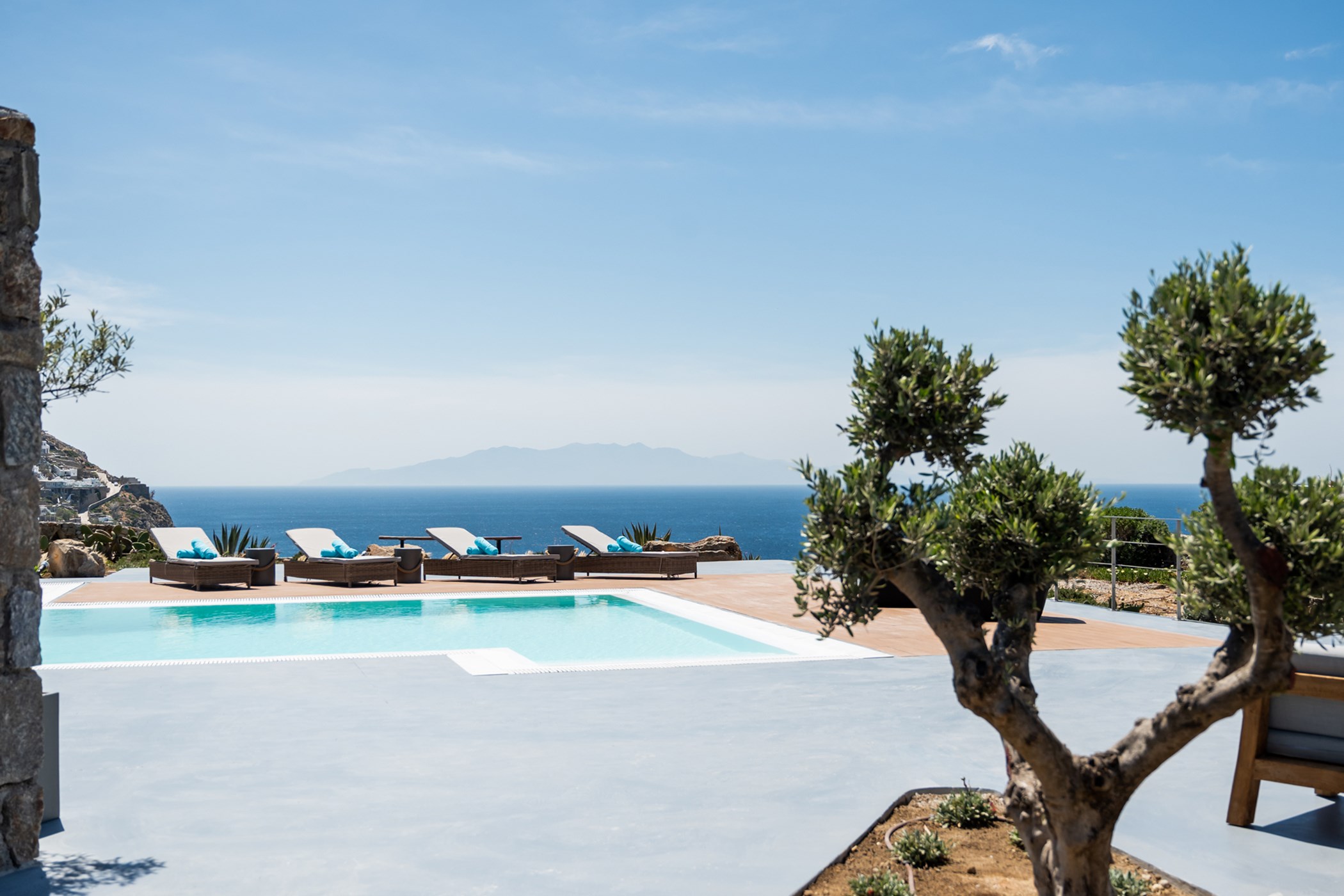 Salty villa is an astonishing property a part of a luxurious private complex of villas situated in one of the most peaceful areas of the island. Boasting magnificent views of the blue Aegean Sea and the neighborhood islands such as Paros and Naxos. The holiday home features 5 lovely fully air-conditioned bedrooms that can easily accommodate 10 lucky guests in complete comfort and relaxation. The villa spreads across two levels which are connected with internal stairs consisting of a ground level (facing the sea) featuring a cozy living room with “removable” windows for unobstructed view and extension of open space dining area, a fully furnished with modern appliances kitchen and a master bedroom with ensuite bathroom, direct access to the pool and private veranda with marvelous views of the Sea.
