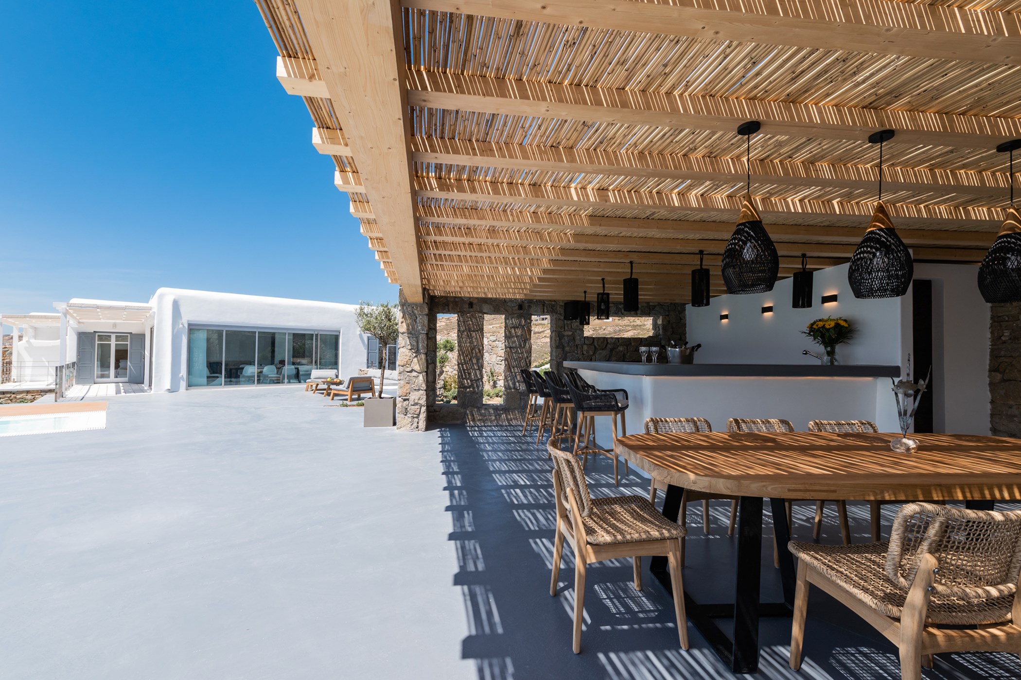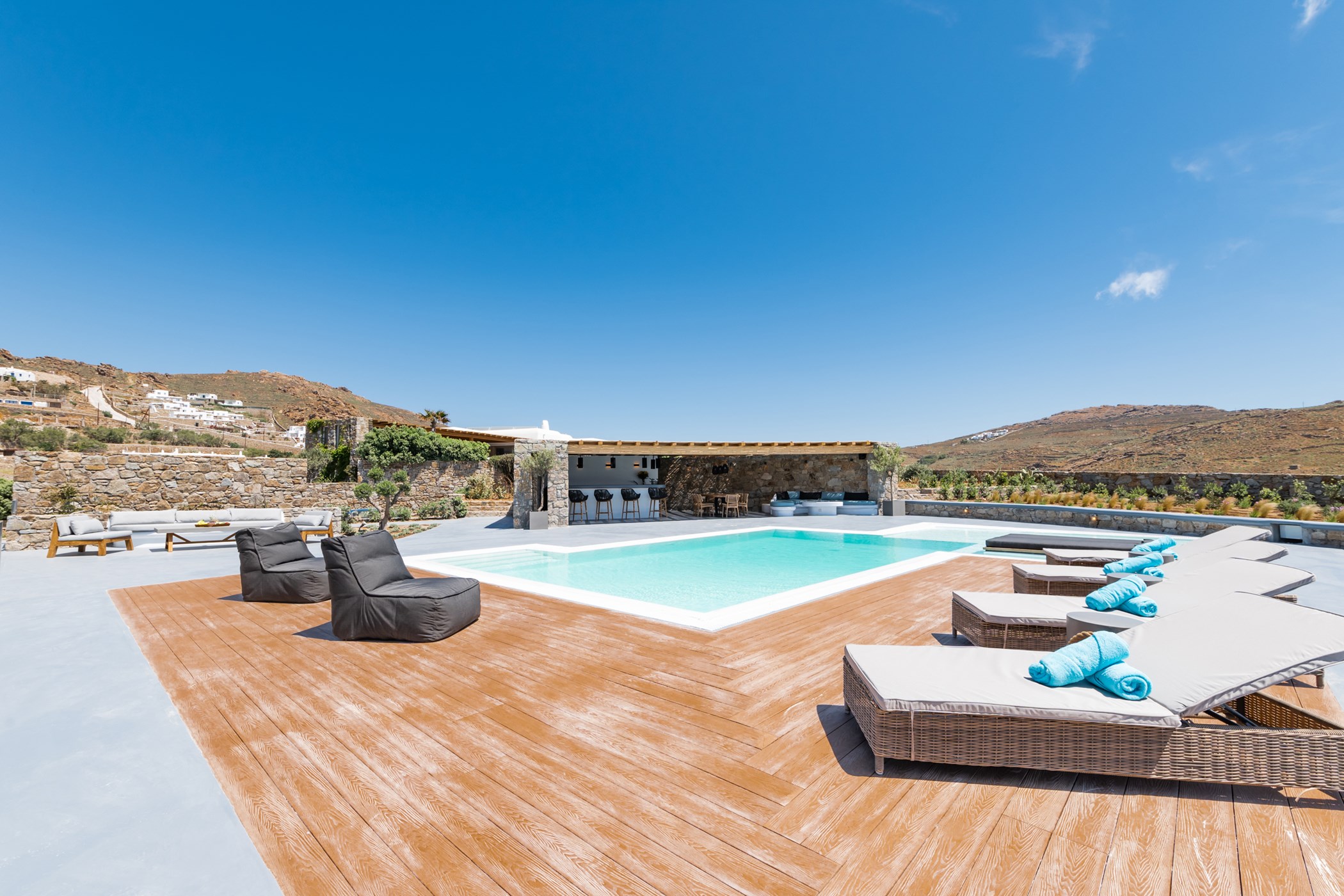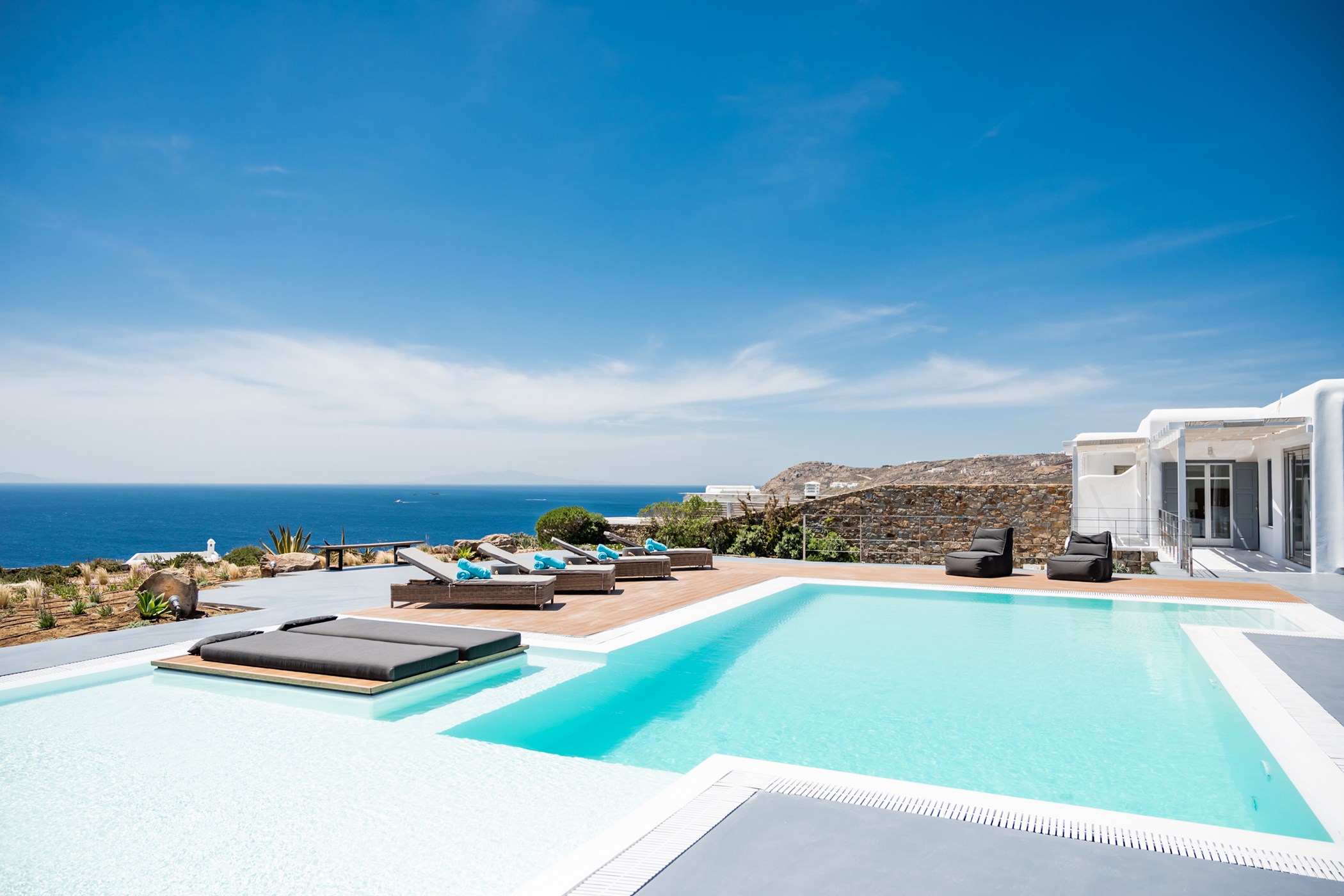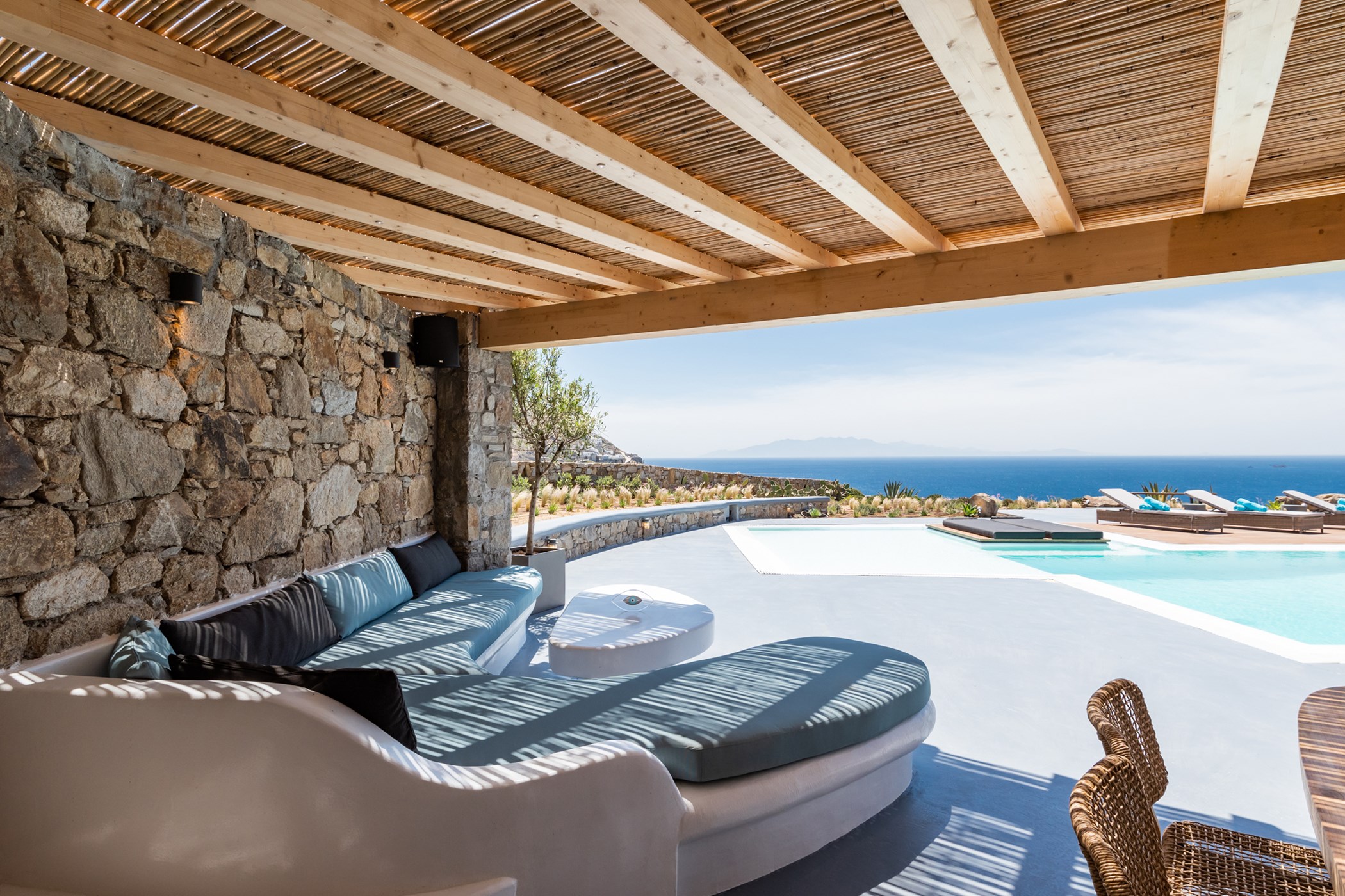 Salty villa is an astonishing property a part of a luxurious private complex of villas situated in one of the most peaceful areas of the island. Boasting magnificent views of the blue Aegean Sea and the neighborhood islands such as Paros and Naxos. The holiday home features 5 lovely fully air-conditioned bedrooms that can easily accommodate 10 lucky guests in complete comfort and relaxation. The villa spreads across two levels which are connected with internal stairs consisting of a ground level (facing the sea) featuring a cozy living room with “removable” windows for unobstructed view and extension of open space dining area, a fully furnished with modern appliances kitchen and a master bedroom with ensuite bathroom, direct access to the pool and private veranda with marvelous views of the Sea.