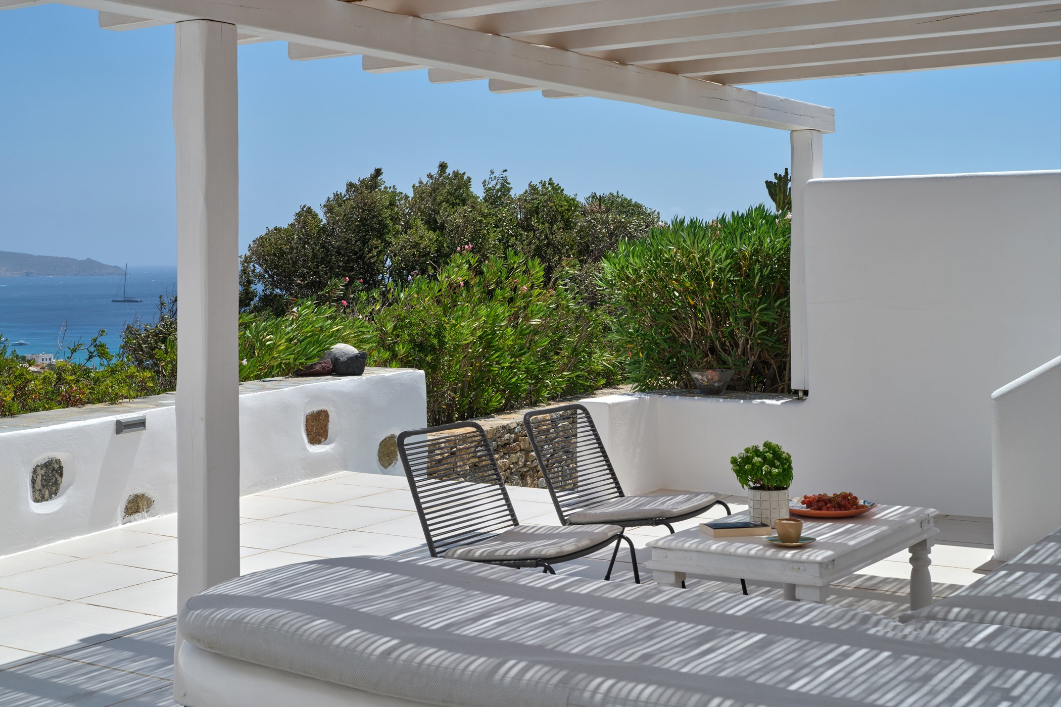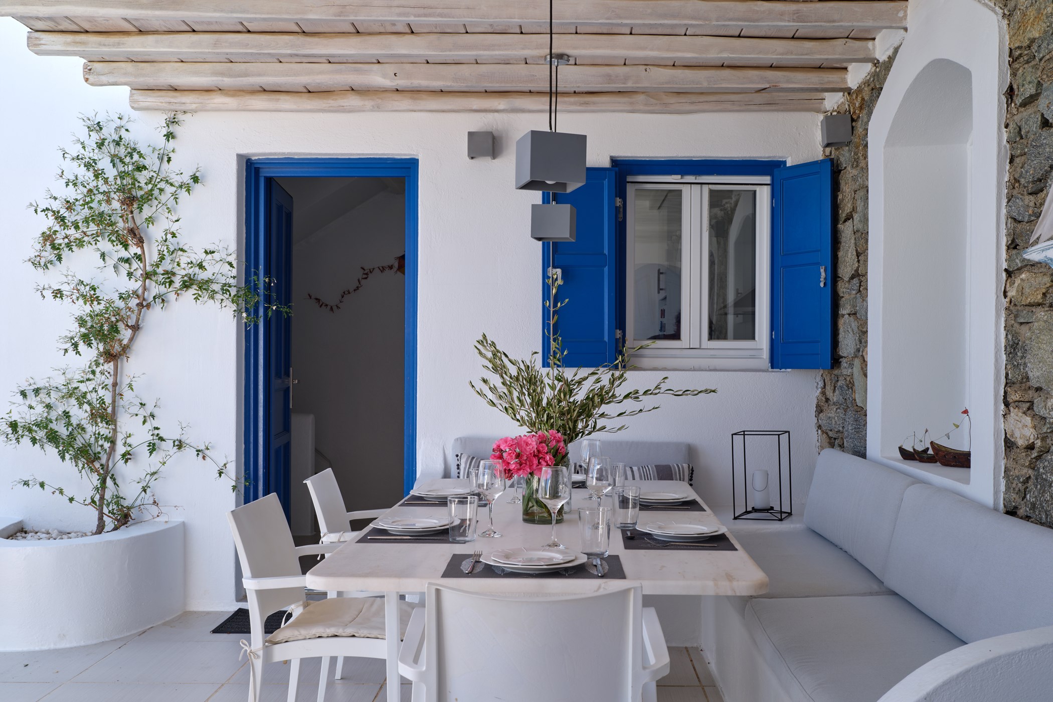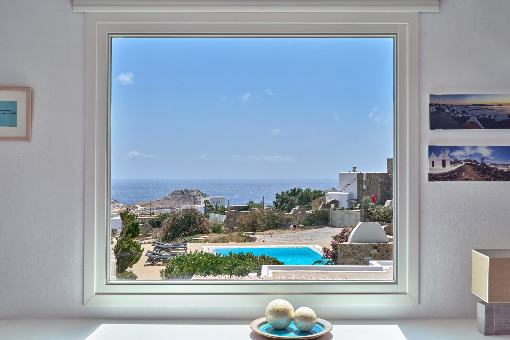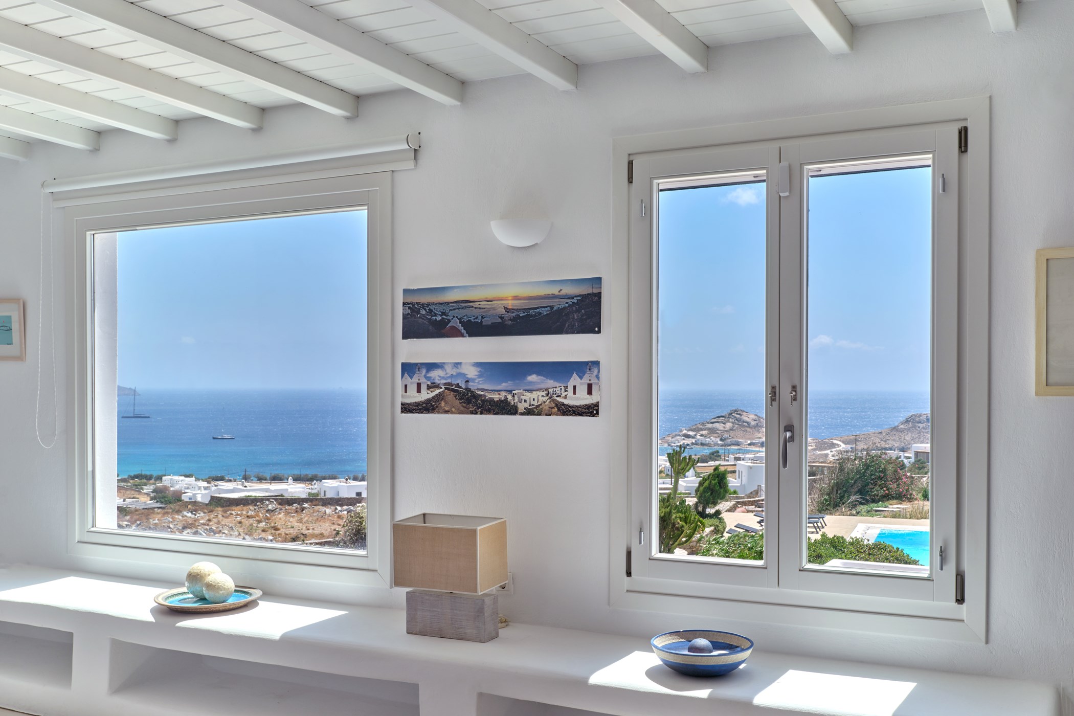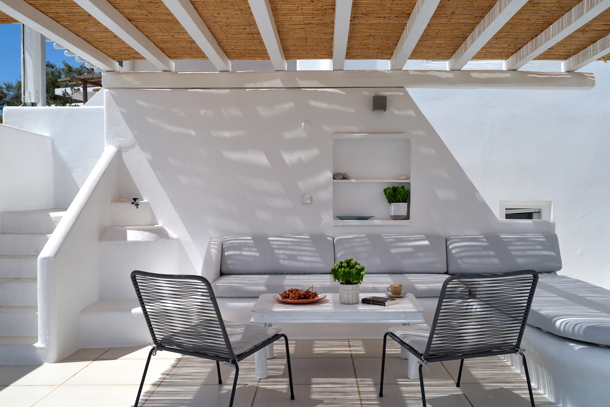 Ample and luminous, this beautiful villa offers an utterly soothing ambience in all interior spaces where its bright white and soft beige tones on the walls and all furnishings create an aura of freedom and purity. Decorated with a contemporary, minimal mood along with smart antique details, this is a property that will guide you through the authentic Mykonian living.