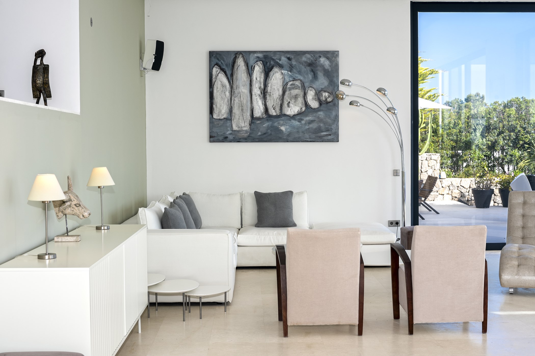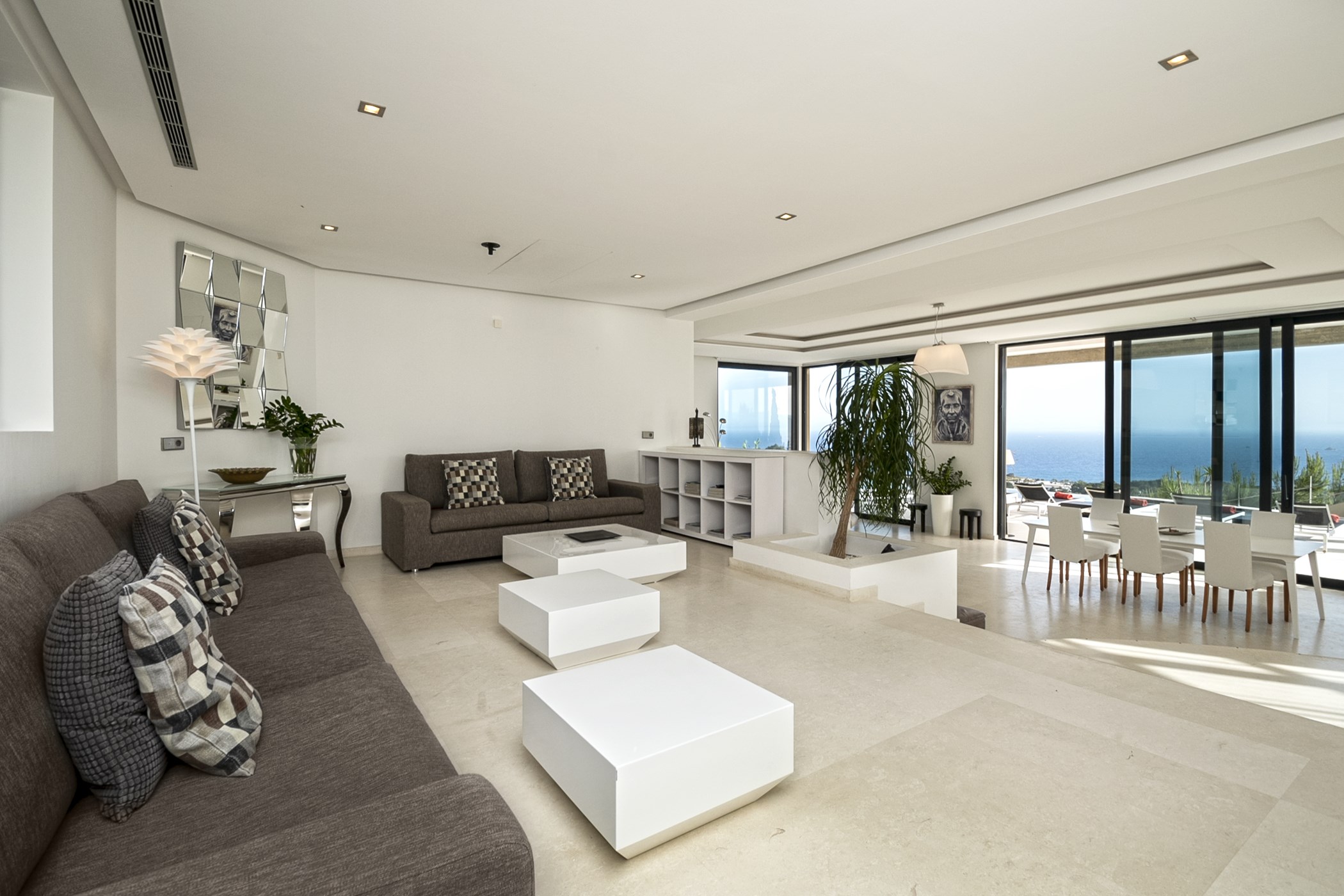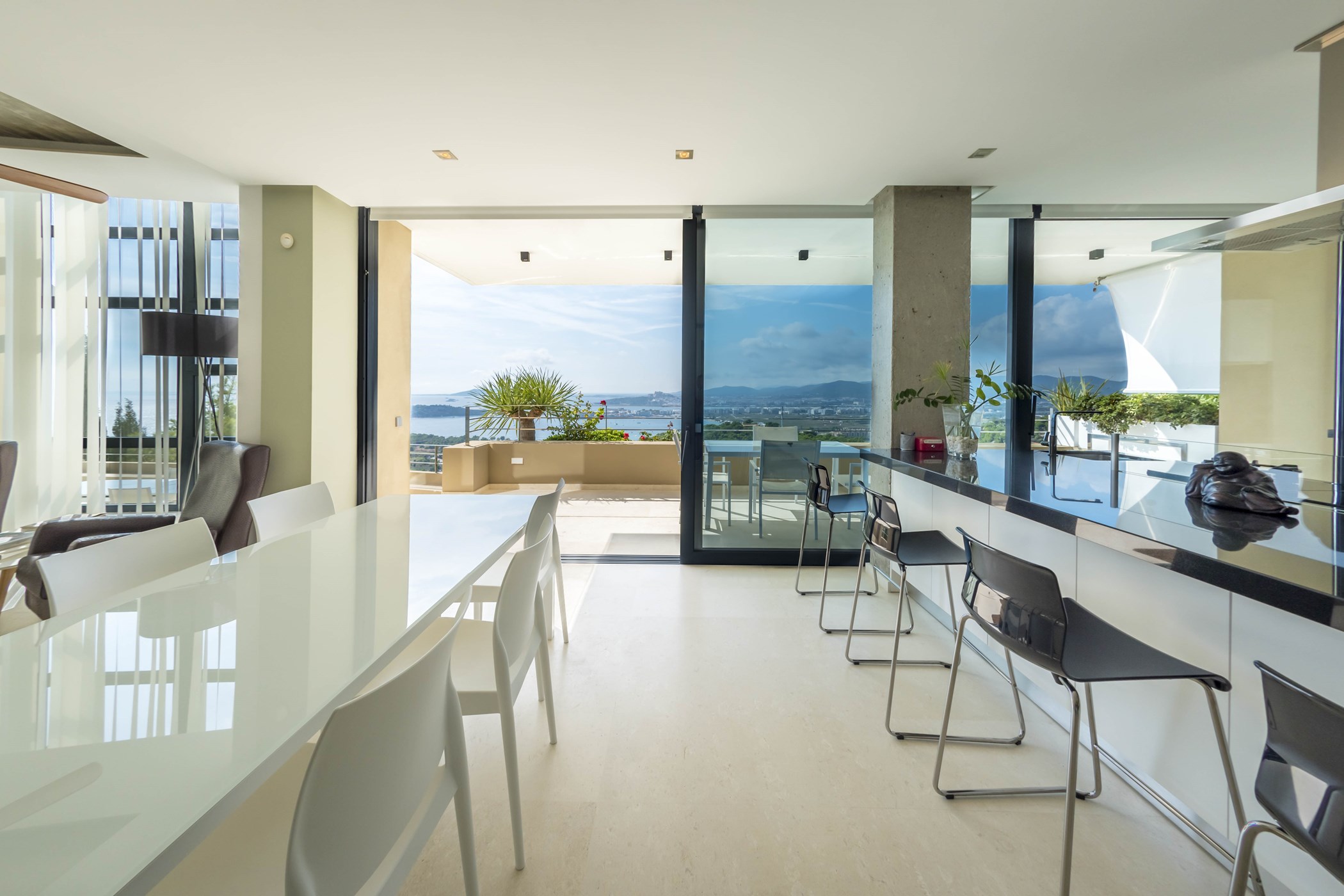 Villa Abigail is a majestic 4-bedroom, hillside contemporary villa with panoramic views looking onto Ibiza Town and across the Mediterranean sea, sweeping across as far as Formentera. The property is perfectly situated close to Talamanca beach where you can enjoy the vibrant cafe culture.
