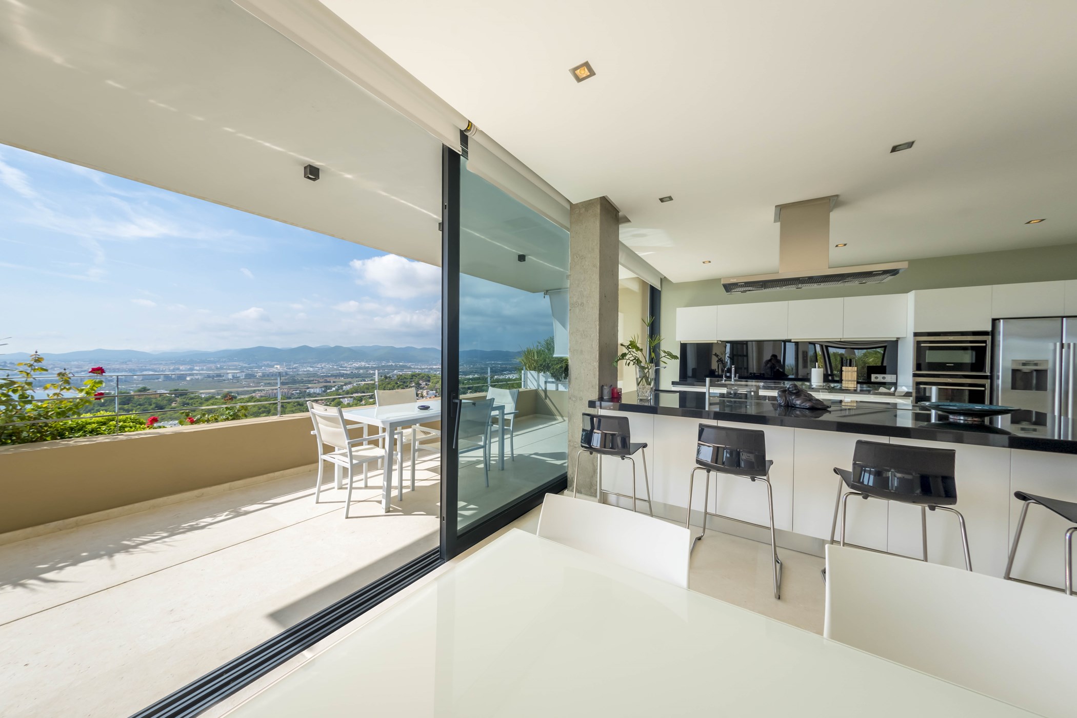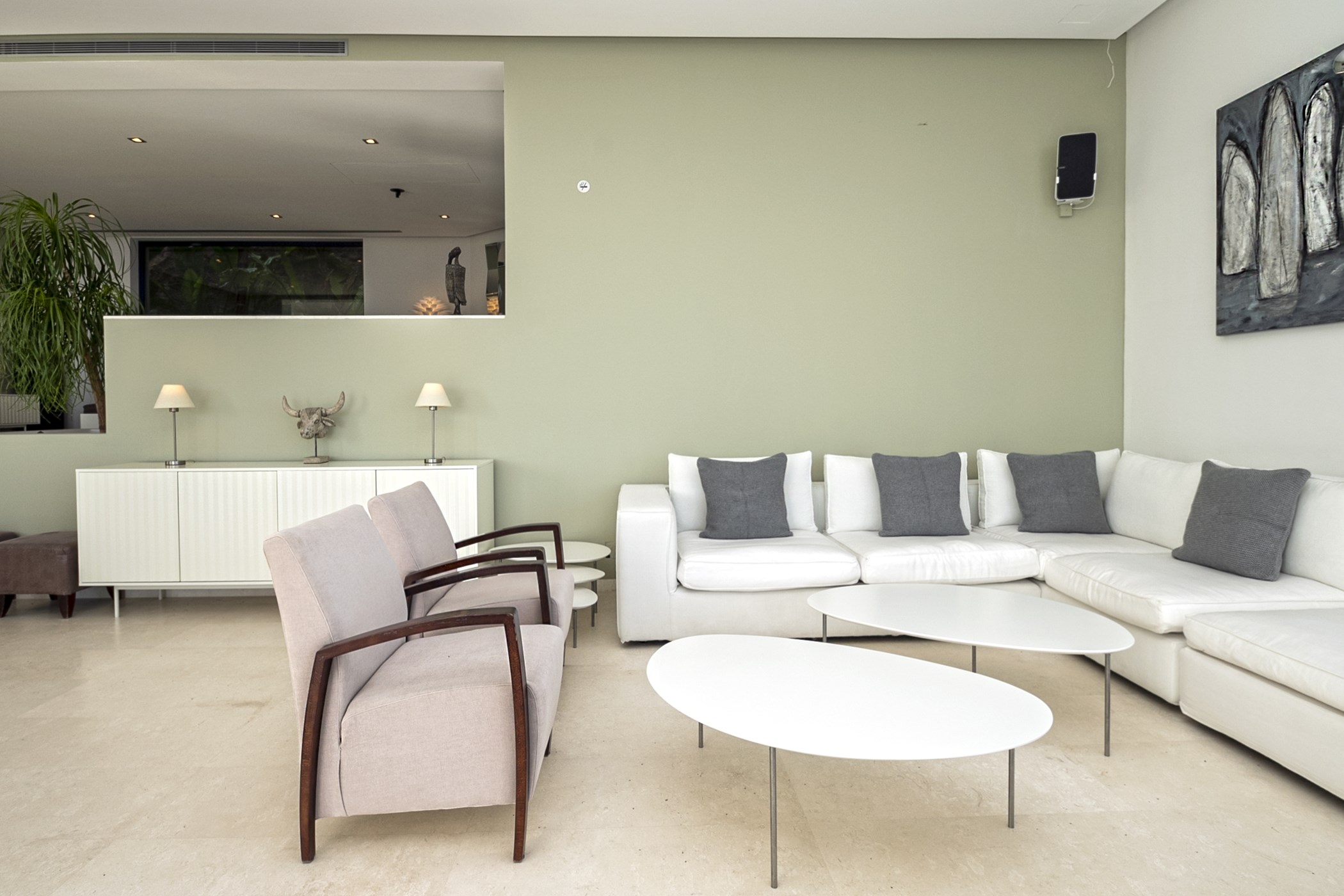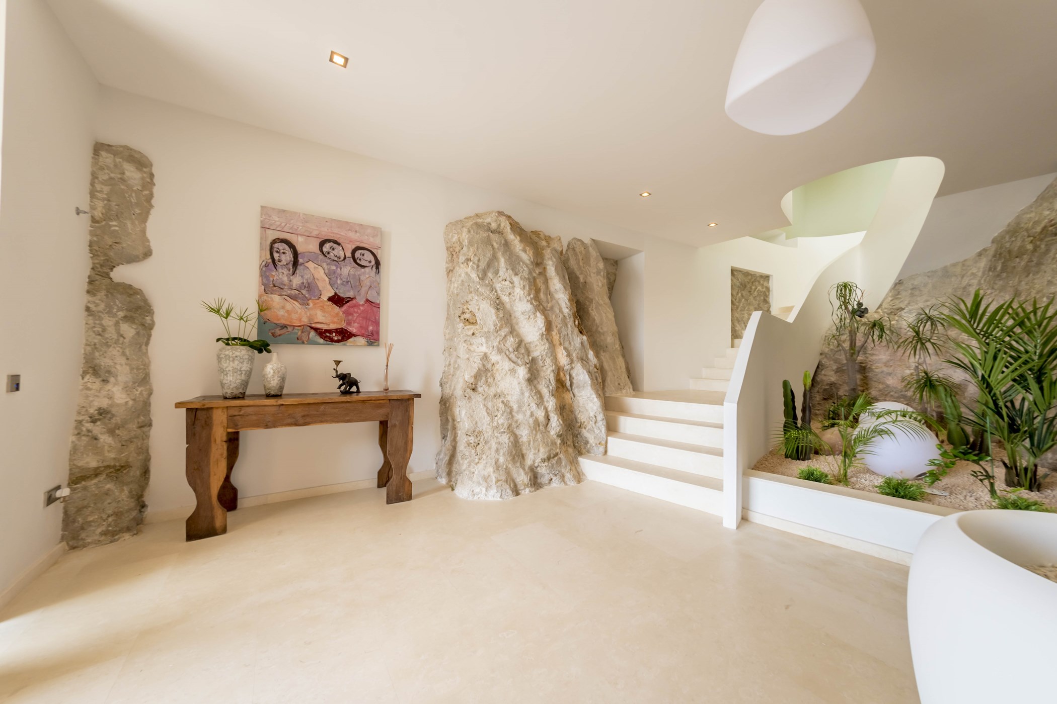 This modern, contemporary villa is polished with cool grey-white interiors and marble floors with an expansive natural flood of sunlight entering through the floor to ceiling windows. As you enter this prestigious property, a unique feature stone wall captivates your attention stretching from the stairway on each level. The first floor is open plan with a casual seated lounge, a second mezzanine lounge, and a formal and second, more relaxed dining area all serviced by the sleek contemporary kitchen.