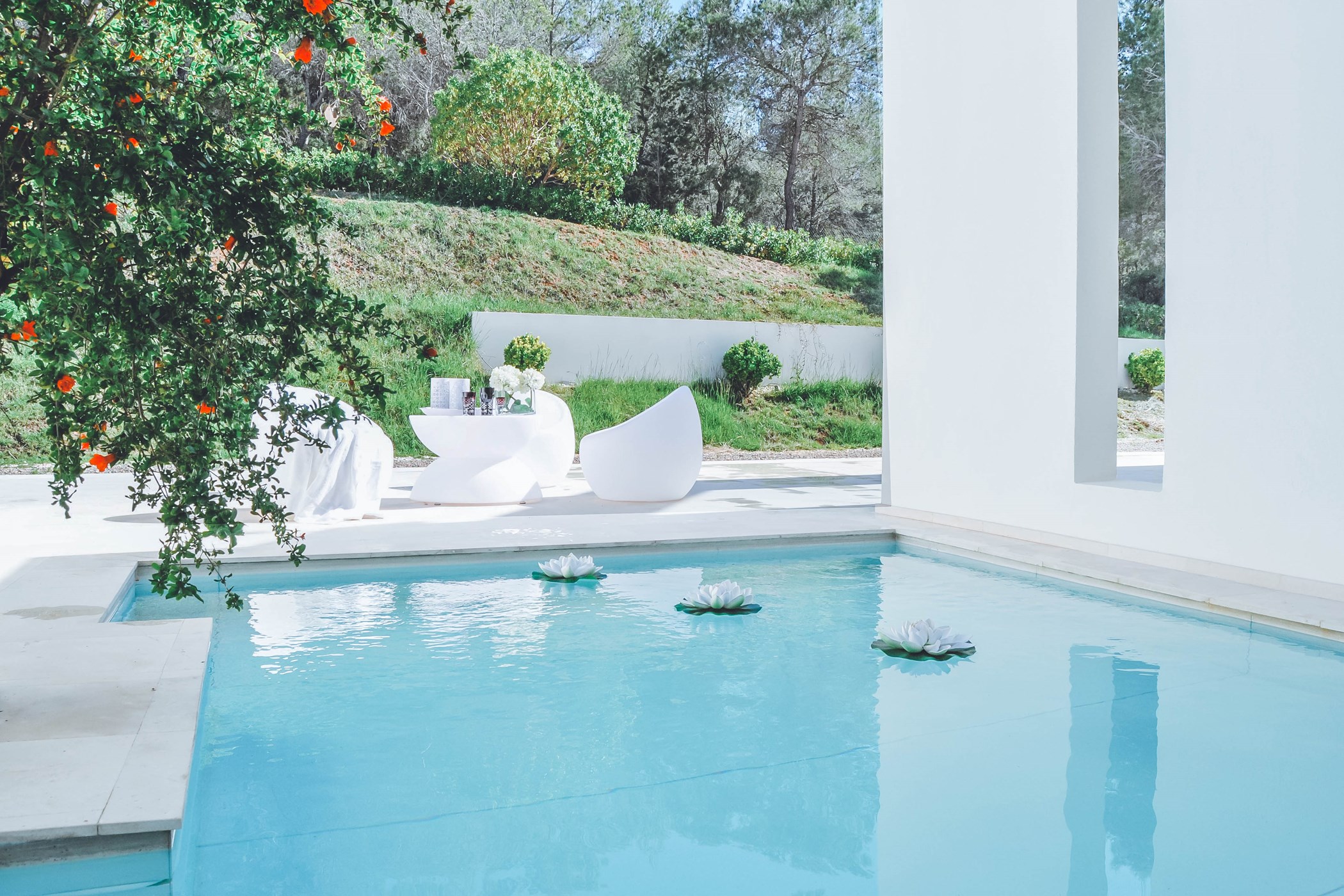 Villa Adalyn boasts the perfect home for those wishing to host extravagant events, coming complete with a purpose-built professional outdoor kitchen with a service table. The exteriors feature white luxurious and sun-drenched terraces surrounding the swimming pool and its refreshing water cascade fountains. Several luxurious chill out areas surround the pool, and include an outdoor cocktail bar with grand sized daybeds, modern sofa seated lounging spots and an under-covered elegant al fresco dining space, perfect for sunset cocktails to be shared with friends and family.