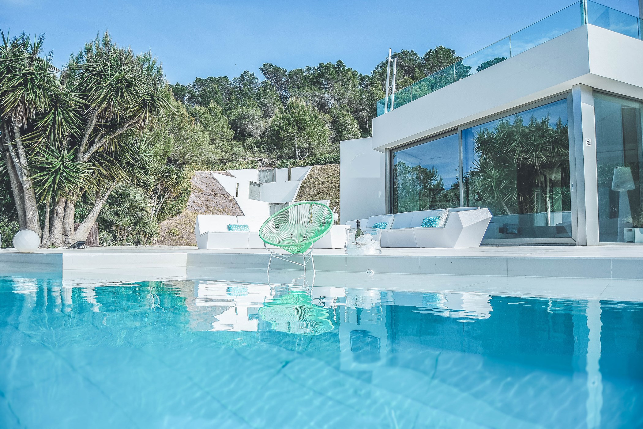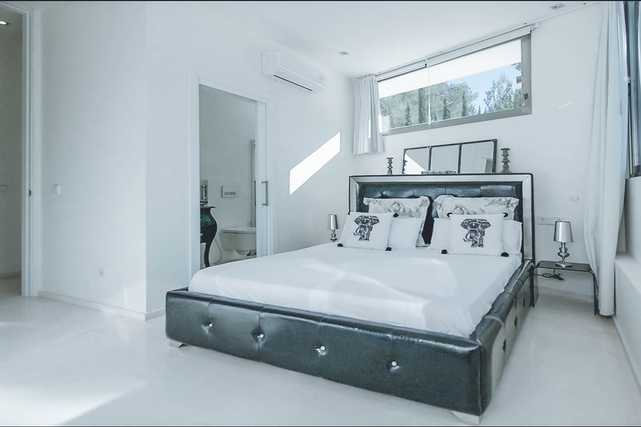 Villa Adalyn is a spectacularly designed modern 6 bedroom property located high in the hills of San Jose, a truly sought after location close to the quaint village of San Augustin, and affording easy access to some of the island’s most delightful beaches, including Cala Tarida, Cala Bassa and Cala Conte. This home has an admirable design featuring two separate villas under the same complex and offers the most fantastic sweeping views of the west coast of Ibiza and the sparkling Mediterranean sea.
