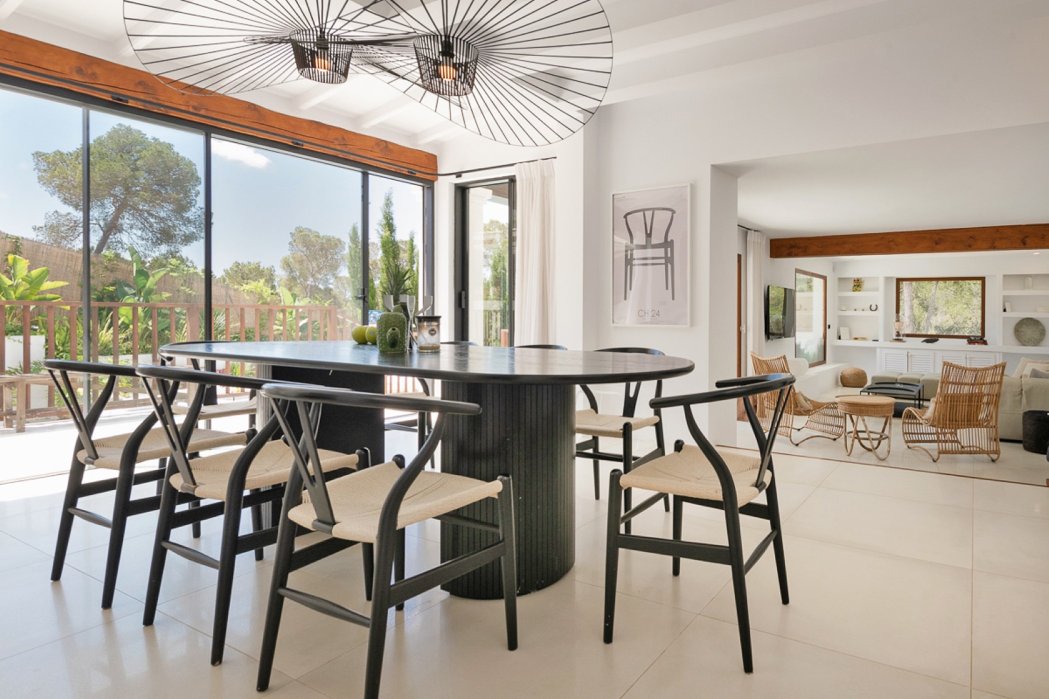 Villa Apia, located in the secure urbanization of Can Furnet, is a stunning and recently renovated property that draws attention both inside and out. Completed in 2020, this beautiful family home offers a unique combination of authentic Ibiza charm with a modern touch. Every detail has been carefully considered, blending the spirit of Ibiza, contemporary design, and top-of-the-line appliances seamlessly.