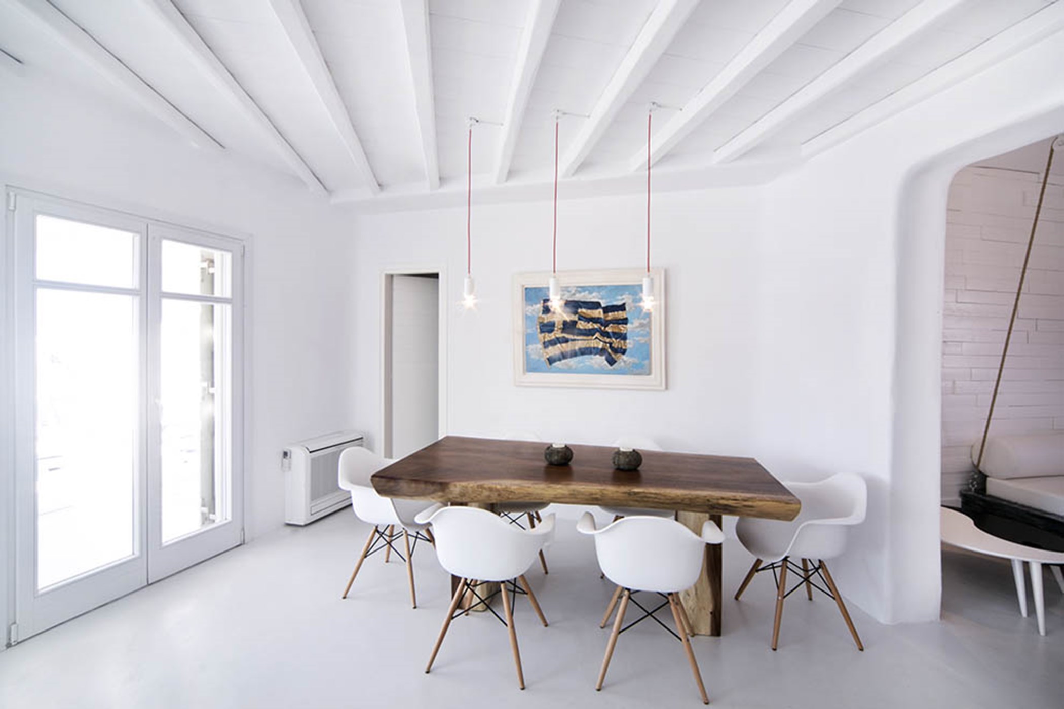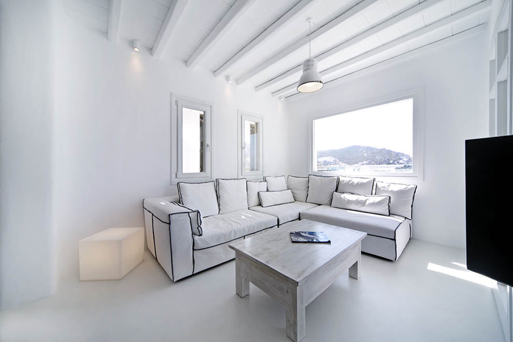 Villa Ariana is a lovely 4-bedroom villa nestled on a hillside at the southern part of the island and few meters away from the cosmopolitan Elia Beach. The 175 sq. m property boasts magnificent views of the turquoise water of the Aegean Sea and the colorful Mykonian sunsets. Charming with its’ minimal finesse, dominant white styling and the premium materials selected, the villa blends perfectly traditional Cycladic architecture with modern and minimal decoration giving guests a sense of relaxation and comfort by hosting them in a warm yet lavish summery surrounding. This beautiful home is totally family friendly. As a matter of fact, it is one of the very few “children friendly” villas in Mykonos.
