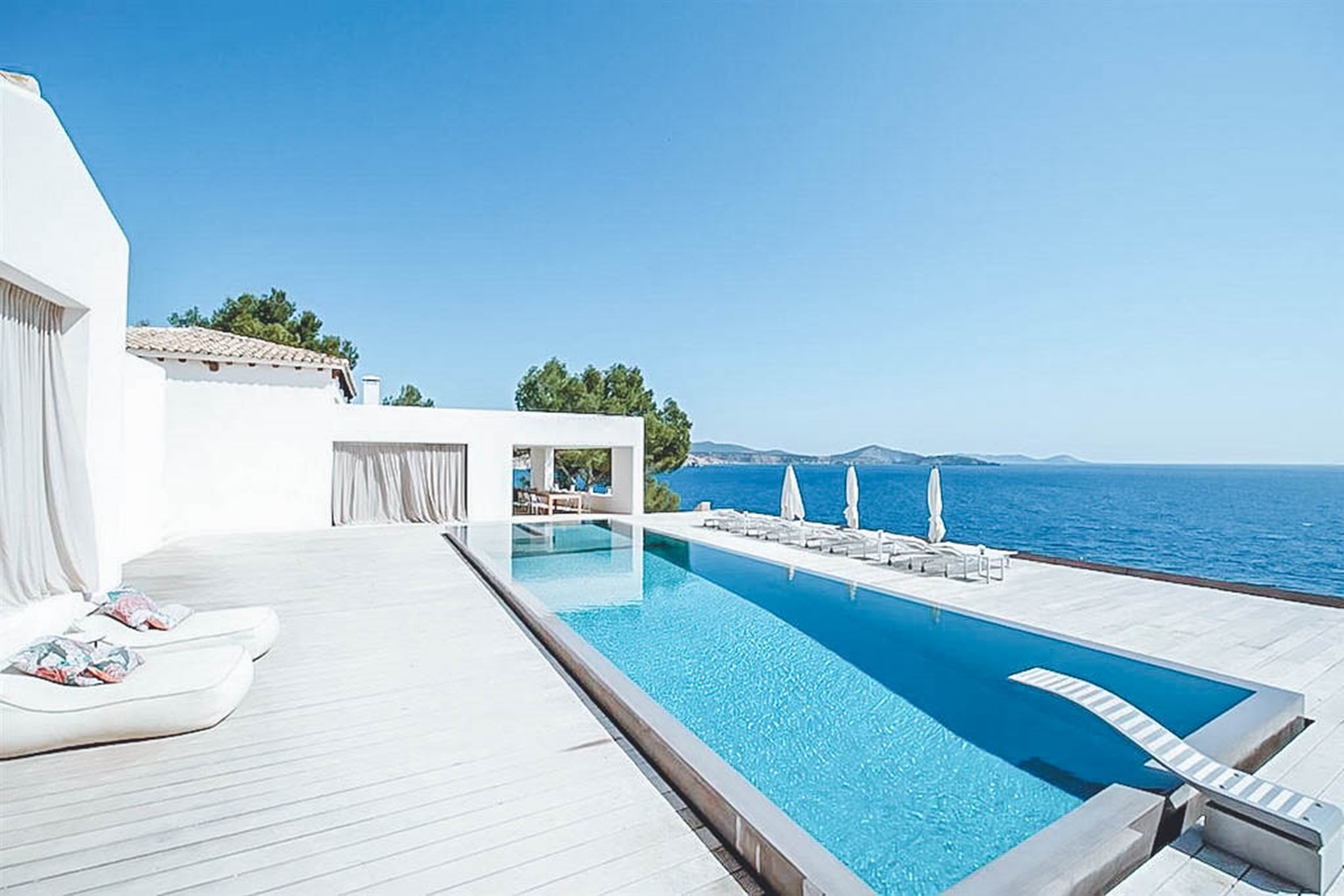 Villa Bailey is an exceptional front-line property set high on a cliffside in the exclusive area of Es Cubells, only a short drive into Ibiza town with direct access to a secluded beach. The location is simply unrivalled, offering spectacular, uninterrupted views across the sparkling Mediterranean Sea and the surrounding countryside and coastline.