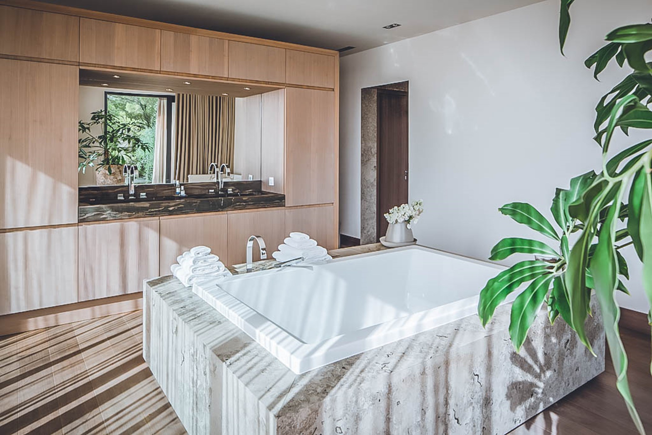 This modern, fully renovated villa is supremely well-designed, with immaculate furnishings and fittings. Villa Bailey invites guests to enjoy the sophisticated, atmospheric living space, a fully equipped kitchen with a centre island, and a separate professional kitchen designed for private chefs and dining. Integrated into the home is also a casino table, a home cinema, a large indoor games room, numerous game tables, a cinema projector, and an open-air Techno-gym.