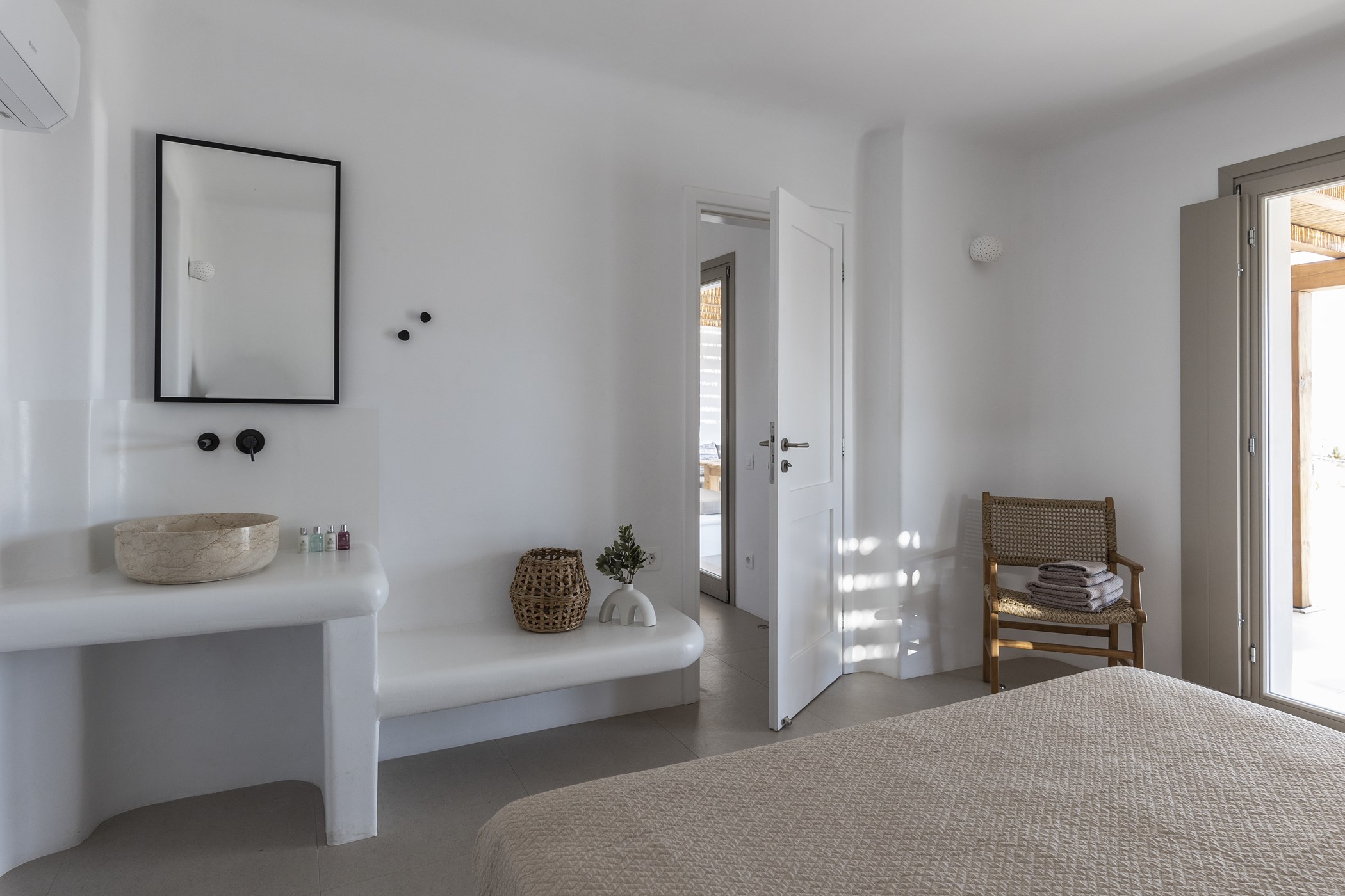 Discover the elegant Brand New Villa for Easy Living in the captivating Kalo Livadi area of Mykonos. This exceptional residence features three beautiful bedrooms, each accompanied by a luxurious ensuite bathroom. The highlight of the villa is the mesmerizing unobstructed view, visible from all bedrooms, allowing you to immerse yourself in the breathtaking surroundings. With meticulous attention to detail, the decoration combines earthly tones and natural materials, creating a rural touch that adds to the villa's charm. While embracing a vintage aesthetic, the villa doesn't compromise on modern comforts, offering a seamless fusion of convenience and style. Escape to this enchanting villa and embrace the magic of Mykonos.