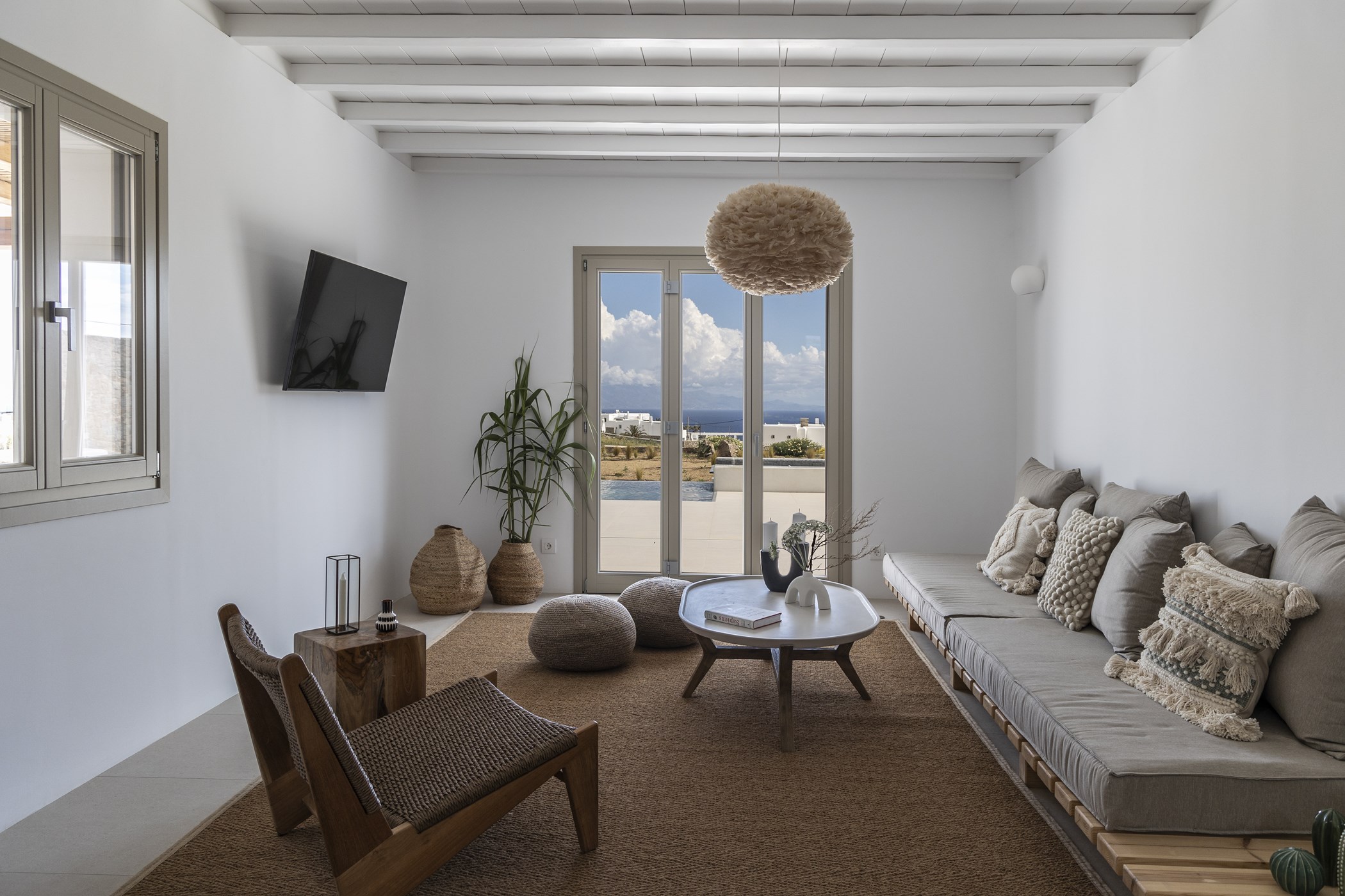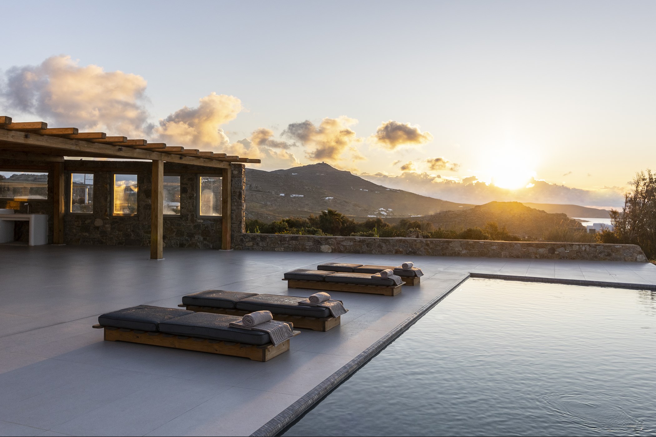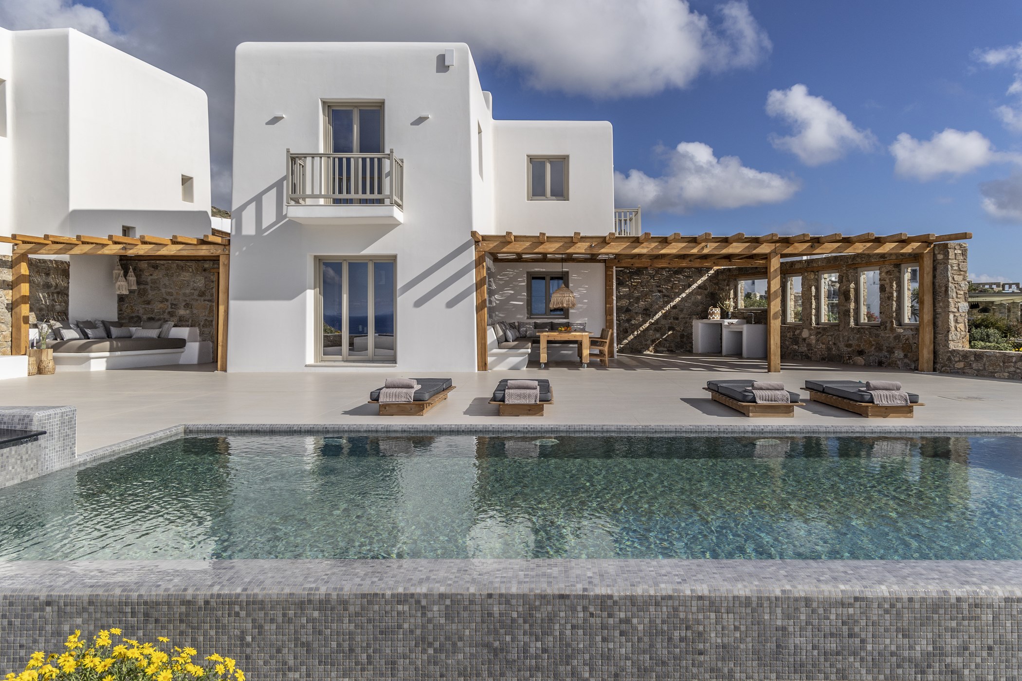 Indulge in the captivating allure of Mykonos at this Brand New Villa for Easy Living. Nestled in the scenic Kalo Livadi area, this residence offers a luxurious retreat for relaxation and enjoyment. Featuring three exquisite bedrooms with ensuite bathrooms, the villa ensures a comfortable stay. The unobstructed view from each bedroom adds to the allure, creating a serene and captivating atmosphere. The careful selection of details, including natural materials and earthly tones, infuses the villa with a rustic touch. Combining modern amenities with a vintage aesthetic, this villa provides the perfect setting to experience the enchantment of Mykonos.