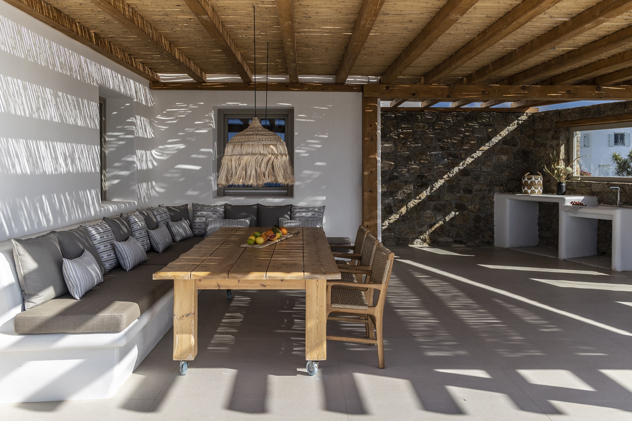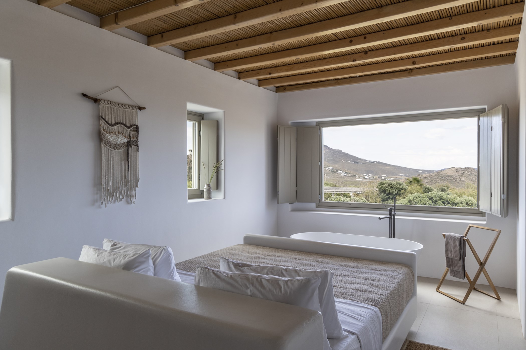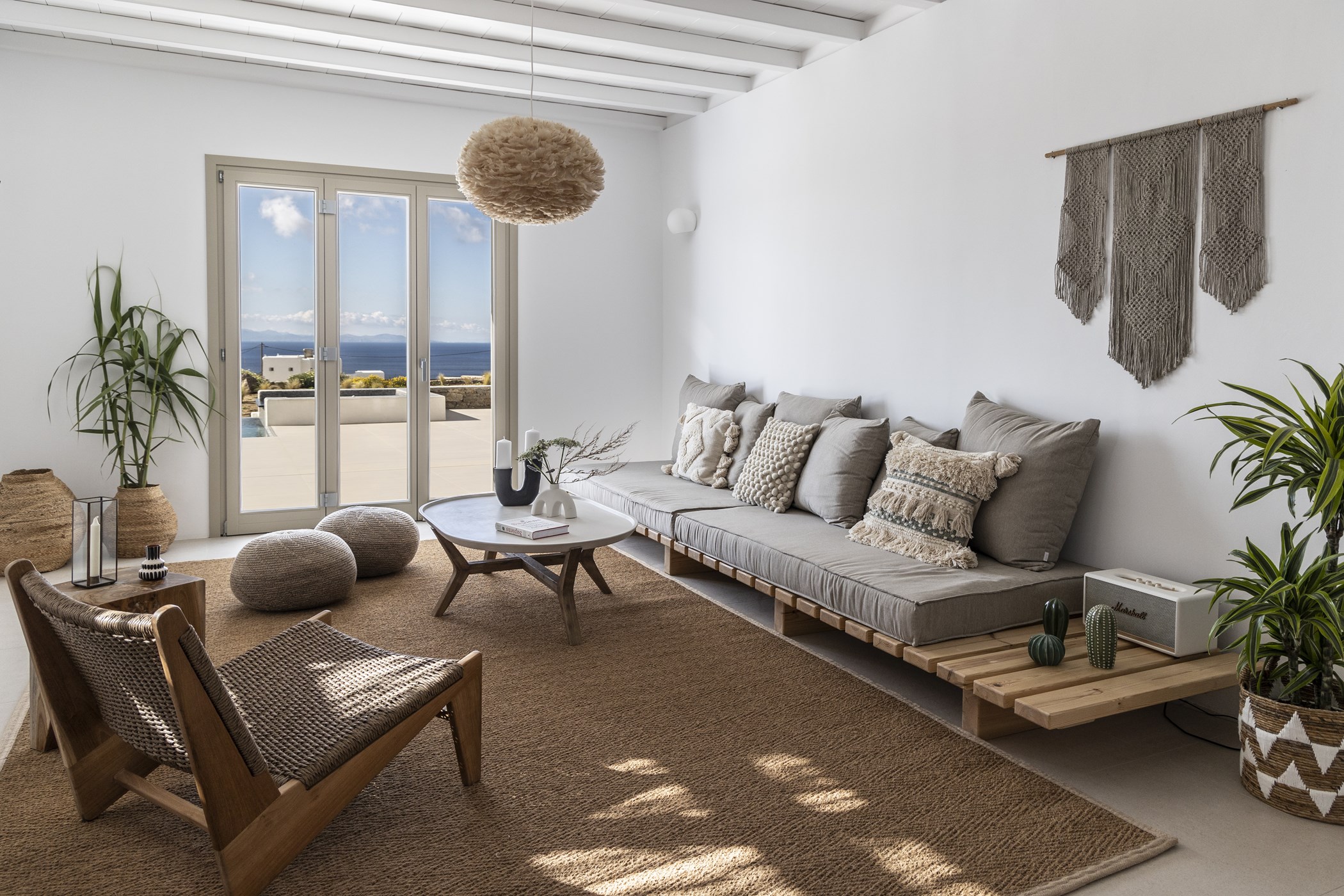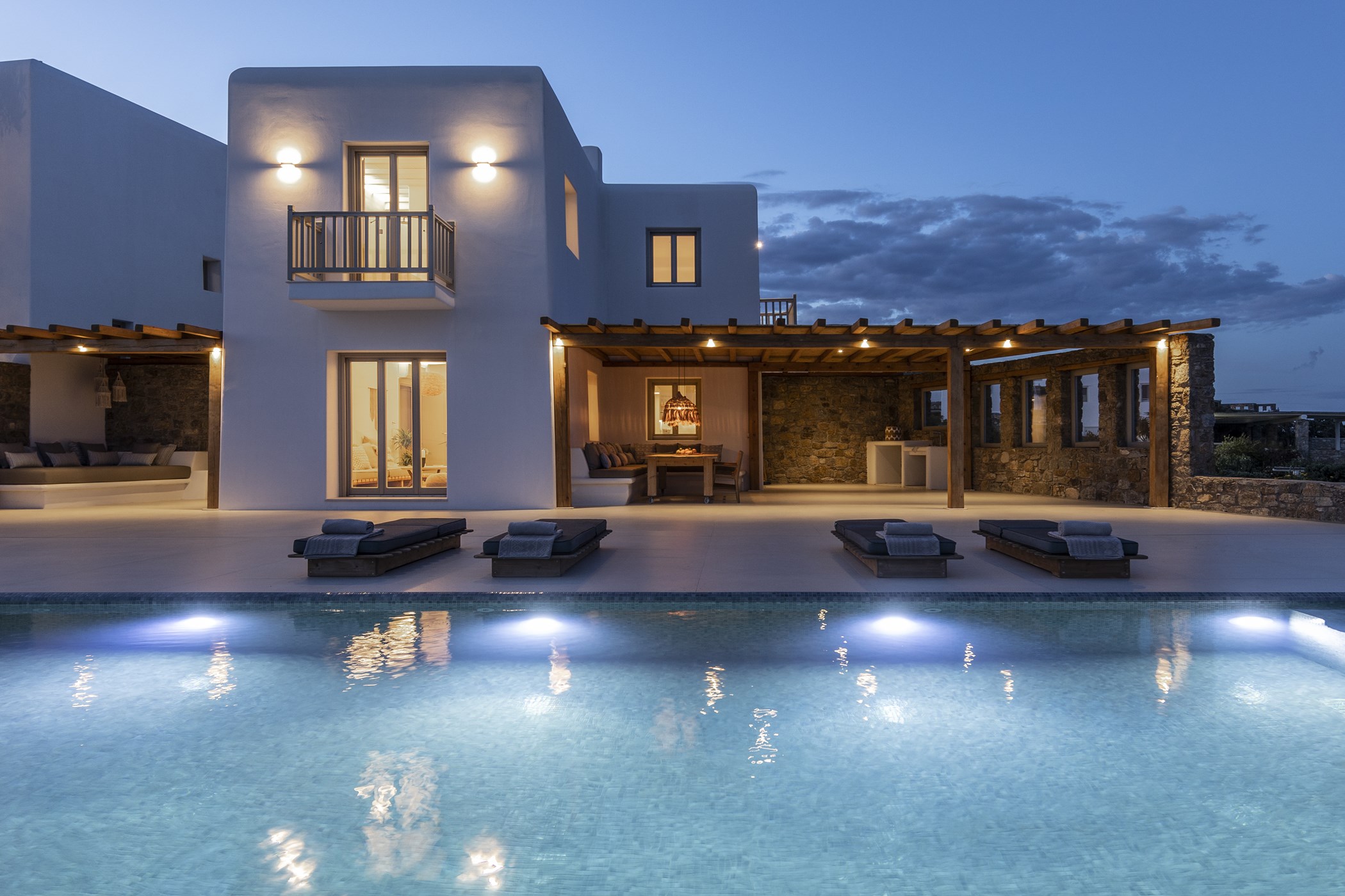 Indulge in the captivating allure of Mykonos at this Brand New Villa for Easy Living. Nestled in the scenic Kalo Livadi area, this residence offers a luxurious retreat for relaxation and enjoyment. Featuring three exquisite bedrooms with ensuite bathrooms, the villa ensures a comfortable stay. The unobstructed view from each bedroom adds to the allure, creating a serene and captivating atmosphere. The careful selection of details, including natural materials and earthly tones, infuses the villa with a rustic touch. Combining modern amenities with a vintage aesthetic, this villa provides the perfect setting to experience the enchantment of Mykonos.
