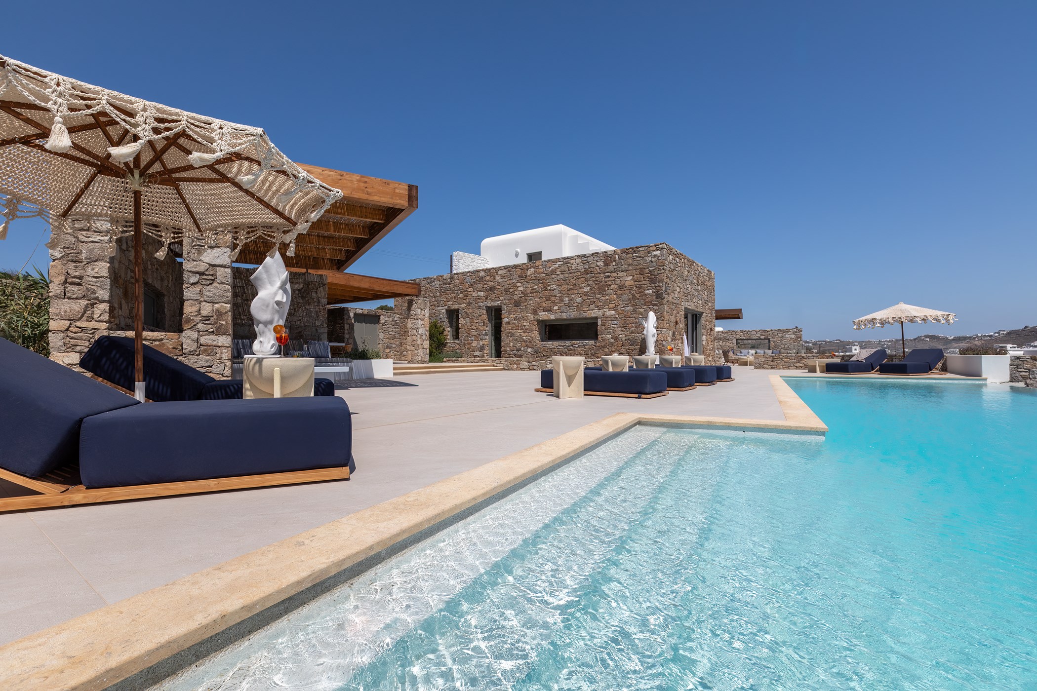 Introducing a pristine Villa, nestled moments from the tranquil Aegean Sea in the southern west area of Mykonos.