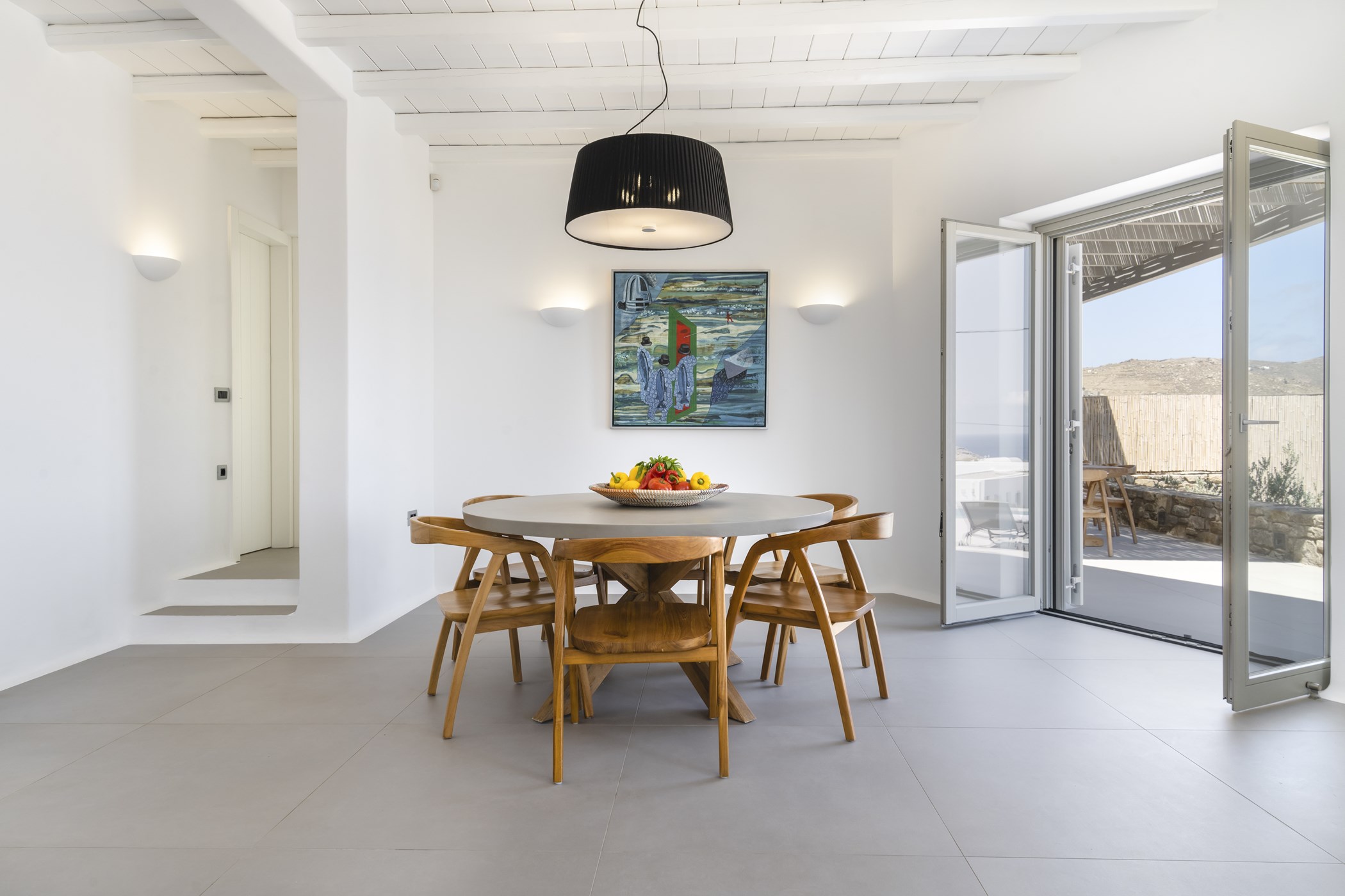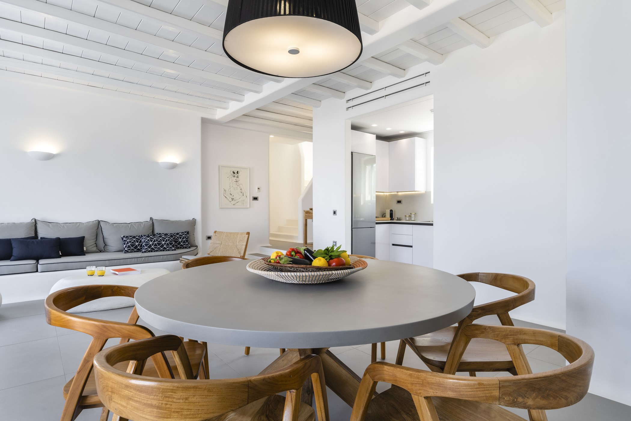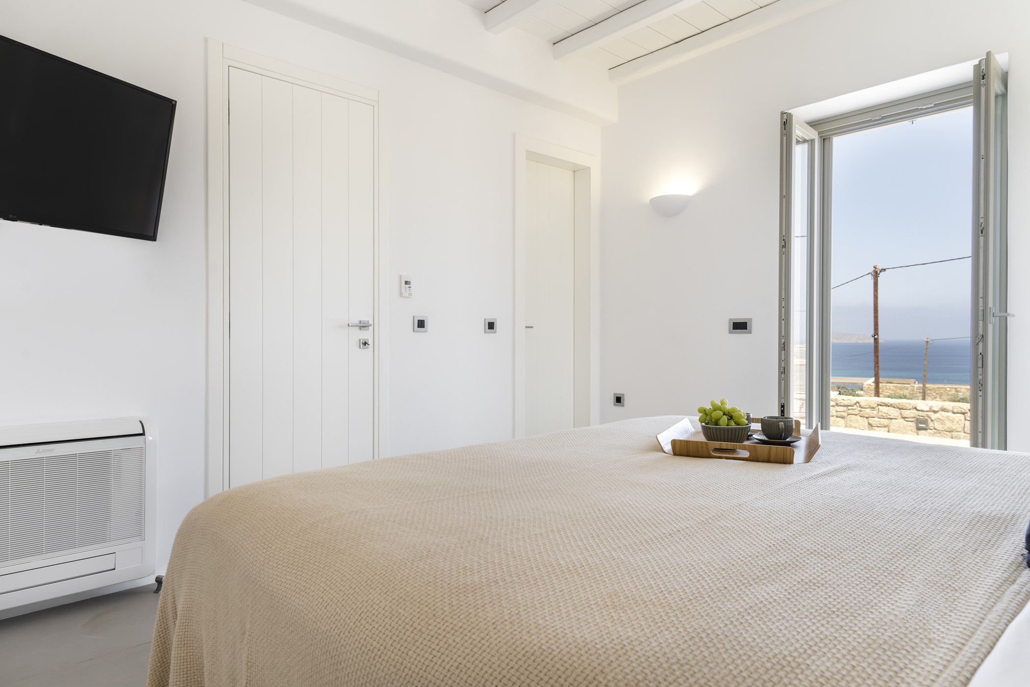 Step inside the beautiful home to discover three double bedrooms, two of them en-suite, providing a comfortable retreat for up to 6 guests. The interiors boast an elegant fusion of contemporary decor with minimalist accents. Enjoy the bright living room and dining area, both offering stunning sea views, while the carefully curated details in the bedrooms evoke an atmosphere of refined elegance and comfort.