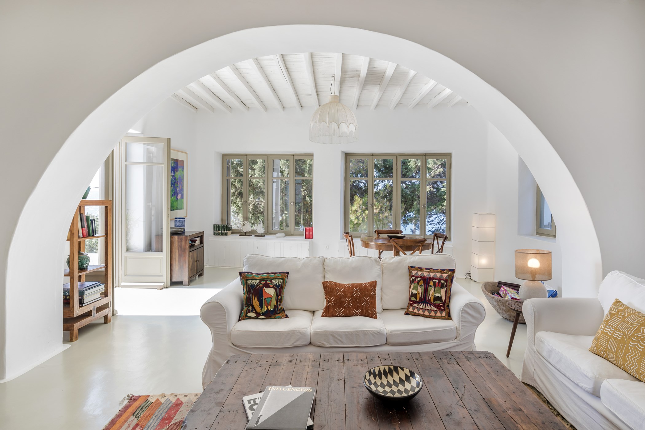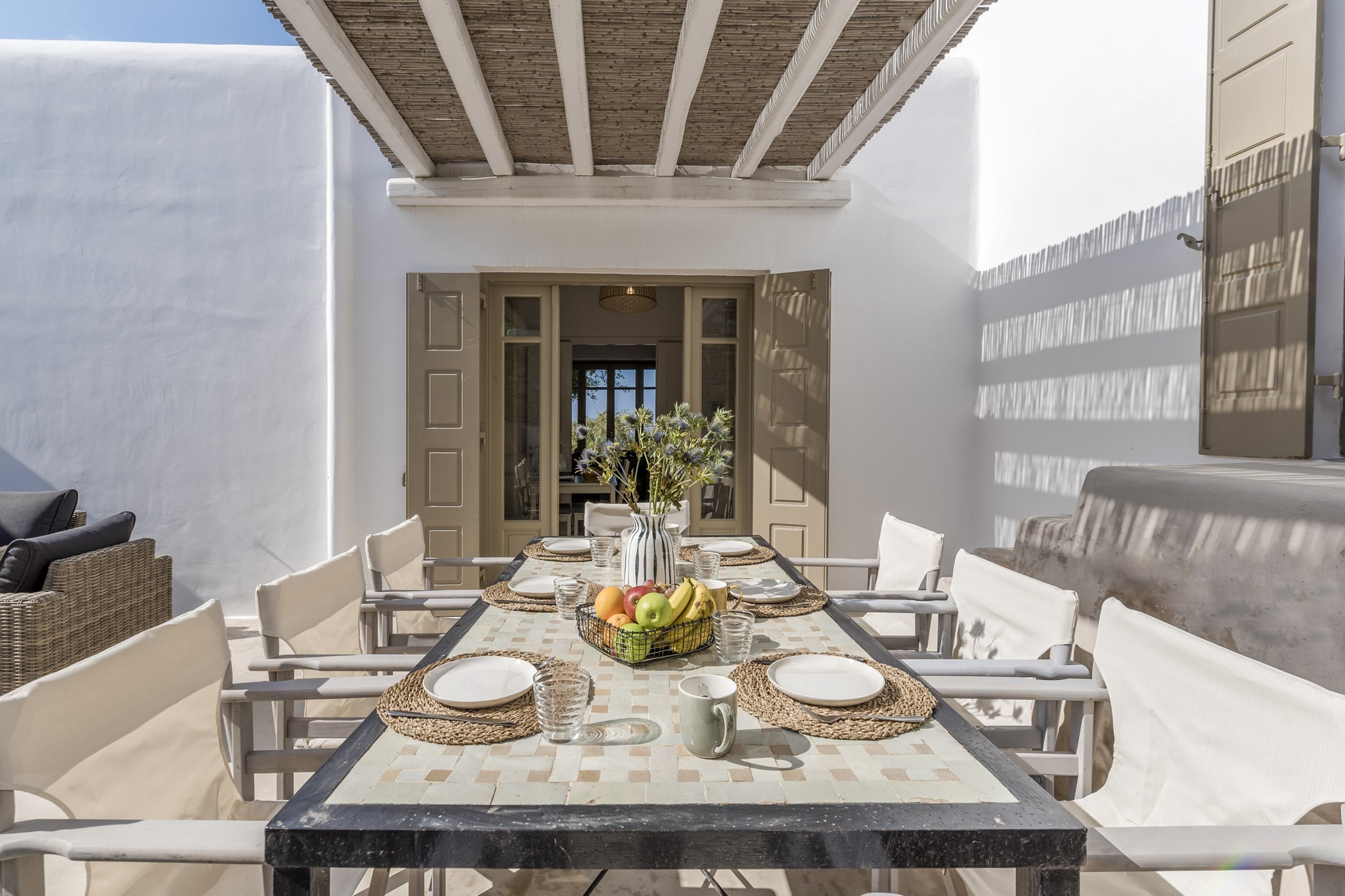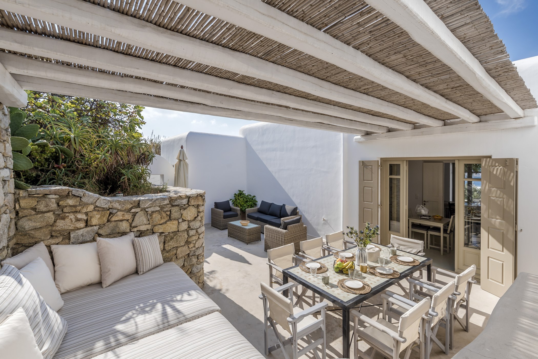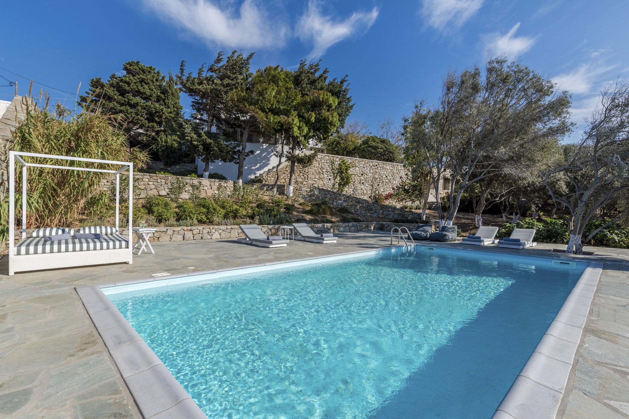 Featuring four en-suite bedrooms, the cosy private home accommodates up to eight guests with an elegant bohemian interior boasting clean lines. The bright living room and spacious bedrooms are adorned with carefully selected details for both style and comfort. Step outside to the pool area, situated on a separate level surrounded by well-maintained gardens and inviting lounge spaces. Whether sunbathing or seeking shade under the pergola, Villa Downtown invites you to experience Mykonos in a luxurious and relaxed ambiance.