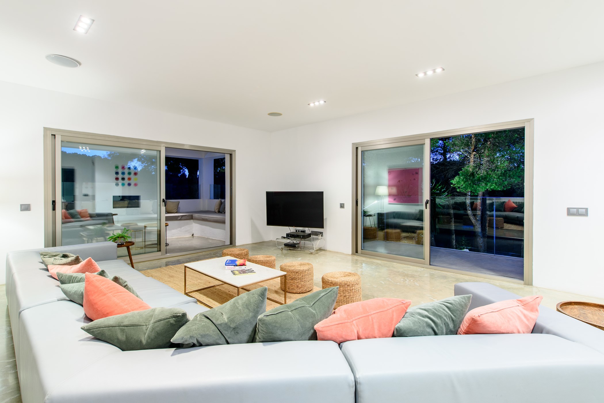 Villa Eliana is an impressive, modern villa with fabulous panoramic views over the local countryside, down to the sea and revelling in the world famous Ibizan sunsets. This stunning minimalist style 6 bedroom property is located in the hills next to the village of San Agustin, just a short few minutes drive from the charming village of San Jose and a with easy access by car to the airport and Ibiza Town..