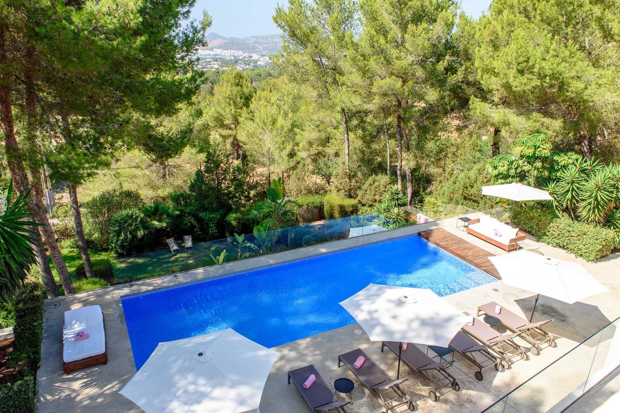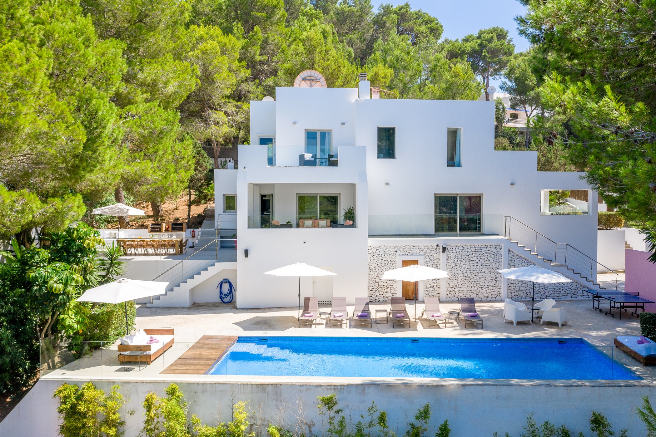 Villa Eliana provides you with six bedrooms: two master suites, a double bedroom and three twin rooms, making this an ideal property for families of groups of friends. Each bedroom is decorated to a high standard with tasteful artworks and high quality linens.