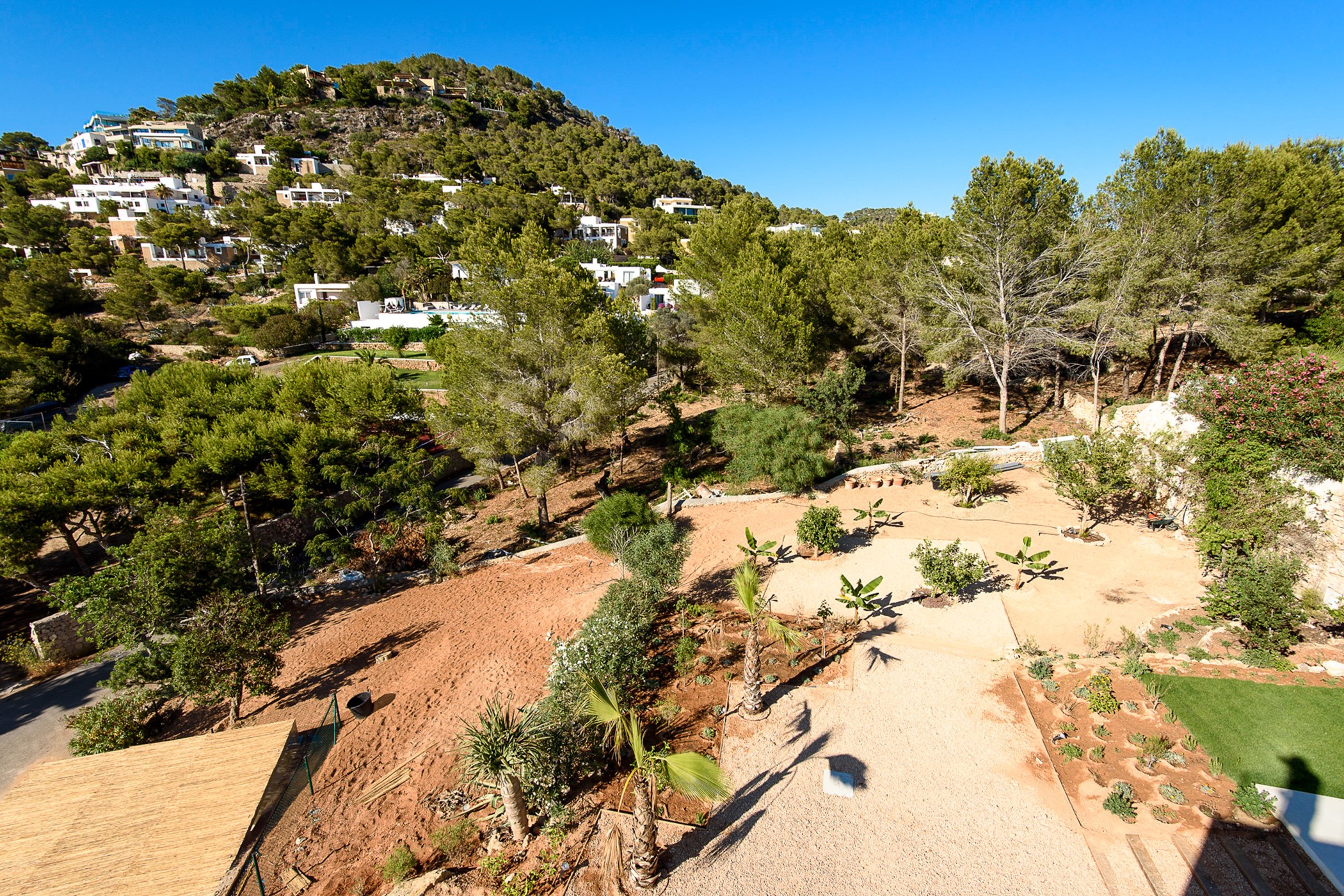 The third floor, in addition to the quiet office working area, has its own Skybar and 360 ° rooftop terrace, which rewards its visitors with stunning day and night views of the glittering ocean, the old town of Ibiza and the mountains of Cap Martinet. You can find within walking distance the beach of Talamanca, the Pacha Beach Resort Destino and some of the top restaurants of the island like Sa Punta, Patchwork, Ginger or Nobu. By car, it’s less than five minutes to Ibiza Town anyway. Private parking, a fully equipped kitchen, 400 m2 of living space and a security service bound alarm system are among the other amenities. A brilliant location, paired with such a view is also for gorgeous Ibiza a rarity and makes Villa Equis the perfect holiday home for your Ibiza trip.
