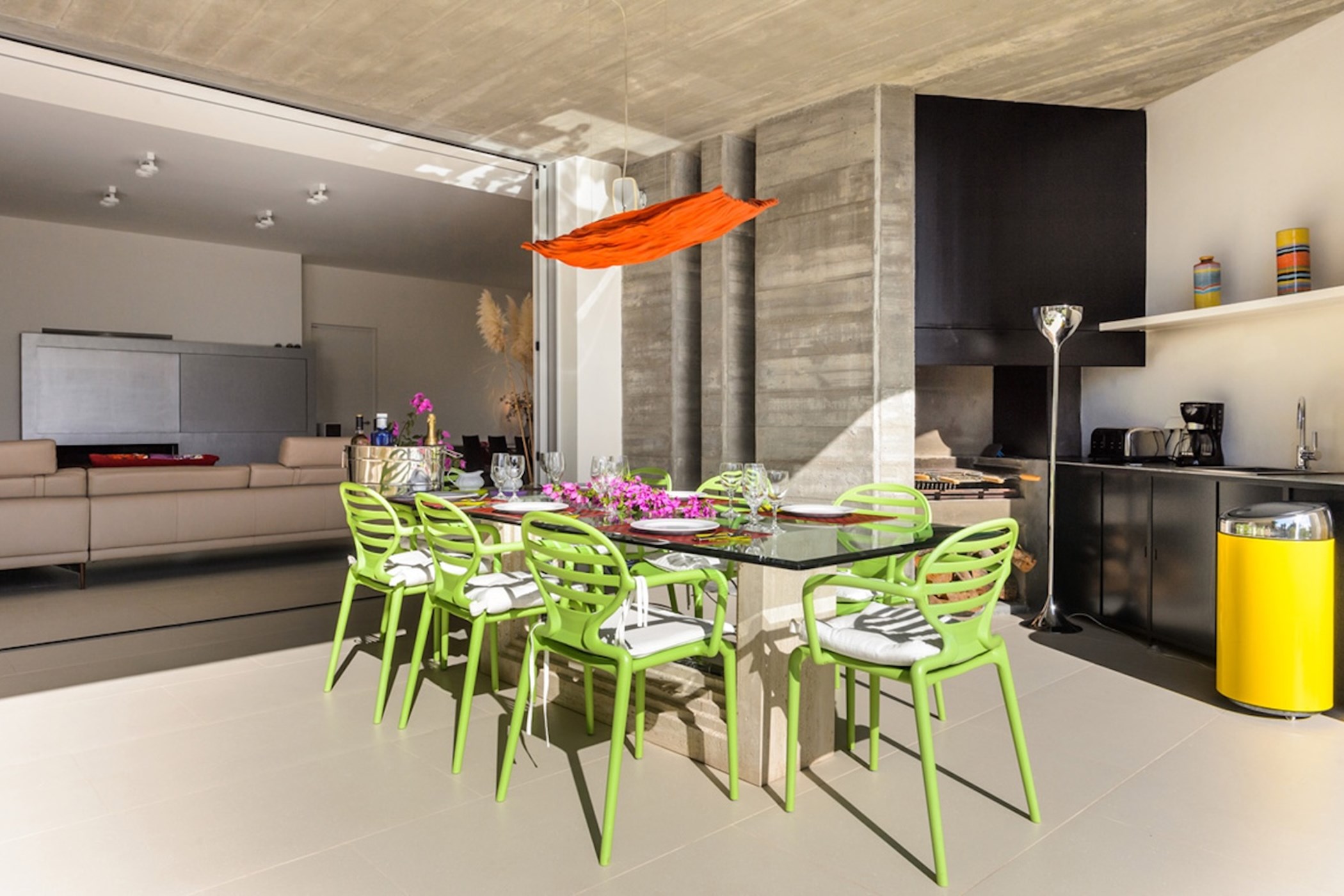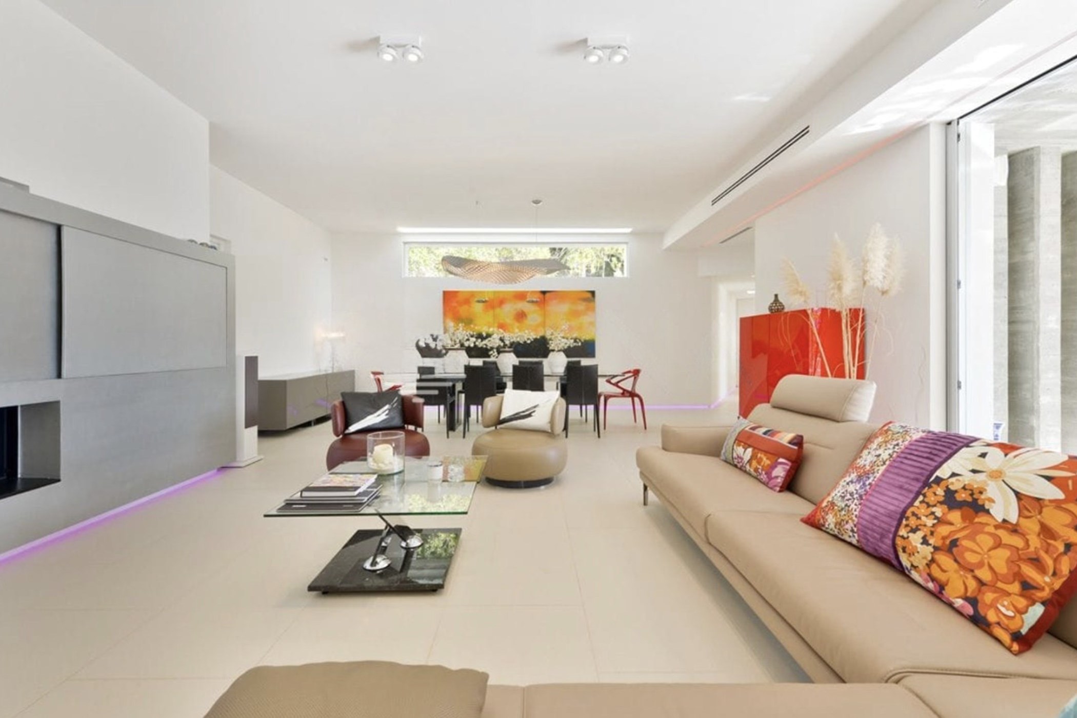 Inside, the villa features a fully equipped, high-end kitchen adorned with furnishings by Roche Bobois, opening to outdoor dining terraces and BBQ facilities perfect for al fresco gatherings. Spacious indoor and outdoor lounge areas invite relaxation, while underfloor heating, air conditioning, and a state-of-the-art Sonos music system enhance comfort and convenience.