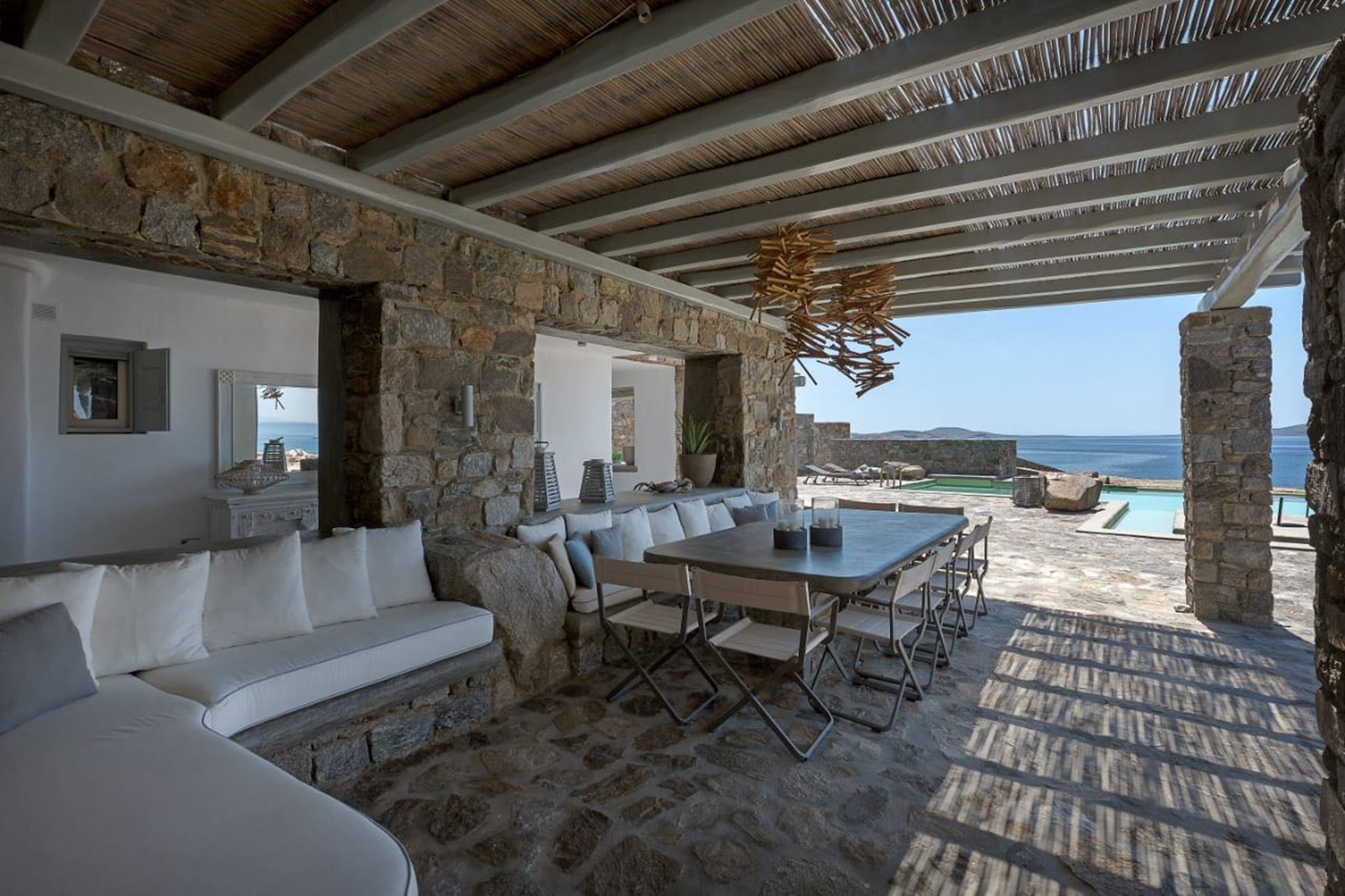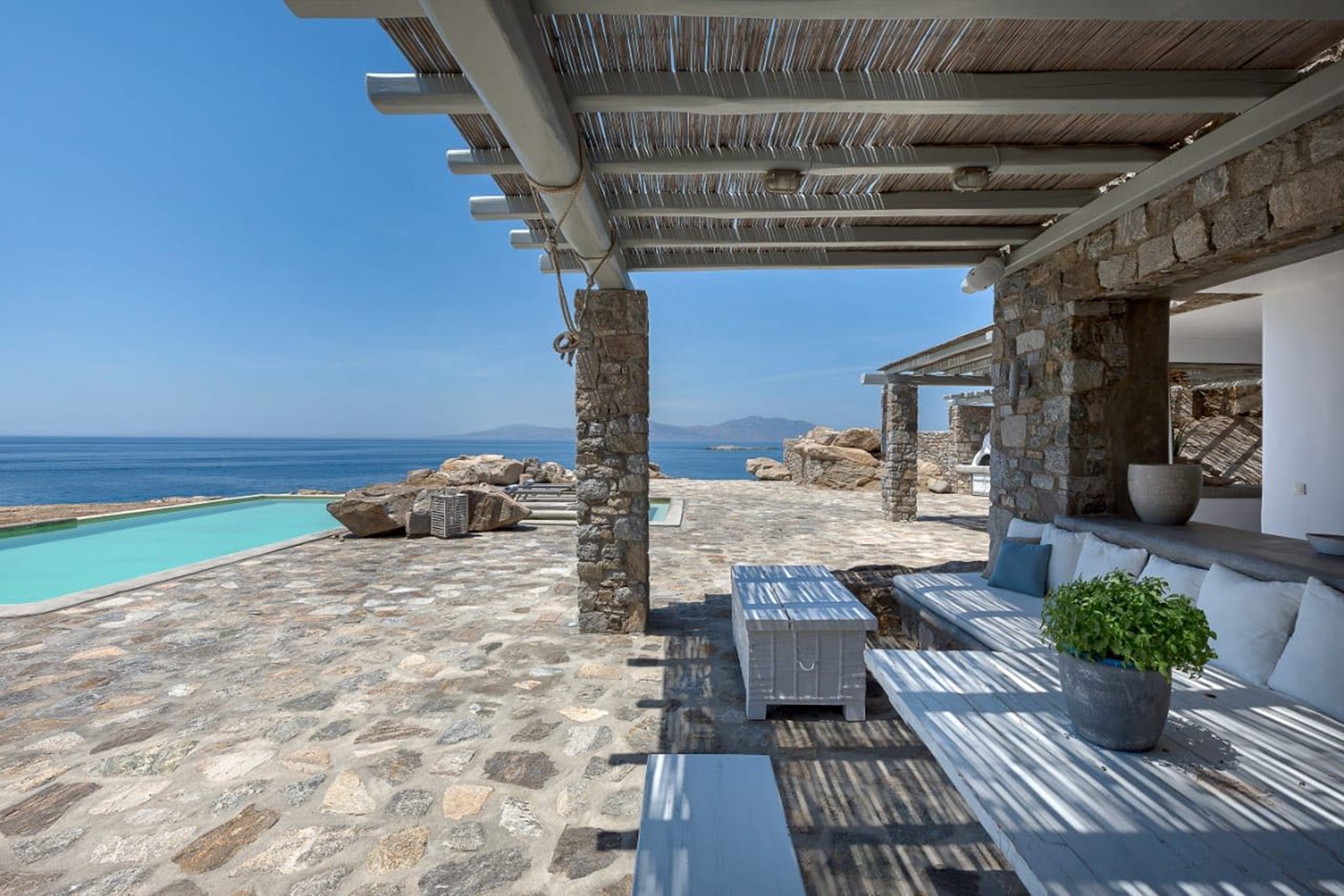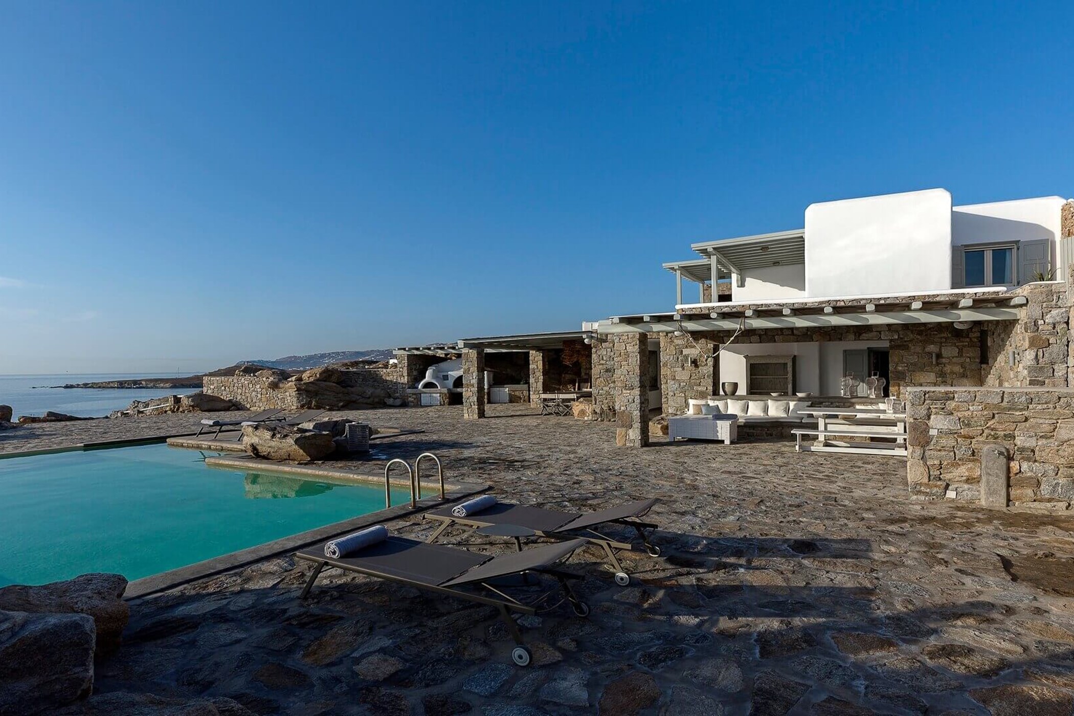 From the exclusive platform leading to the sea to the strategically placed bedrooms. Guests will surely enjoy their stay both indoors and outdoors during their holiday retreat in Mykonos witnessing everyday tremendously beautiful sunsets and the incredible panoramic views of the sapphire Aegean Sea.