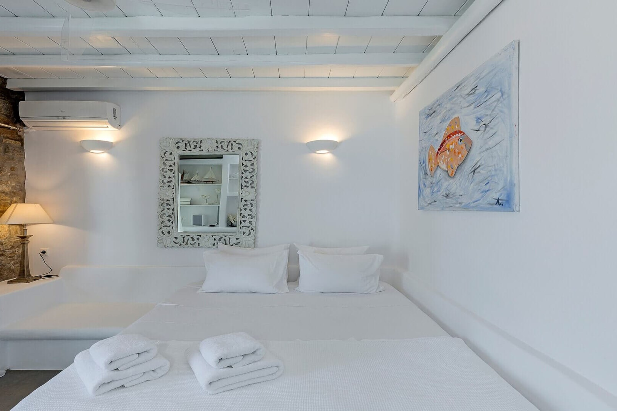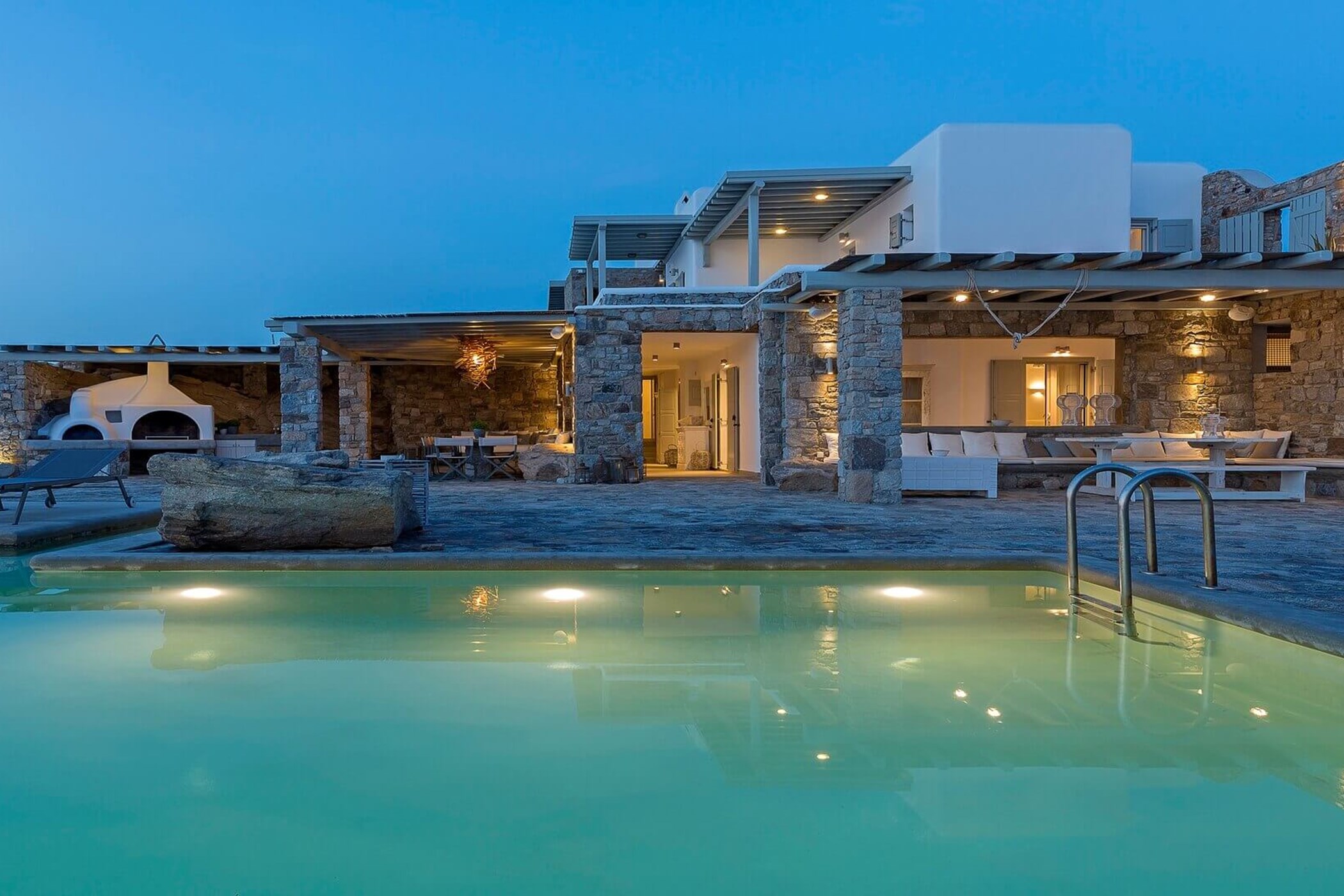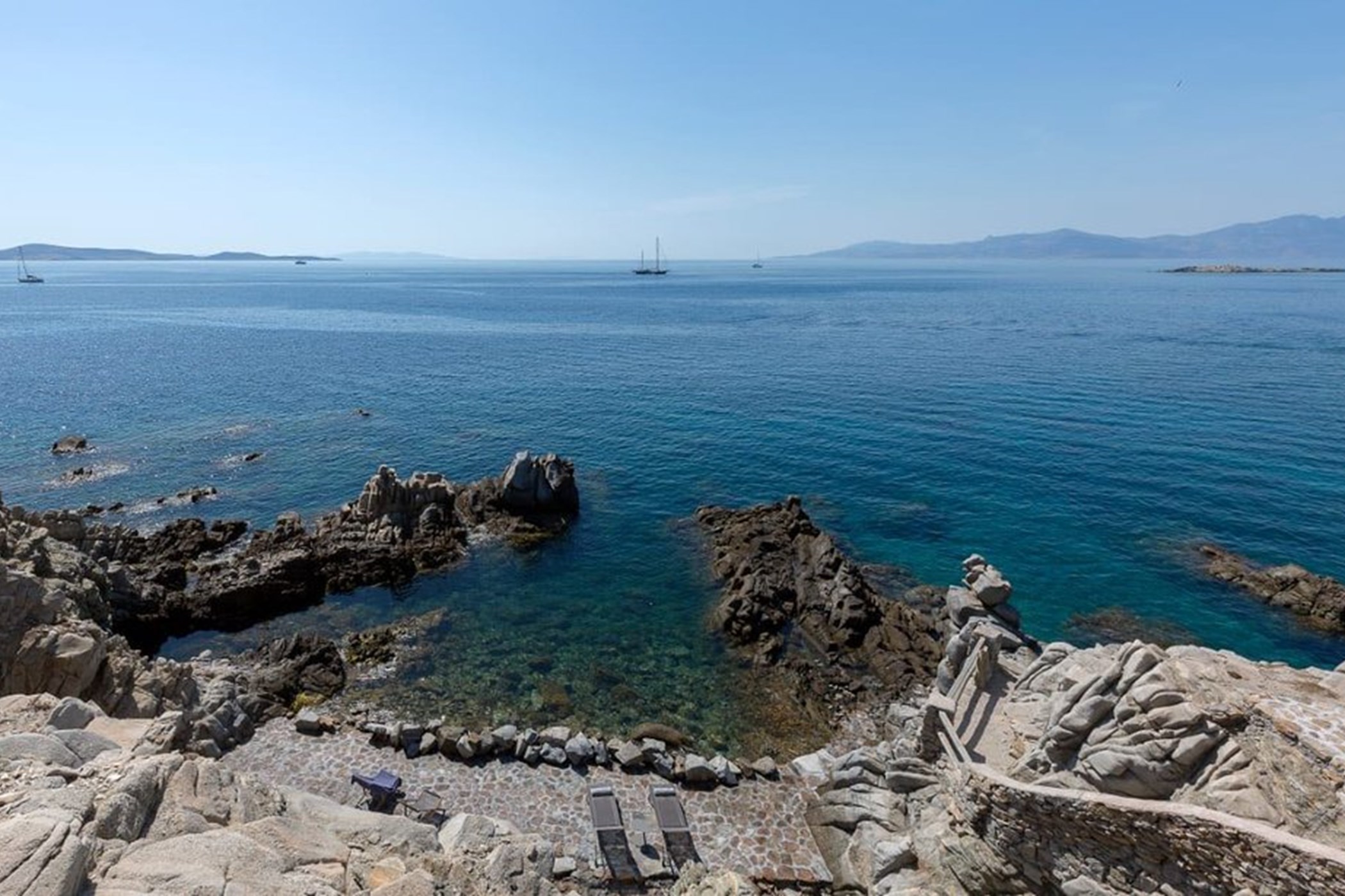 From the exclusive platform leading to the sea to the strategically placed bedrooms. Guests will surely enjoy their stay both indoors and outdoors during their holiday retreat in Mykonos witnessing everyday tremendously beautiful sunsets and the incredible panoramic views of the sapphire Aegean Sea.