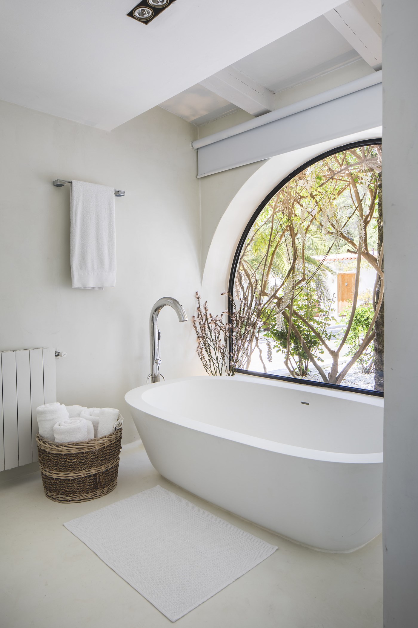 The villa consists of the main house and a separate guest house, with four pristine bedrooms in the former, each with a luxurious en-suite, and two large bedrooms in the latter that share a fully-equipped bathroom. Guests can also take advantage of the light-filled gym, which comes equipped with a range of exercise equipment.