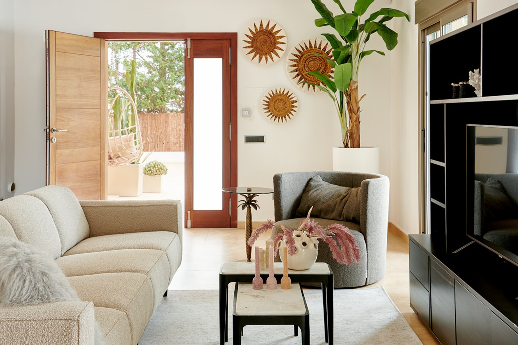 Perfectly formed for a small family or two couples, this beautiful villa offers surprisingly spacious living space in which to stretch out and enjoy the Ibizan sun. It is perfectly positioned too; just a ten-minute stroll from the white sands of Talamanca beach and a five-minute drive from the sights and sound of Ibiza Town. Even closer are the bars and restaurants of Marina Botafoch.