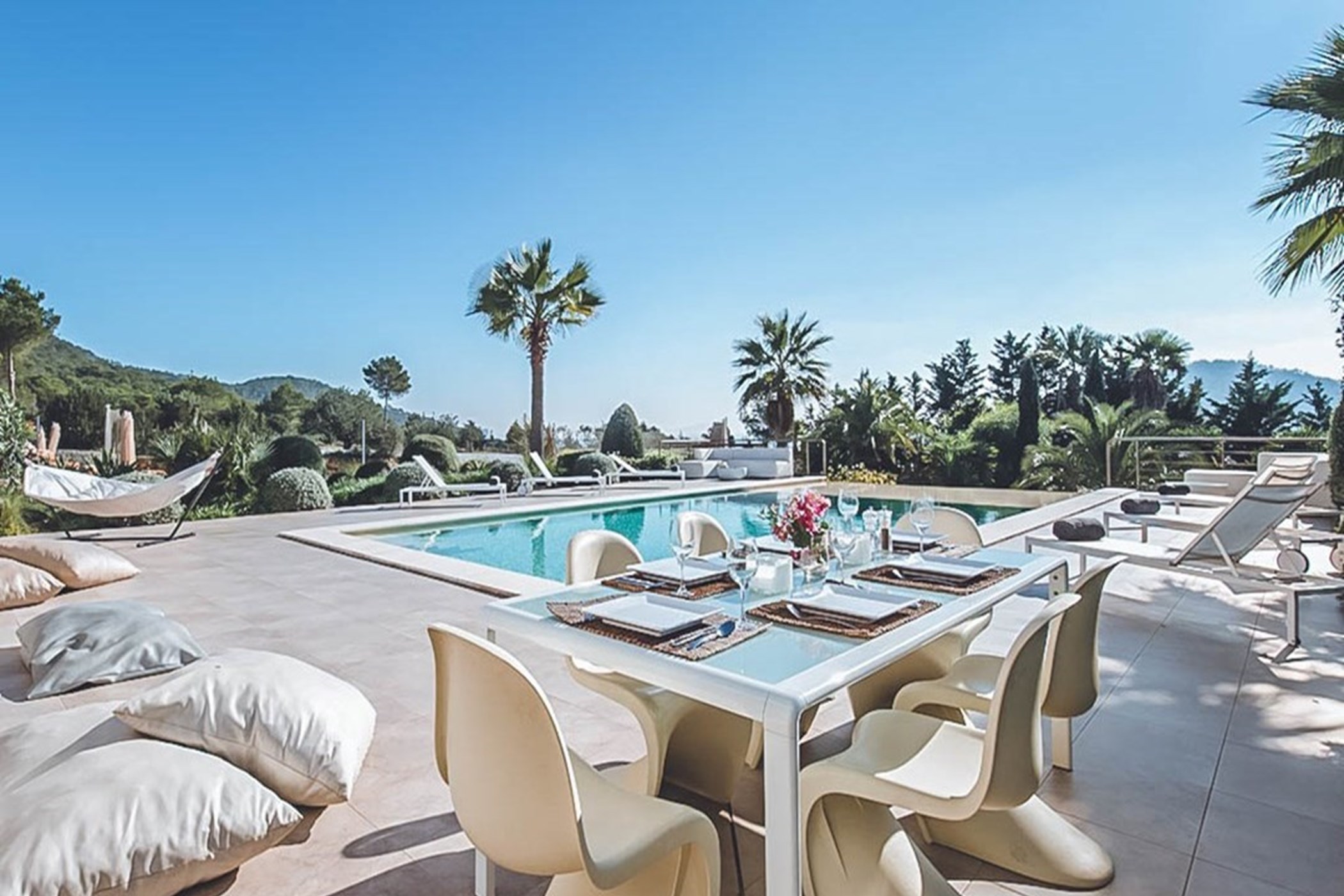 Step outside and spend a long lazy day soaking up the healing rays of the Ibizan sunshine around the fabulous pool area, which is surrounded by ample luxurious sun loungers, with a large outdoor dining area complete with BBQ and an incredibly inviting and comfortable shaded chill-out area providing an ideal space to truly appreciate the sea views, relax and reflect after another idyllic day.