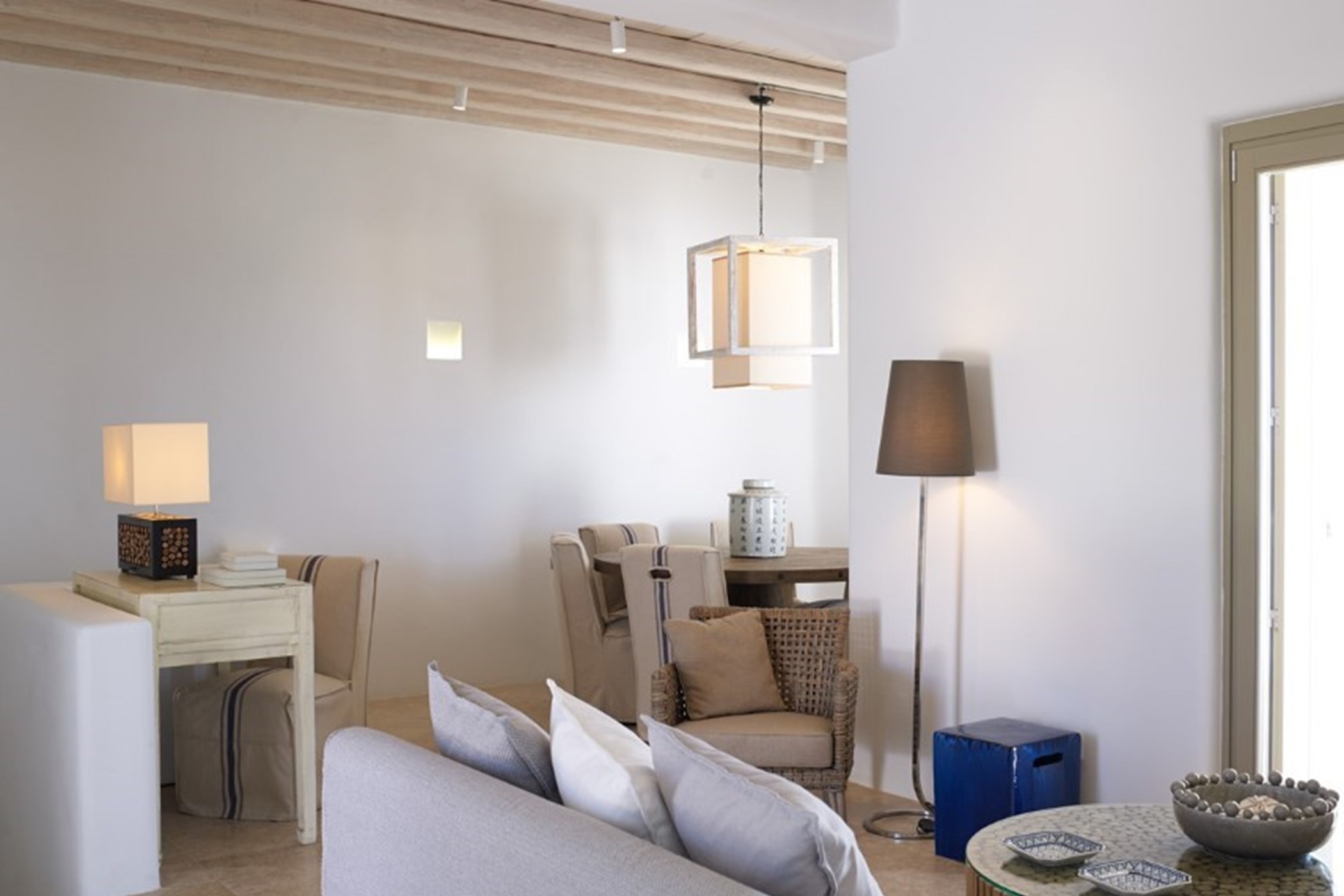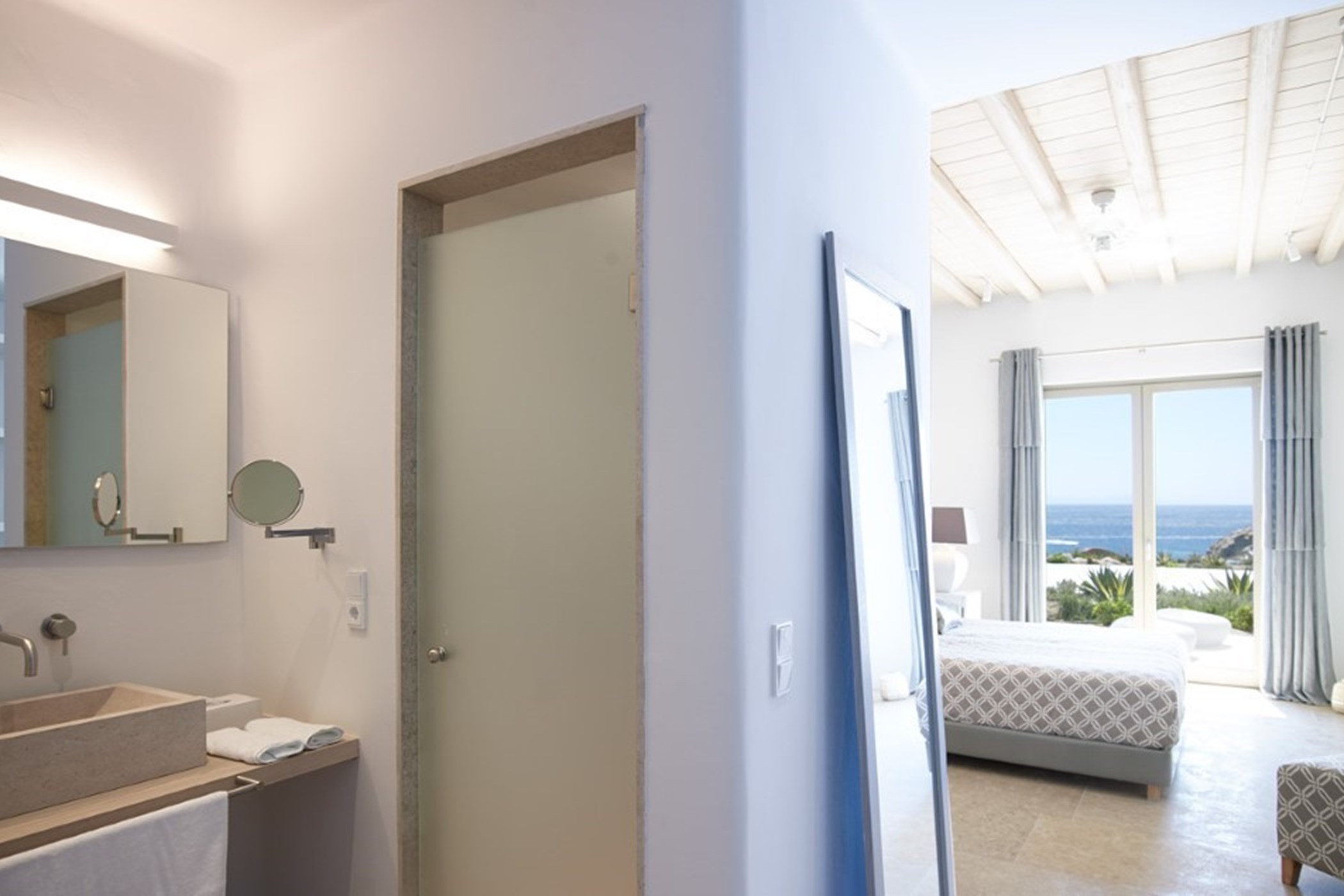 Villa Paris finds space as an astonishing private estate near its sister Villa Nice situated literally in between the beaches of Paranga and Paradise, both easily reachable from the estate. The waterfront location provides extensive views over the sea, all the way across to the neighbouring islands of Paros and Naxos, while the southwestern position of the property itself allows guests to be with reasonable distance from Mykonos Town and the most popular southern beaches of the island.