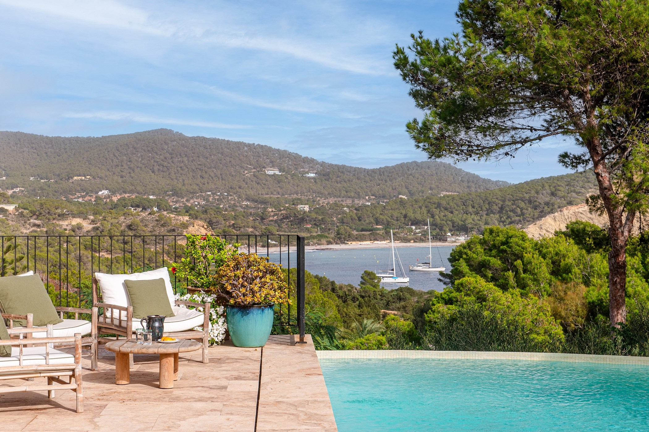 Villa Porroig Relax is beautiful 4 bedroom beautifully designed modern luxury villa with sensational sea views on the peninsular of Porroig – one of the most exclusive areas of Ibiza. Located in the so called Golden Triangle, you are close to the equally charming villages of Es Cubells and San Jose, and just a short distance from the bay of Cala Jondal, home to the world famous Blue Marlin beachclub. And of course, the dazzling lights of Ibiza Town and Marina Botafoch, home to the islands most glamourous nightlife and dining destinations.