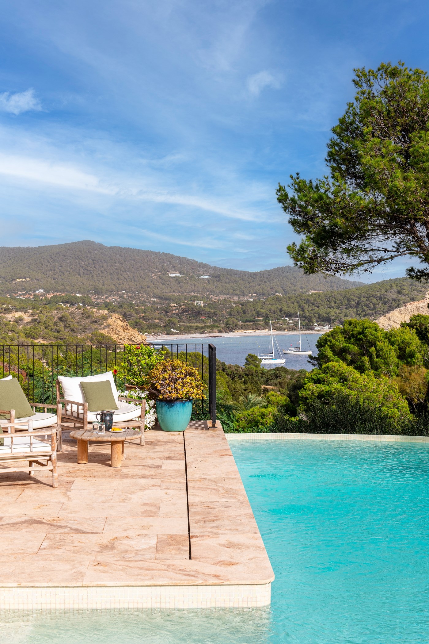Villa Porroig Relax features a fabulous roof terrace where you can spend long lazy evenings under the stars admiring the truly sensational views with eh luxury of your own private bar and chillout area. The heated infinity pool is supremely inviting and the perfect place to relax and reflect, surrounded by sundecks and shaded areas. Entertain friends and family in this elegant home and enjoy the perfect Ibizan experience.
