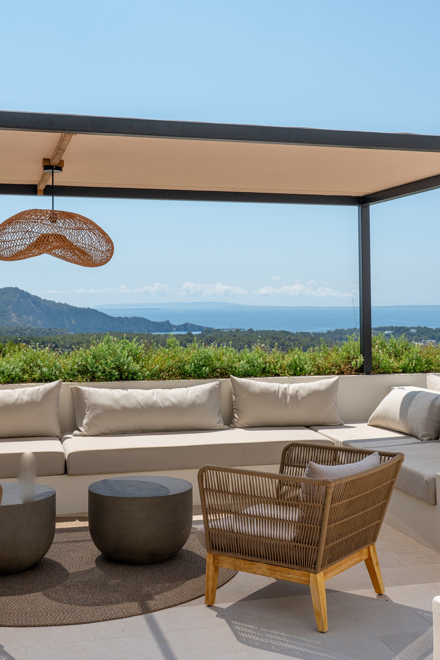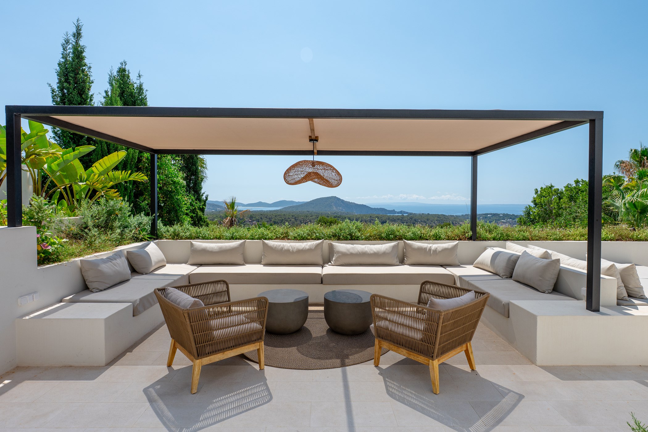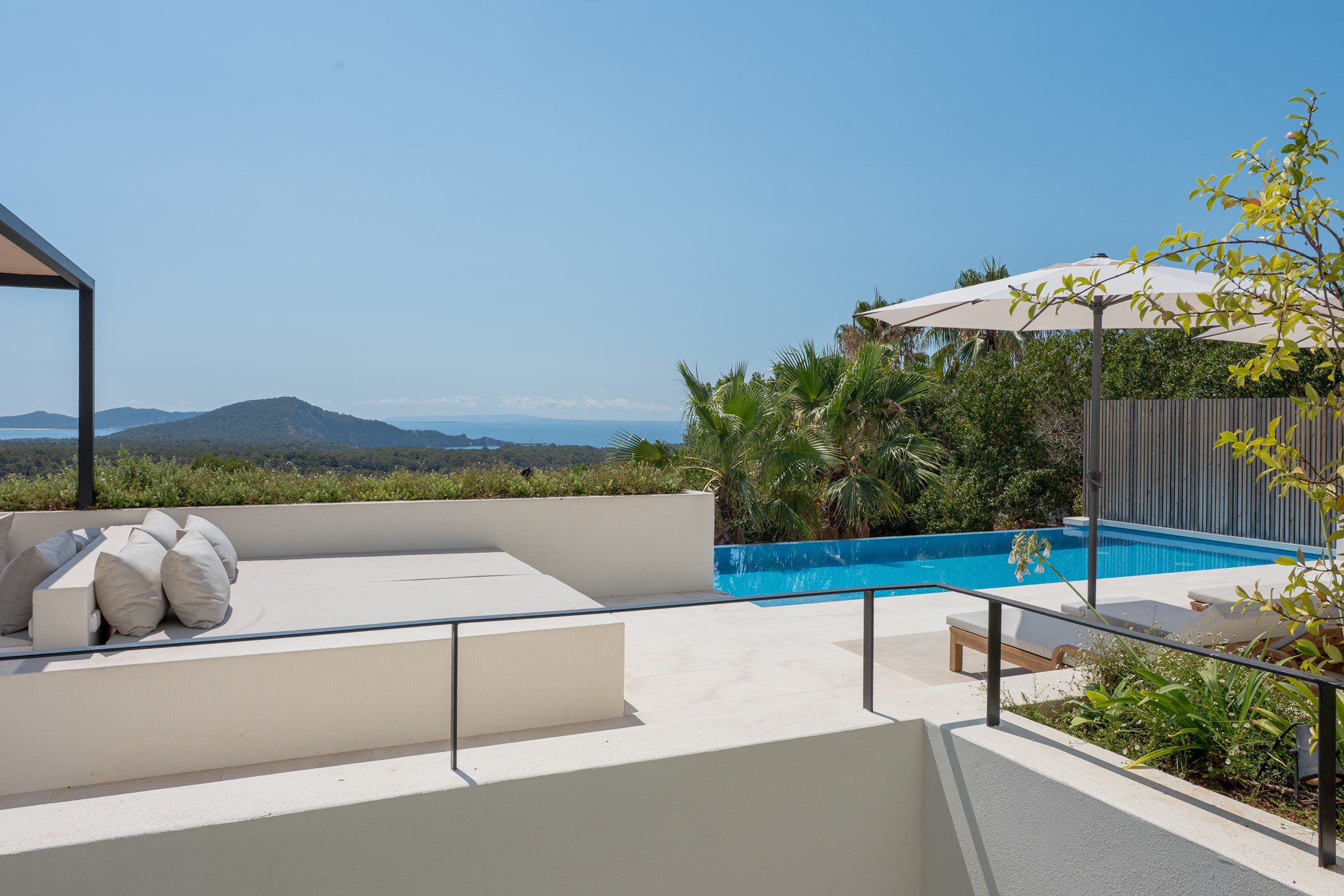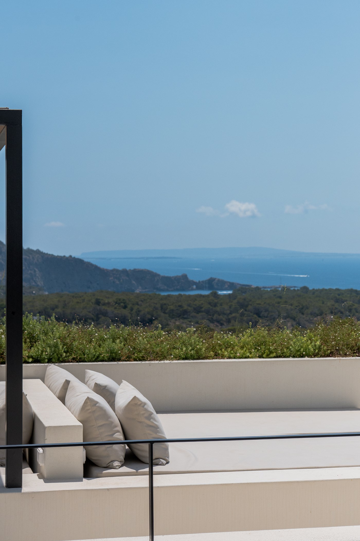 Outside, the house enjoys uninterrupted views of Formentera and sunshine from morning to evening. Whether by the inviting swimming pool, stretched out on a sunbed, or gazing at the horizon, every moment spent here carries a sense of serenity and well-being. Thoughtfully designed to provide comfort, privacy, and convivial spaces, the villa is perfect for family holidays or entertaining friends. It is a home where you feel instantly at ease, a timeless retreat embraced by the natural beauty of Ibiza.