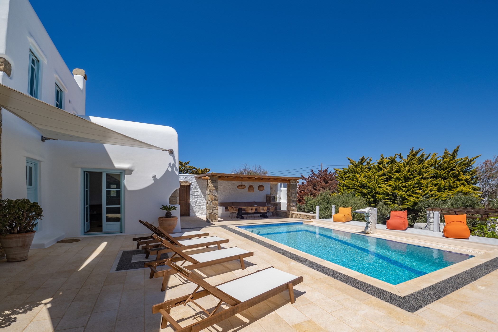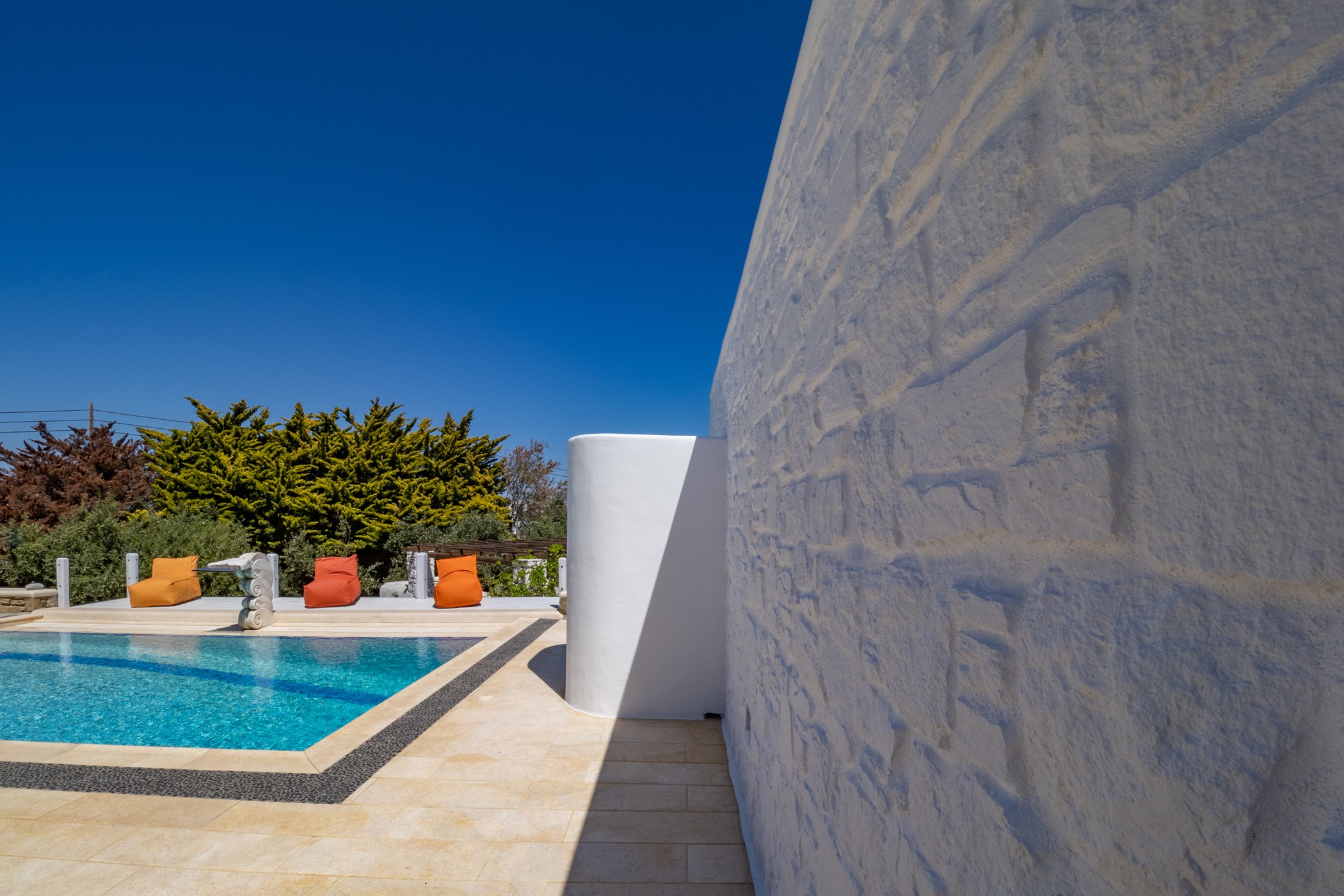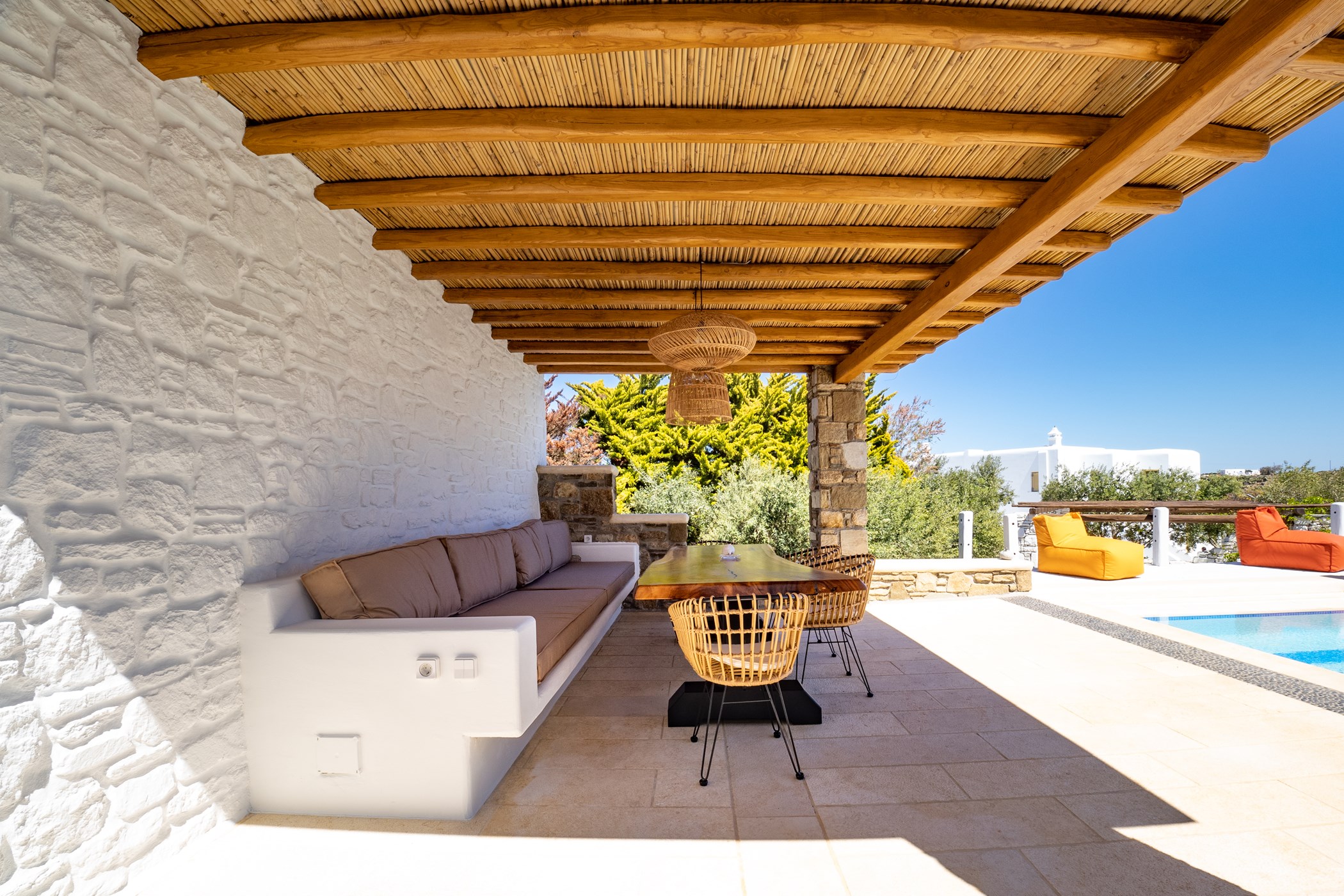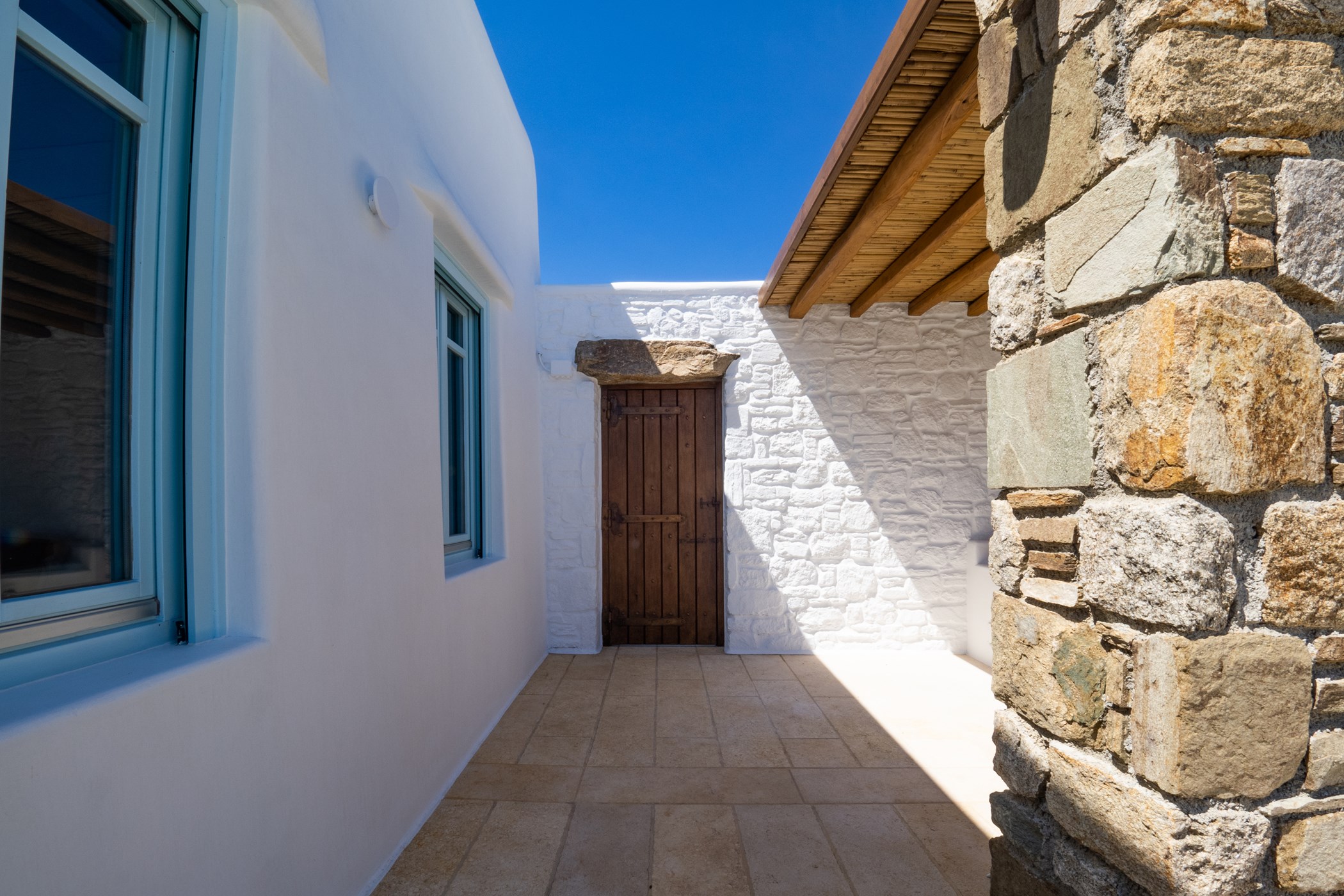 Villa Urania es una propiedad nueva ubicada a 1 kilómetro de distancia de una de las playas más aisladas de Mykonos. Forma parte de un complejo de dos villas privadas y se convierte en tu refugio de verano favorito en la isla. La villa tiene 2 habitaciones con baño privado y puede acomodar cómodamente hasta 4 invitados. Está dividida en dos secciones: el piso inferior que incluye un salón acogedor, una cocina abierta plana, WC y una habitación con baño privado. También hay acceso directo a la pergola, exterior lounge y área de comidas. El piso superior cuenta con una habitación principal con baño privado y balcón con vista al gran pozo de agua.