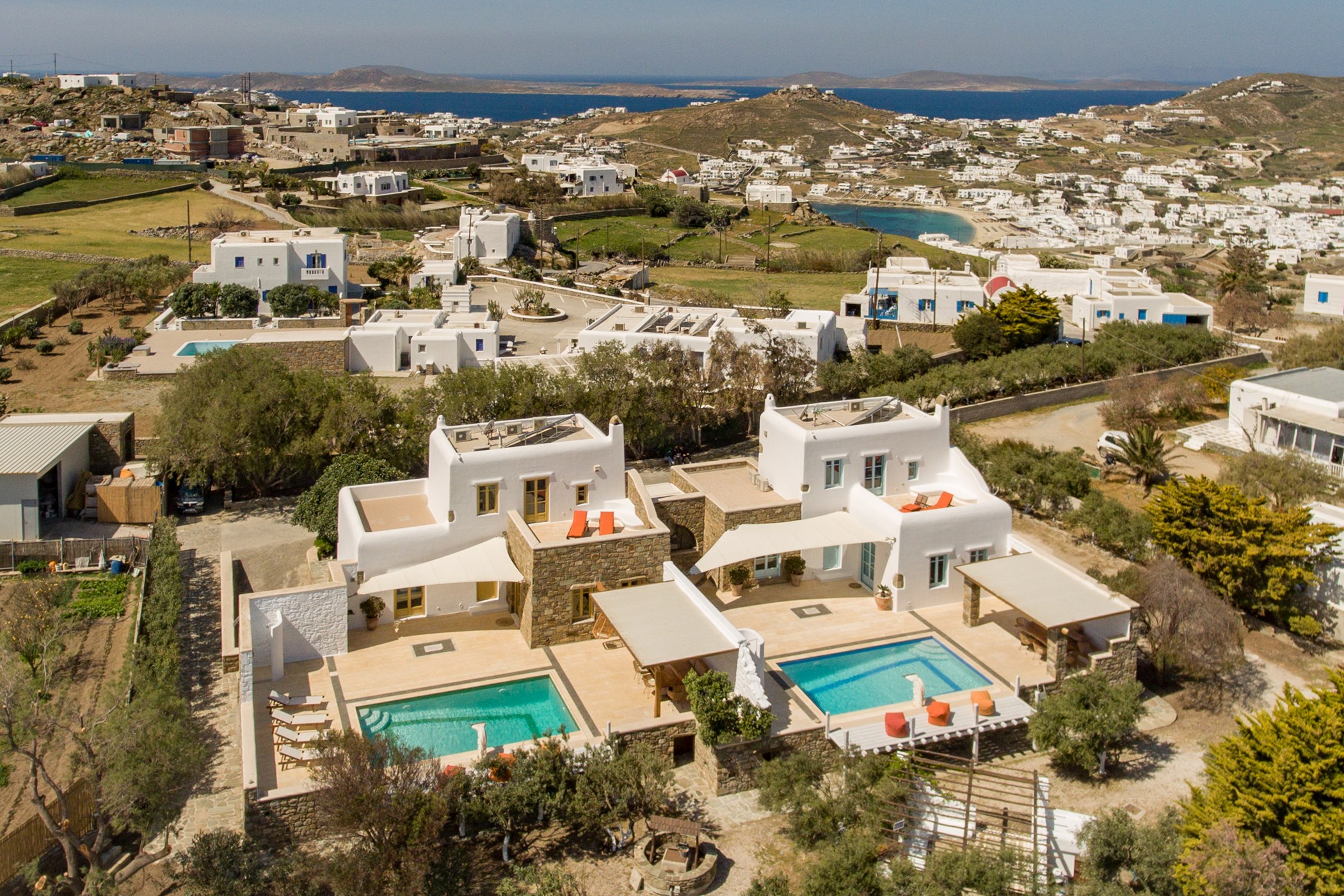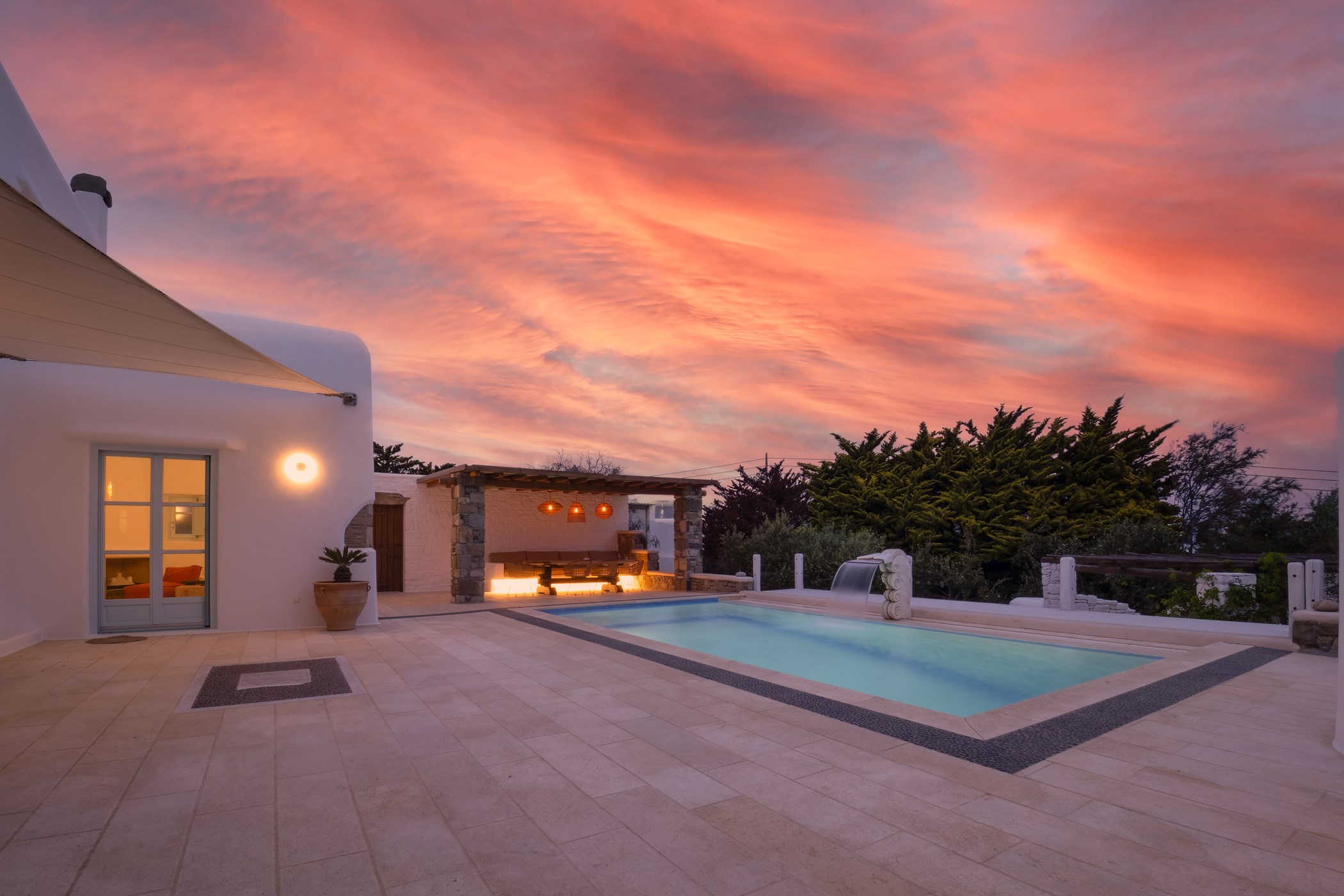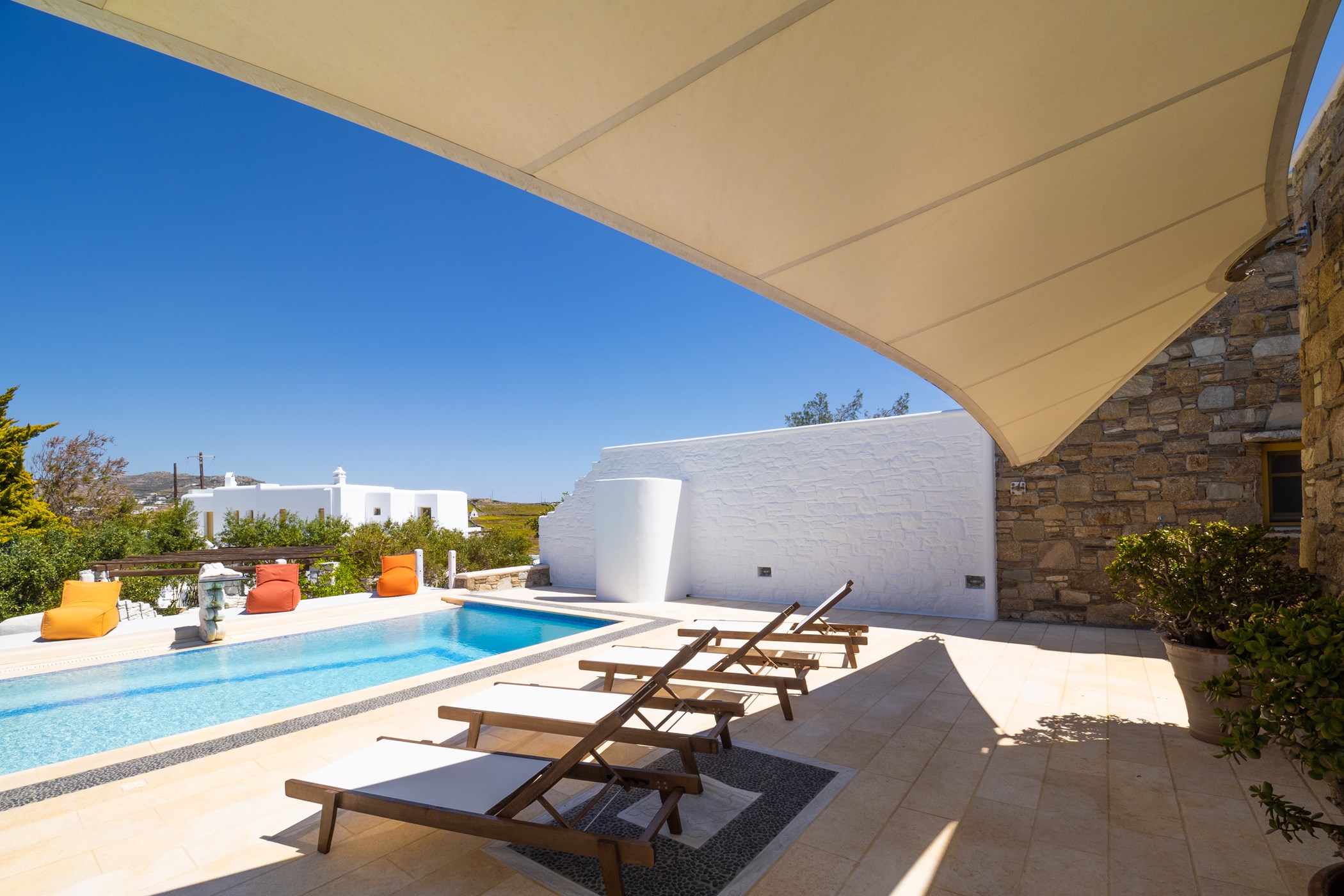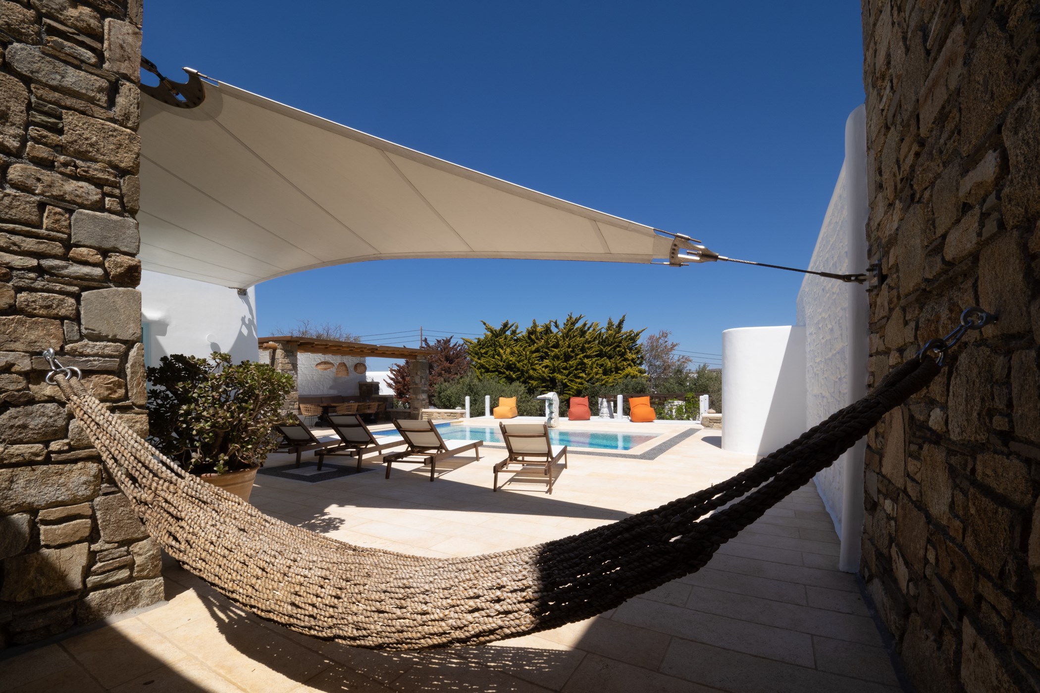 Villa Urania es una propiedad nueva ubicada a 1 kilómetro de distancia de una de las playas más aisladas de Mykonos. Forma parte de un complejo de dos villas privadas y se convierte en tu refugio de verano favorito en la isla. La villa tiene 2 habitaciones con baño privado y puede acomodar cómodamente hasta 4 invitados. Está dividida en dos secciones: el piso inferior que incluye un salón acogedor, una cocina abierta plana, WC y una habitación con baño privado. También hay acceso directo a la pergola, exterior lounge y área de comidas. El piso superior cuenta con una habitación principal con baño privado y balcón con vista al gran pozo de agua.