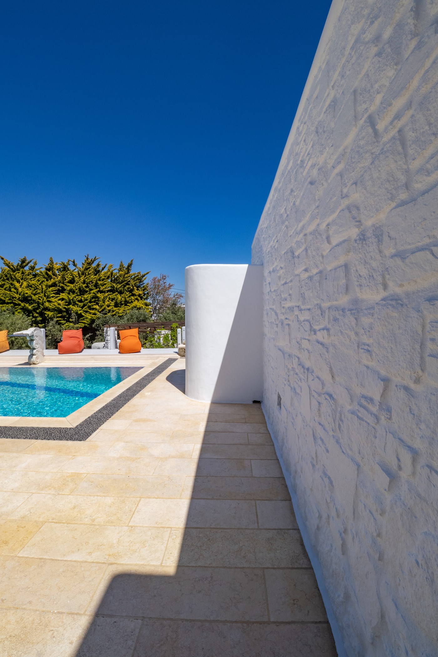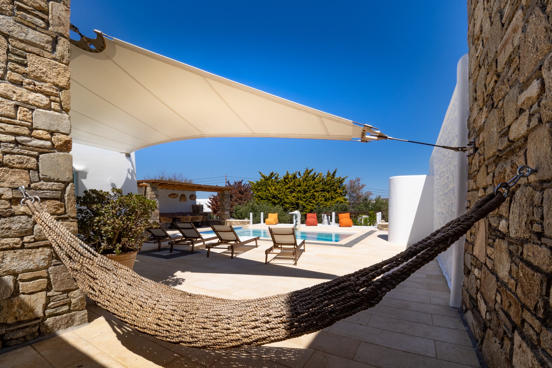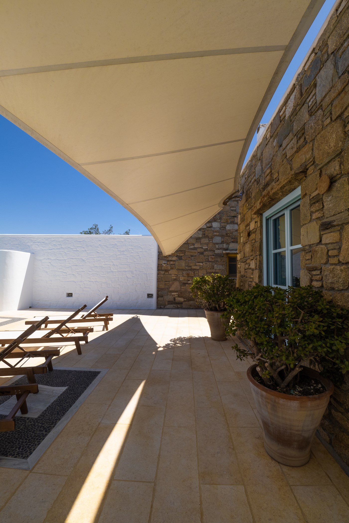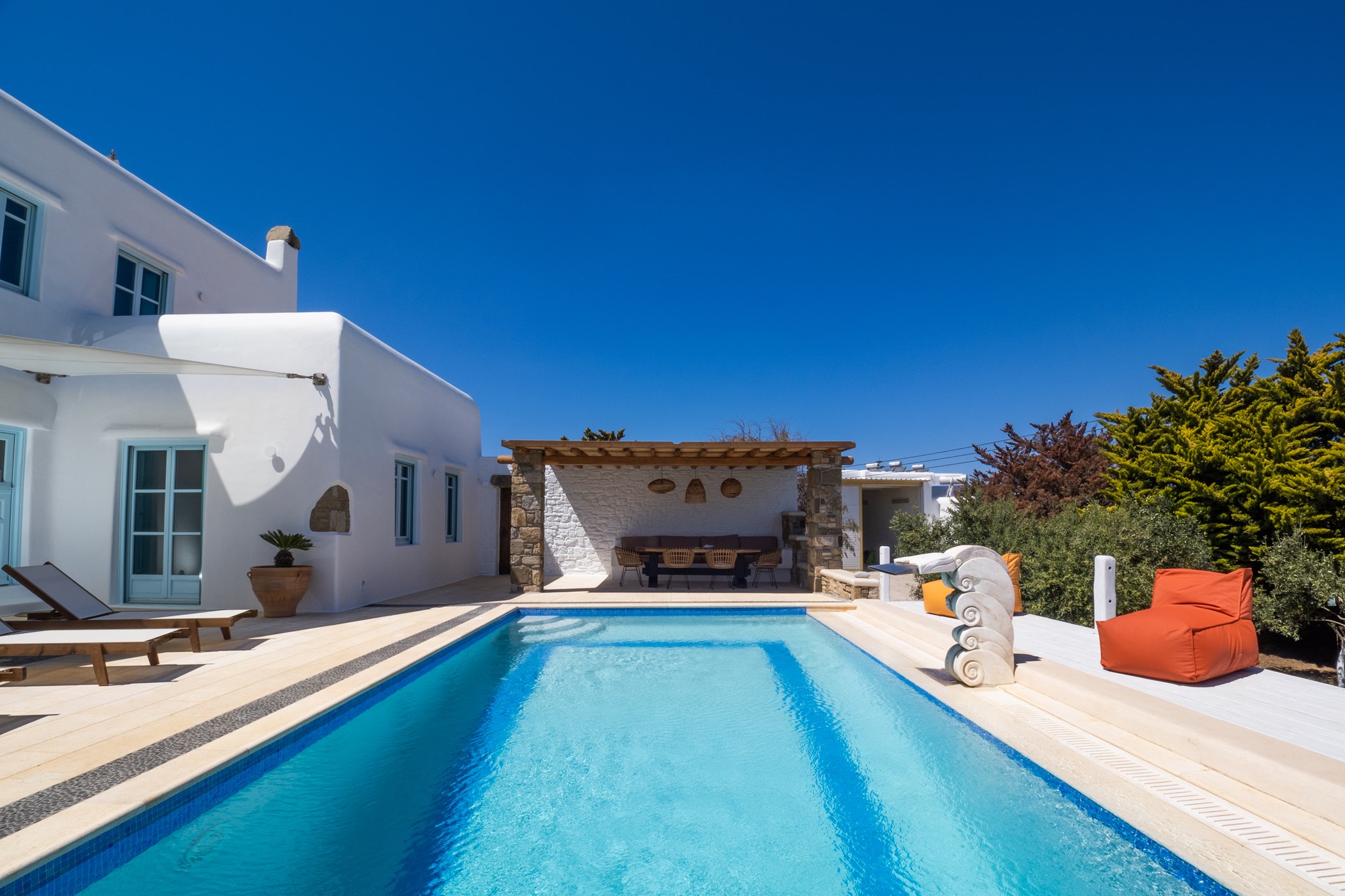 Villa Urania es una propiedad nueva ubicada a 1 kilómetro de distancia de una de las playas más aisladas de Mykonos. Forma parte de un complejo de dos villas privadas y se convierte en tu refugio de verano favorito en la isla. La villa tiene 2 habitaciones con baño privado y puede acomodar cómodamente hasta 4 invitados. Está dividida en dos secciones: el piso inferior que incluye un salón acogedor, una cocina abierta plana, WC y una habitación con baño privado. También hay acceso directo a la pergola, exterior lounge y área de comidas. El piso superior cuenta con una habitación principal con baño privado y balcón con vista al gran pozo de agua.